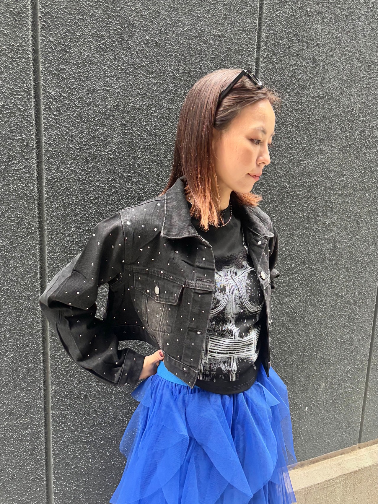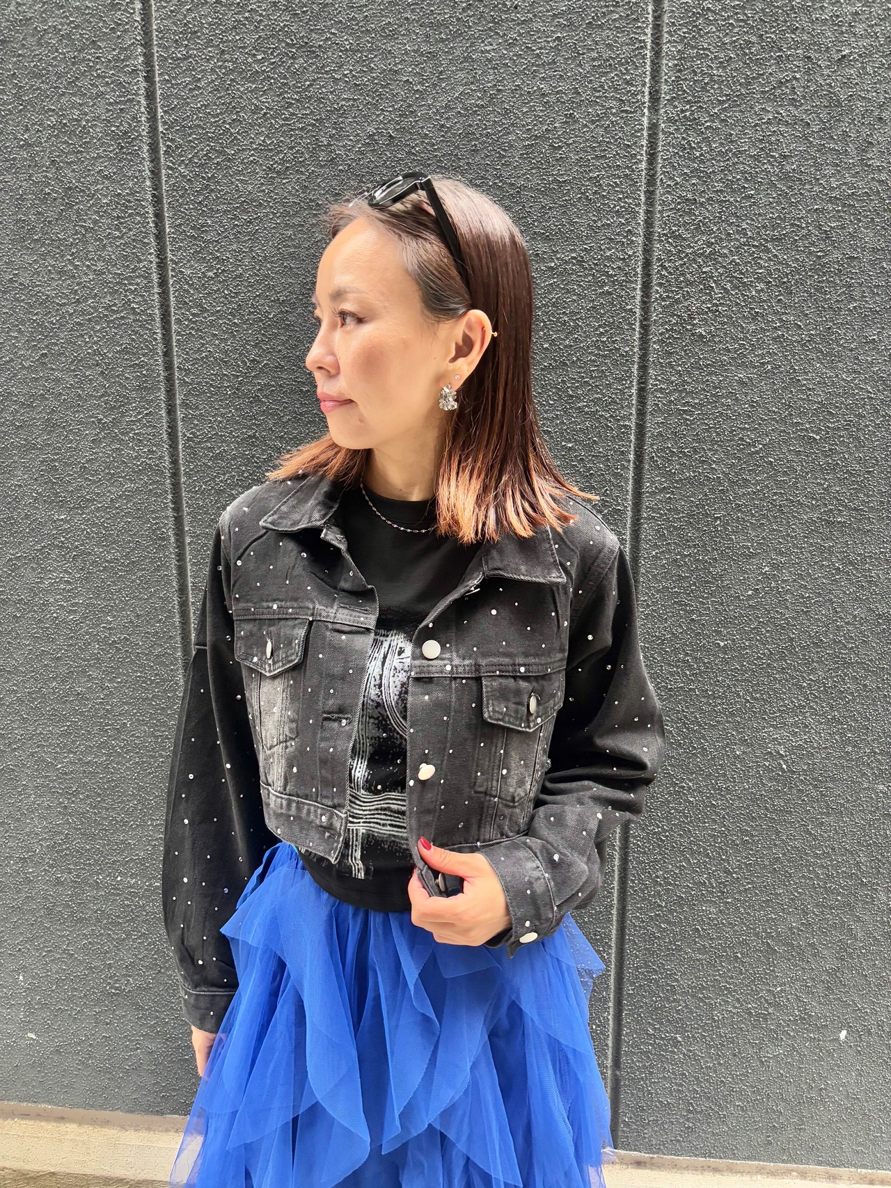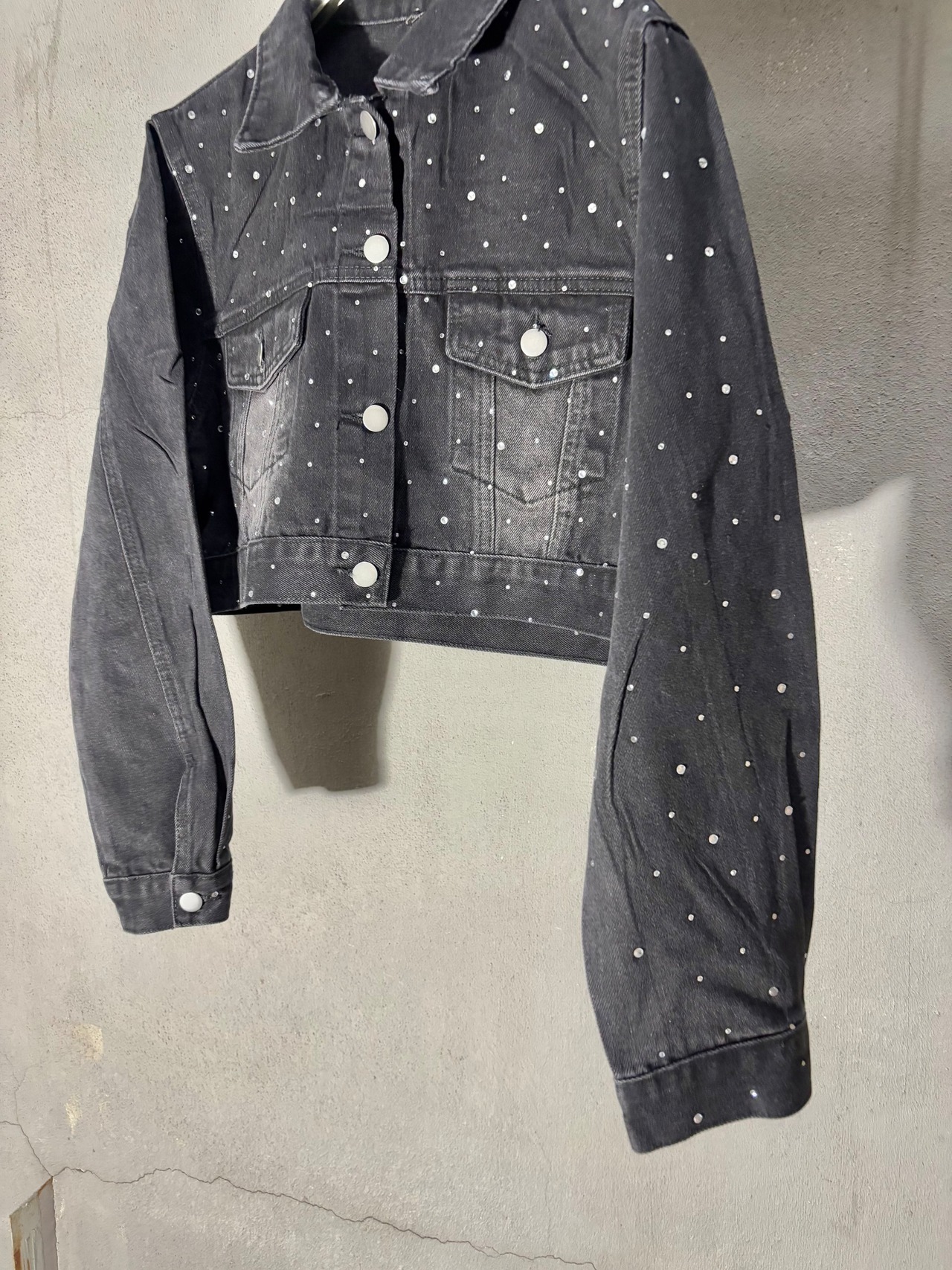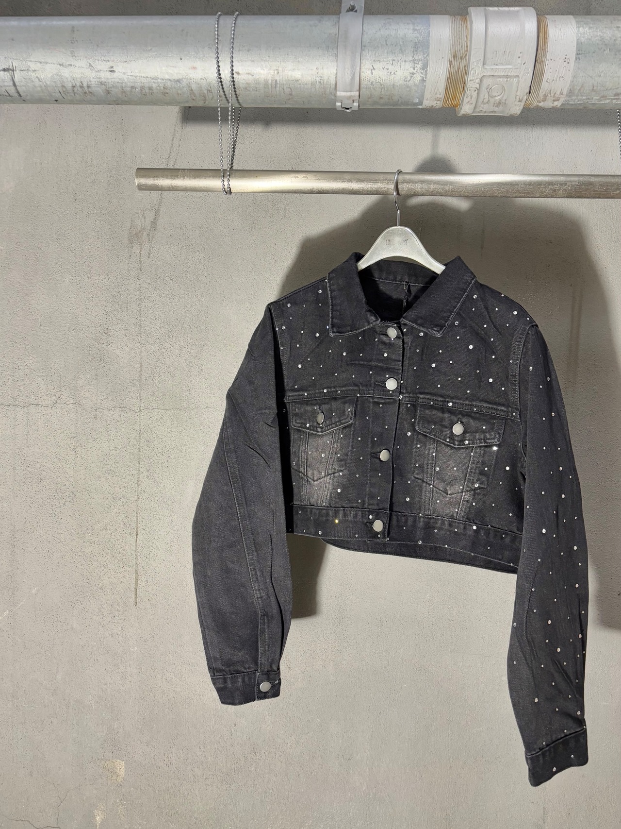 clear stone design black denim jacket ジャケット デニム ブラックデニム ストーン キラキラ