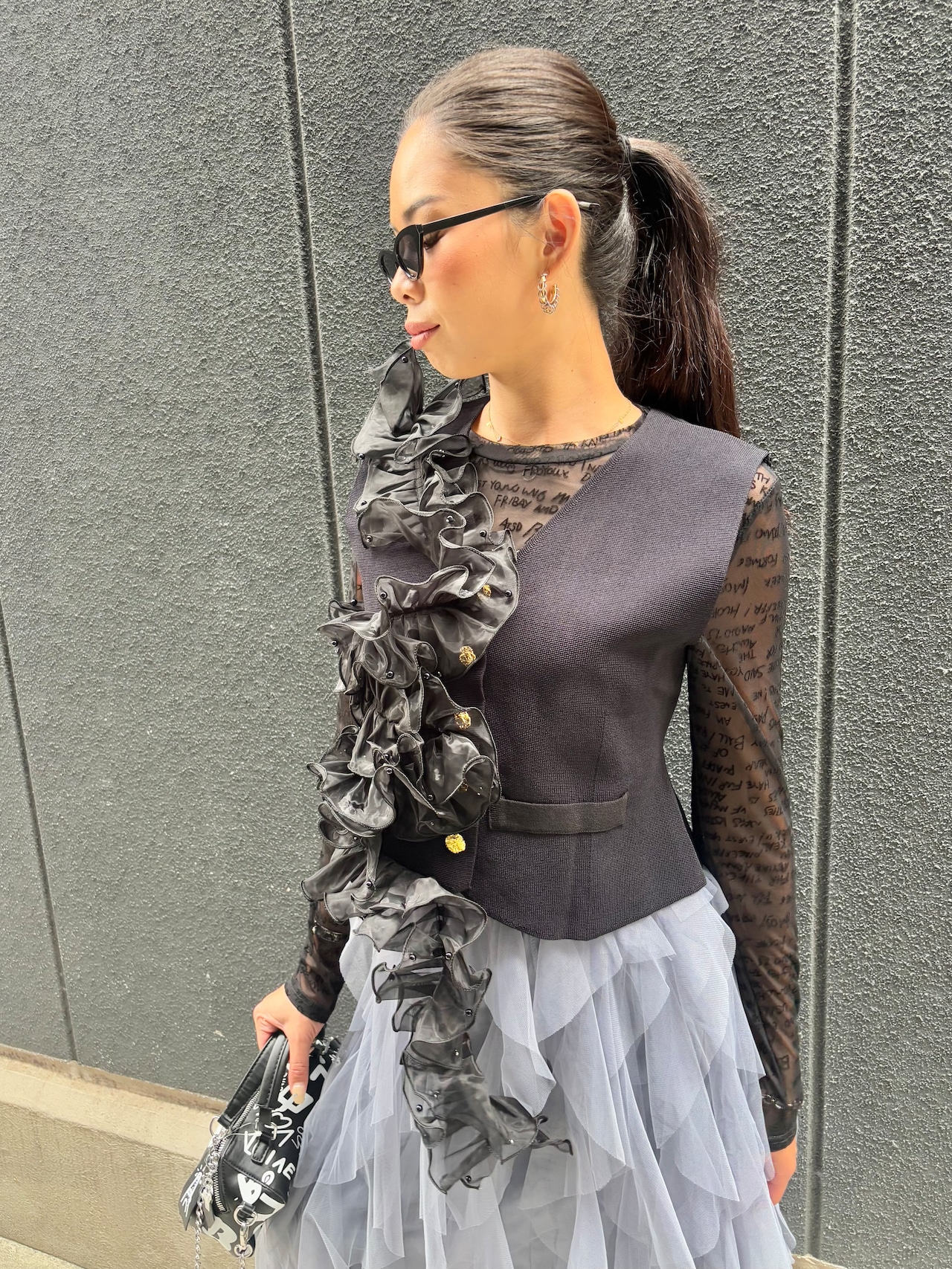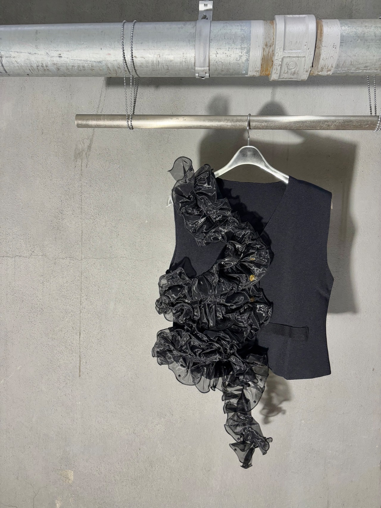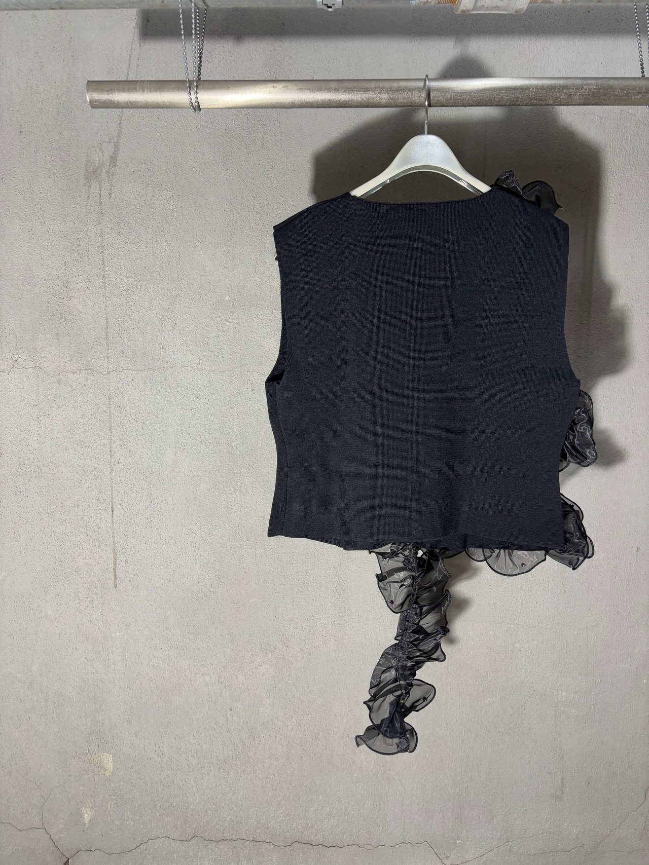 organdy frill asymmetry design vest ベスト オーガンジー フリル アシンメトリー ブラック 黒