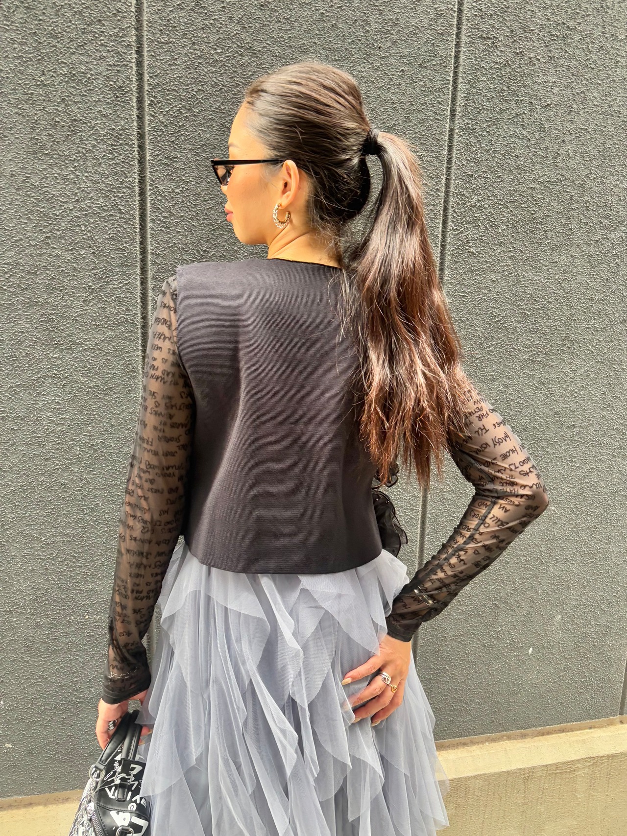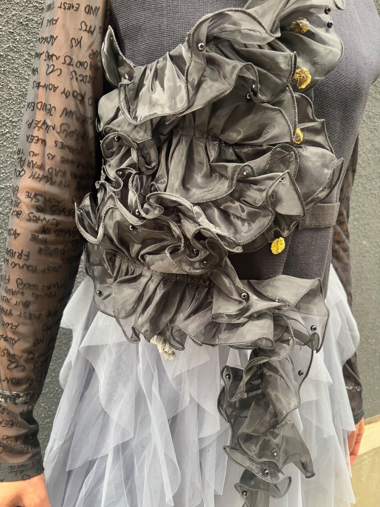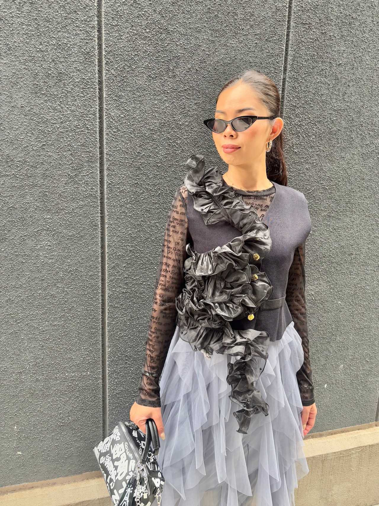 organdy frill asymmetry design vest ベスト オーガンジー フリル アシンメトリー ブラック 黒