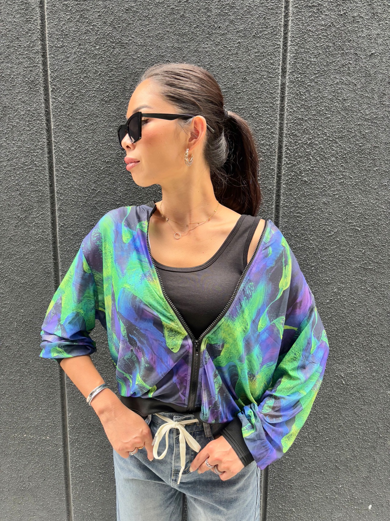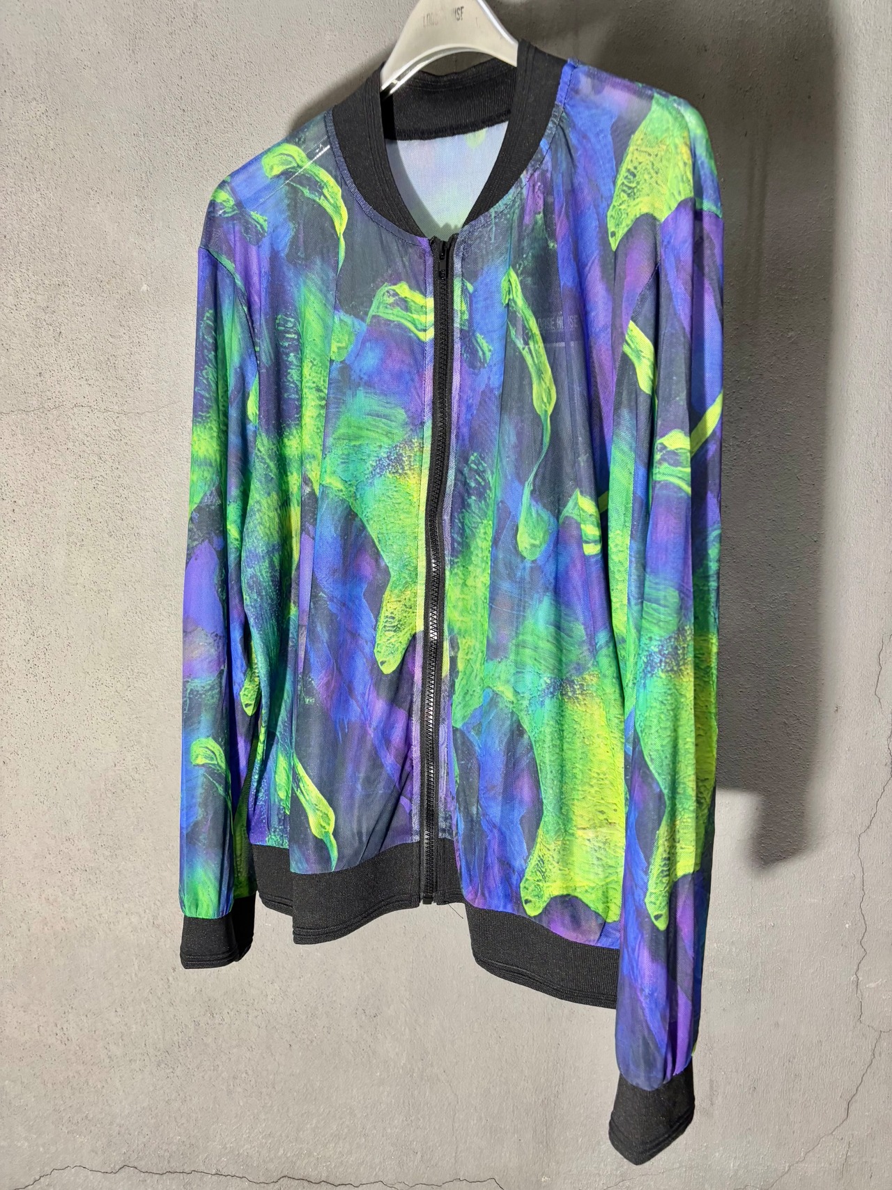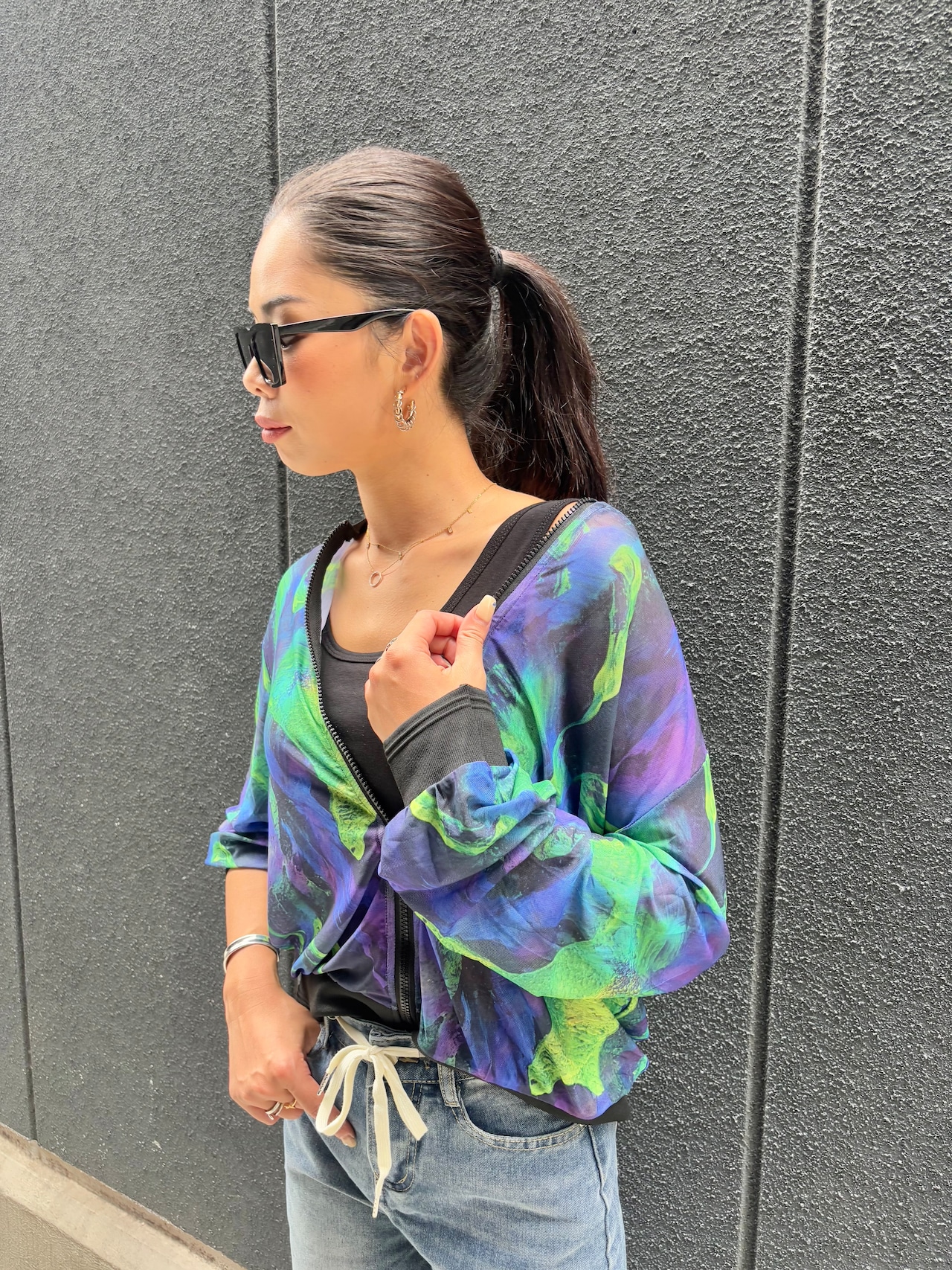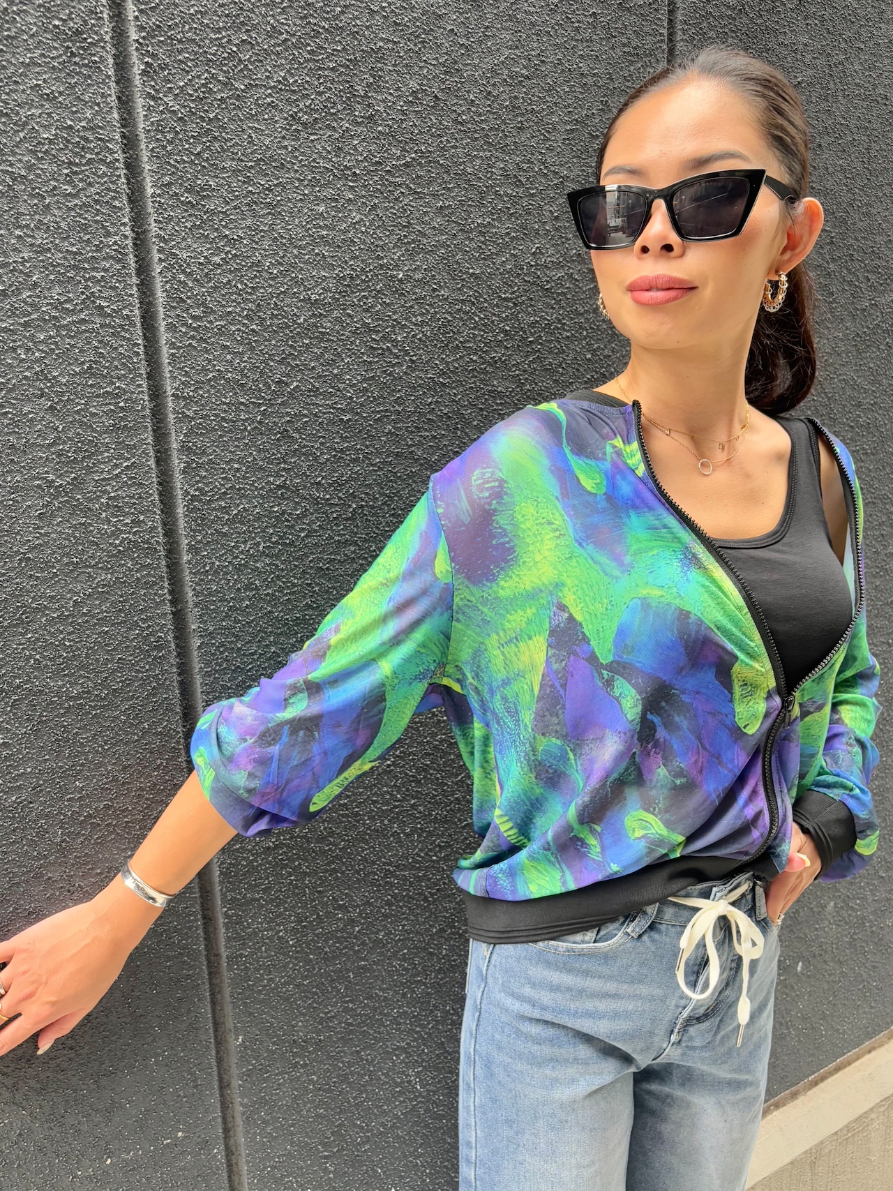 stretch mesh × marble print zip up blouson ブルゾン 羽織り ストレッチ メッシュ マーブル ジップアップ