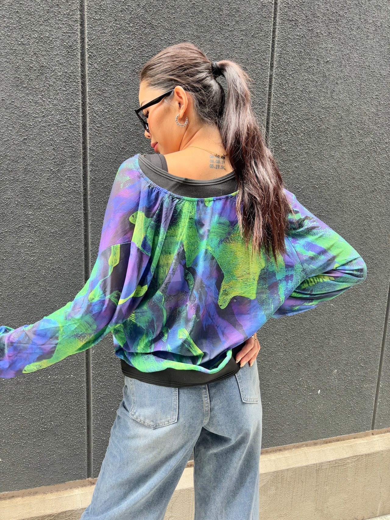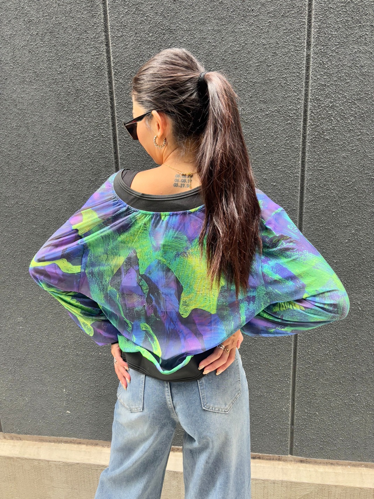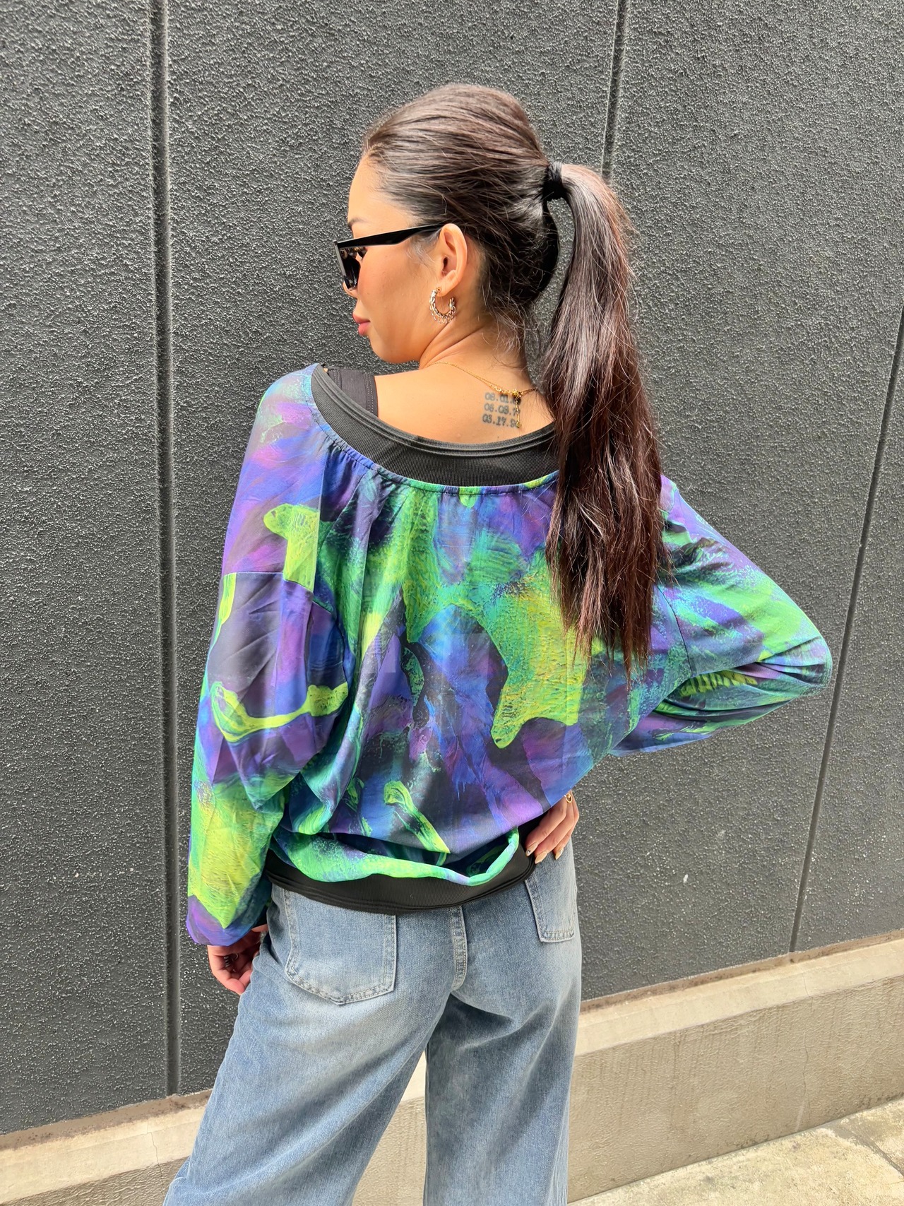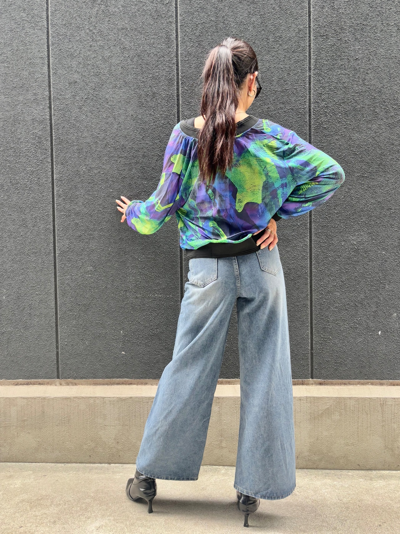 stretch mesh × marble print zip up blouson ブルゾン 羽織り ストレッチ メッシュ マーブル ジップアップ