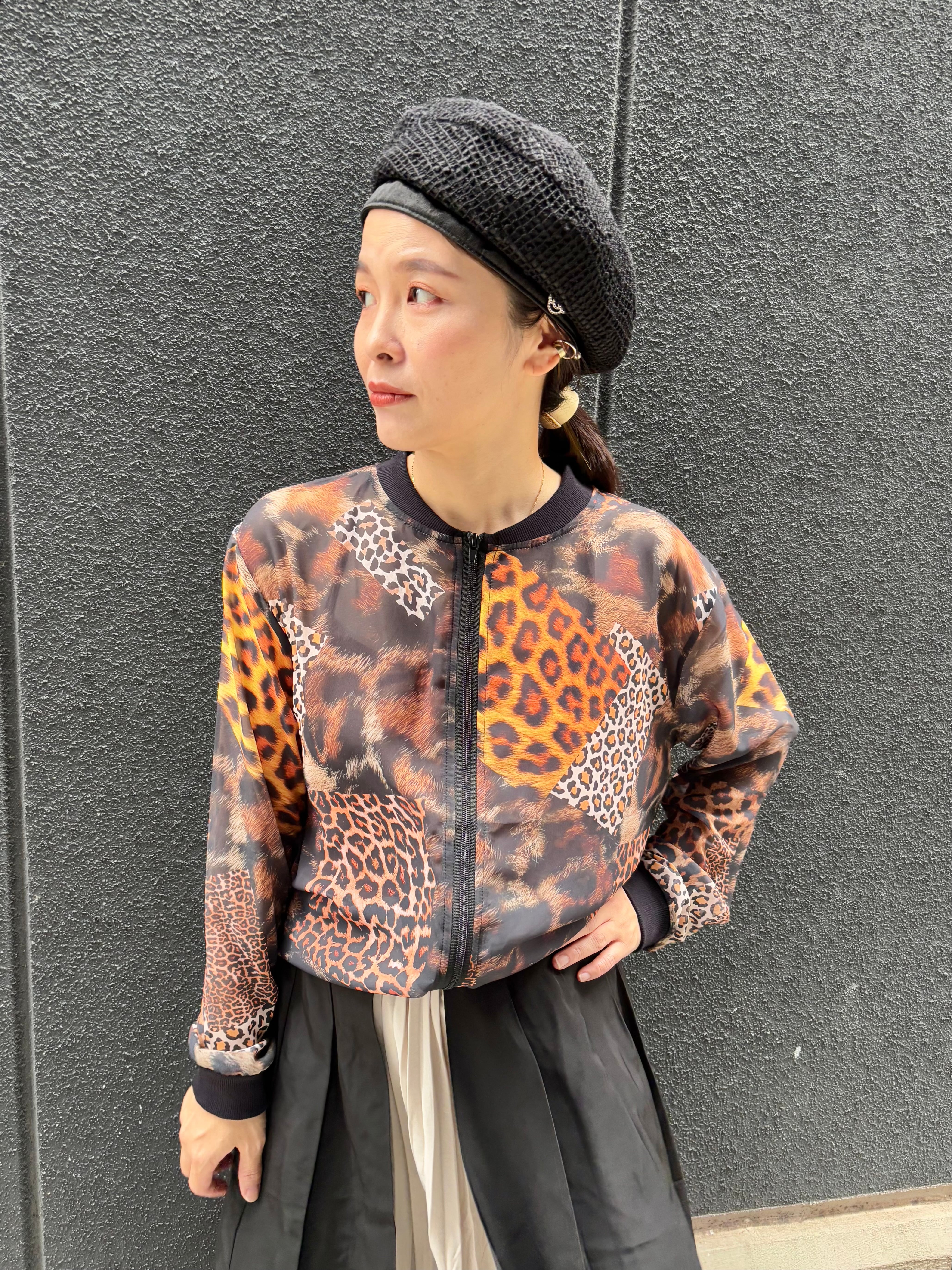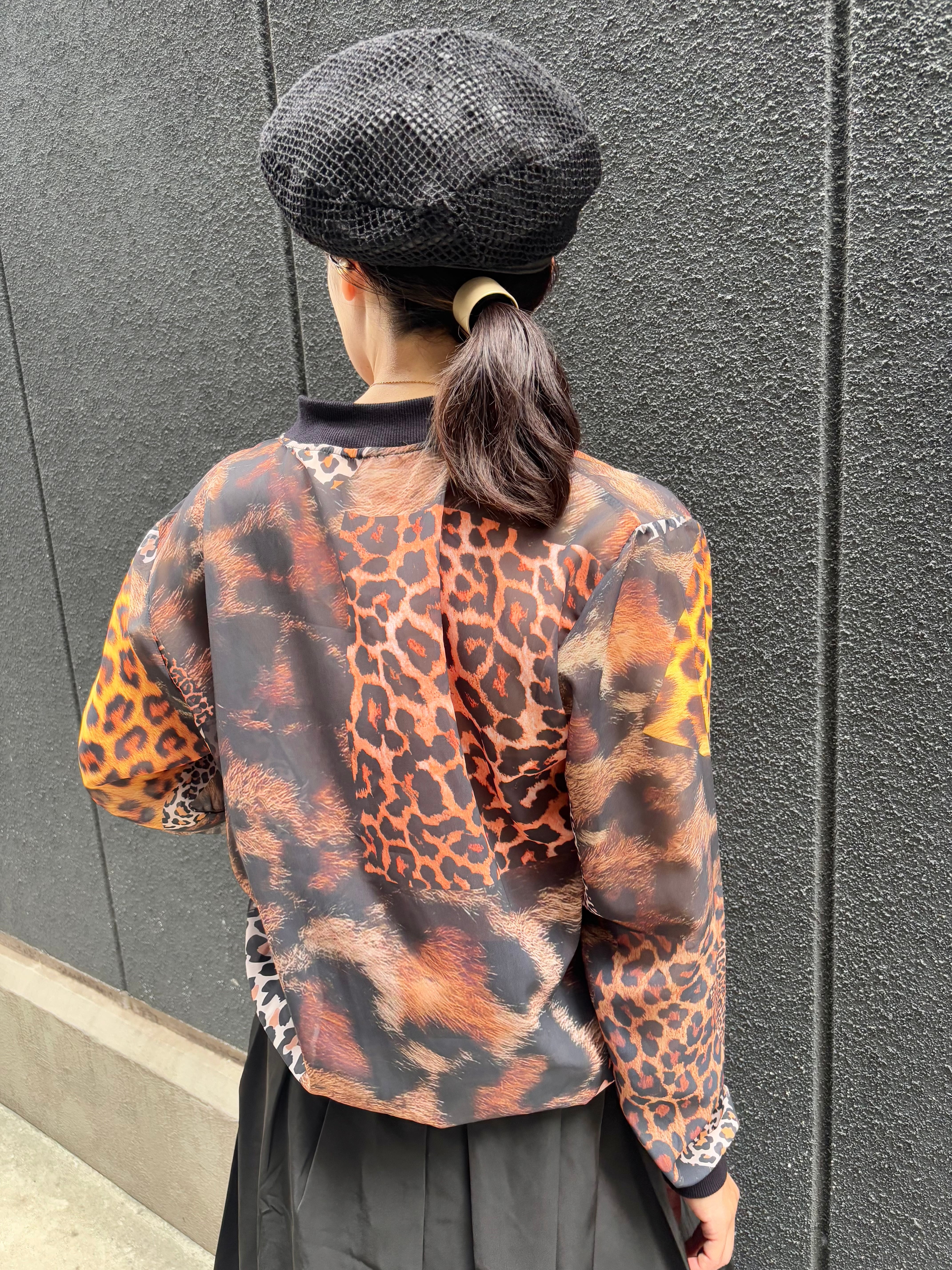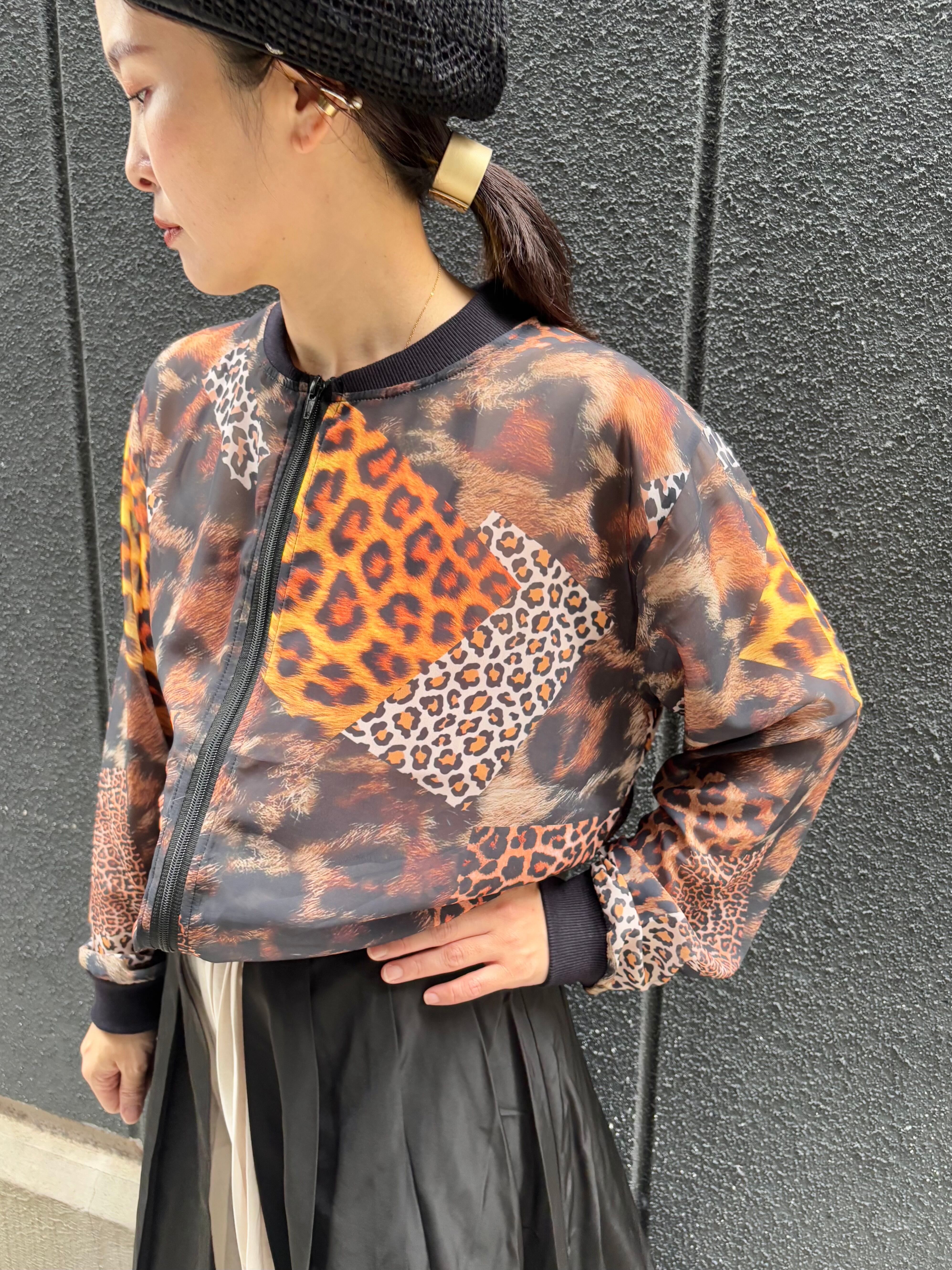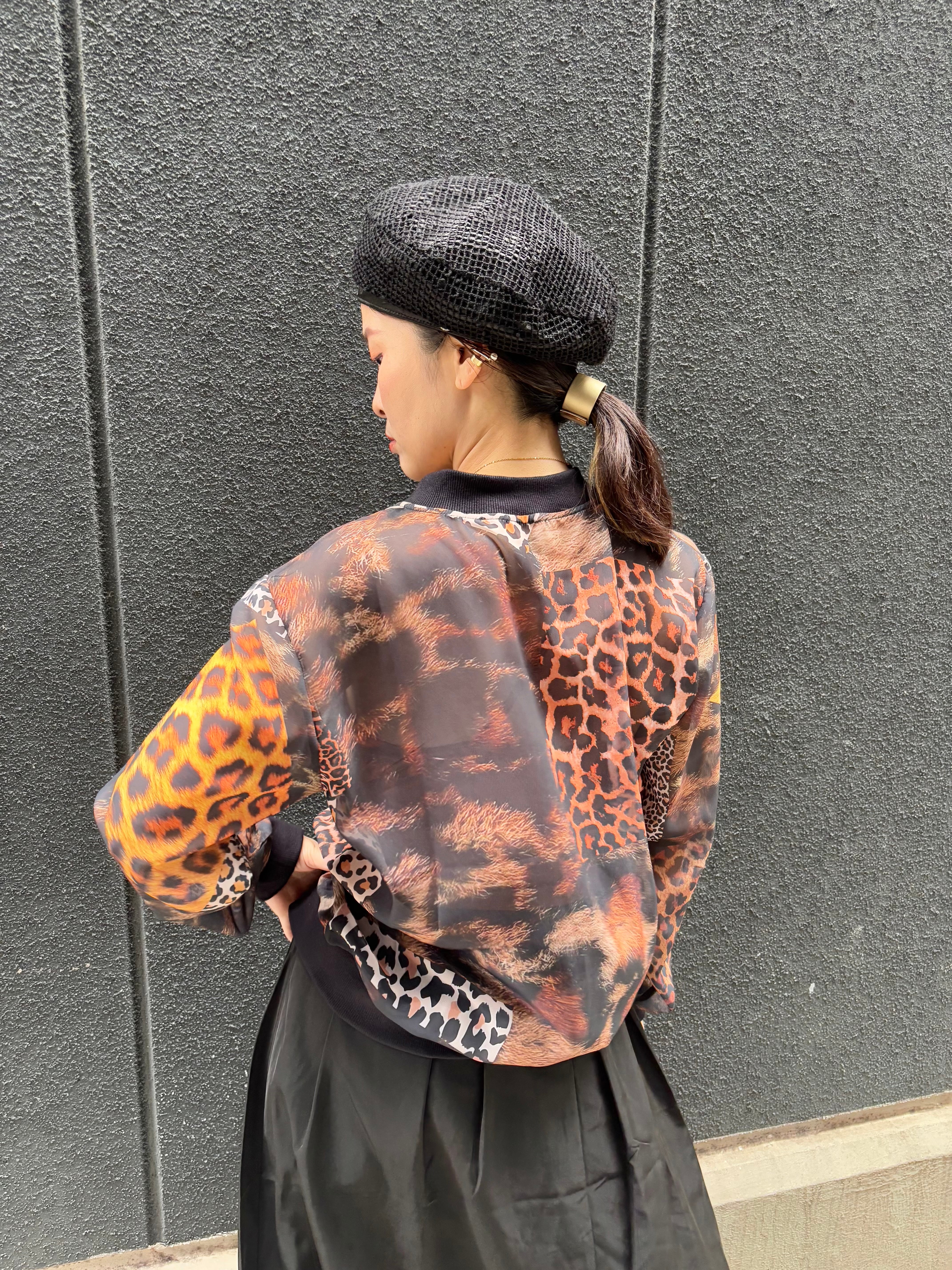 chiffon × mix leopard zip up blouson ブルゾン 羽織り シフォン レオパード 豹柄 ヒョウ柄 ジップアップ