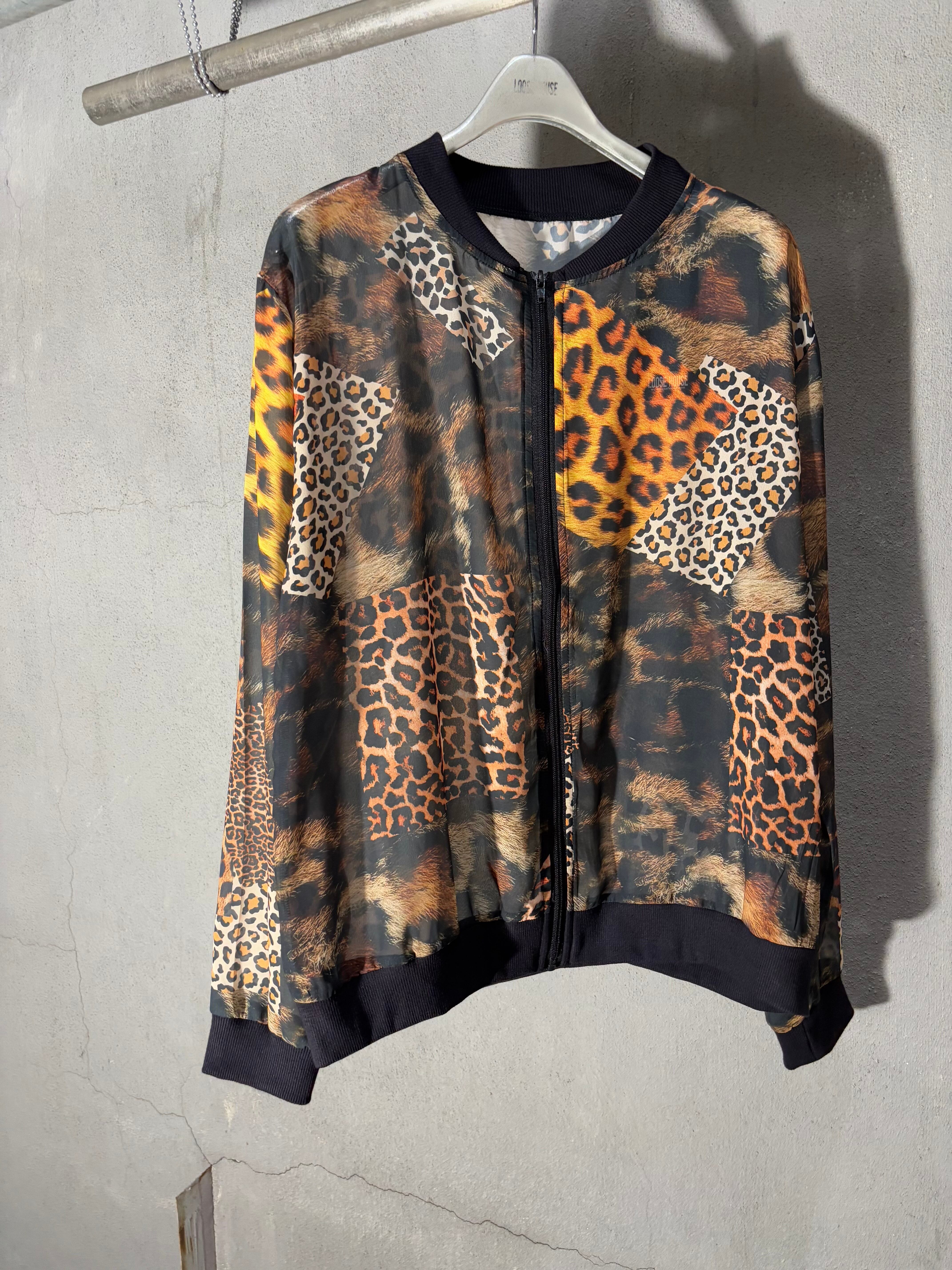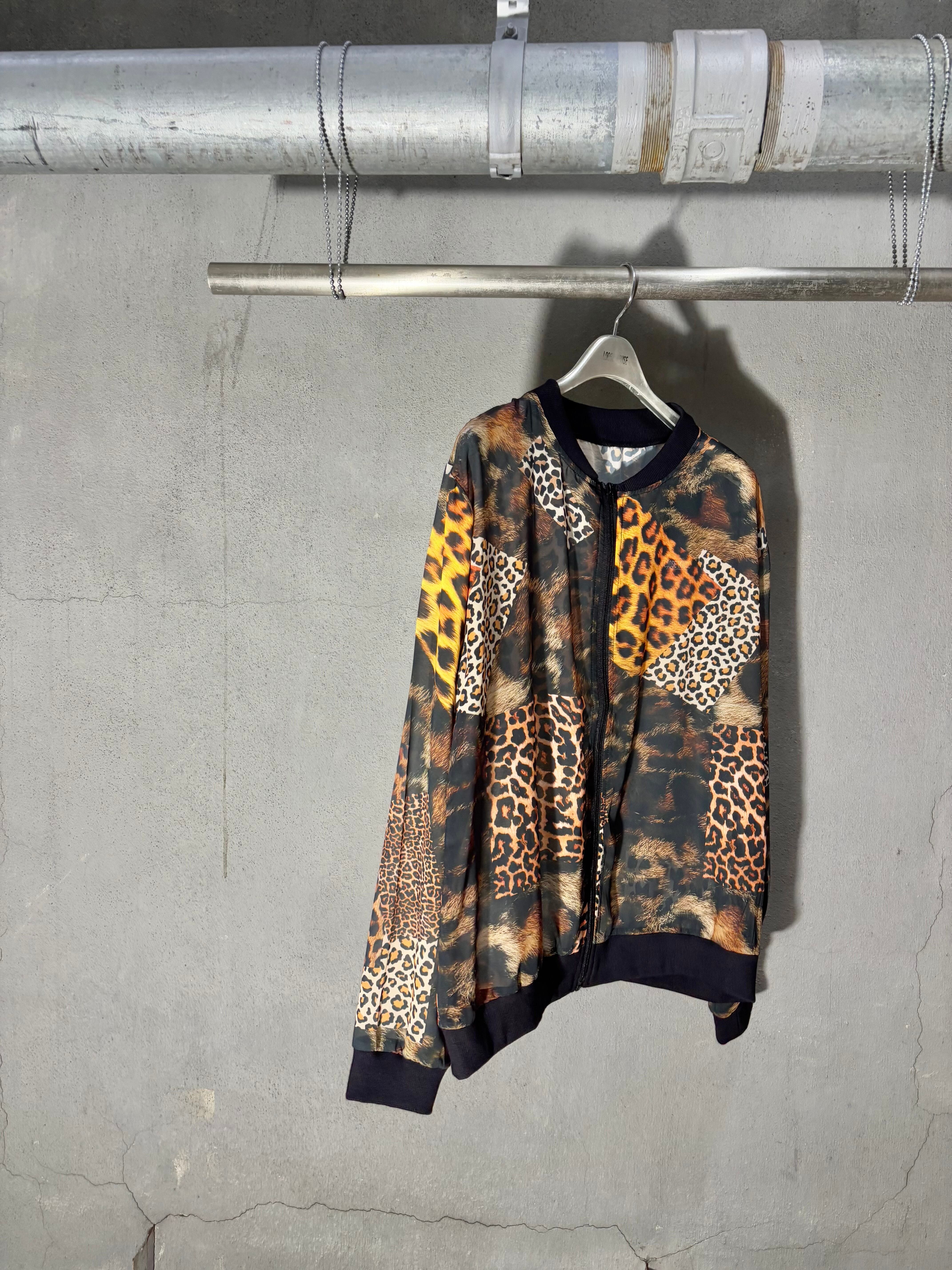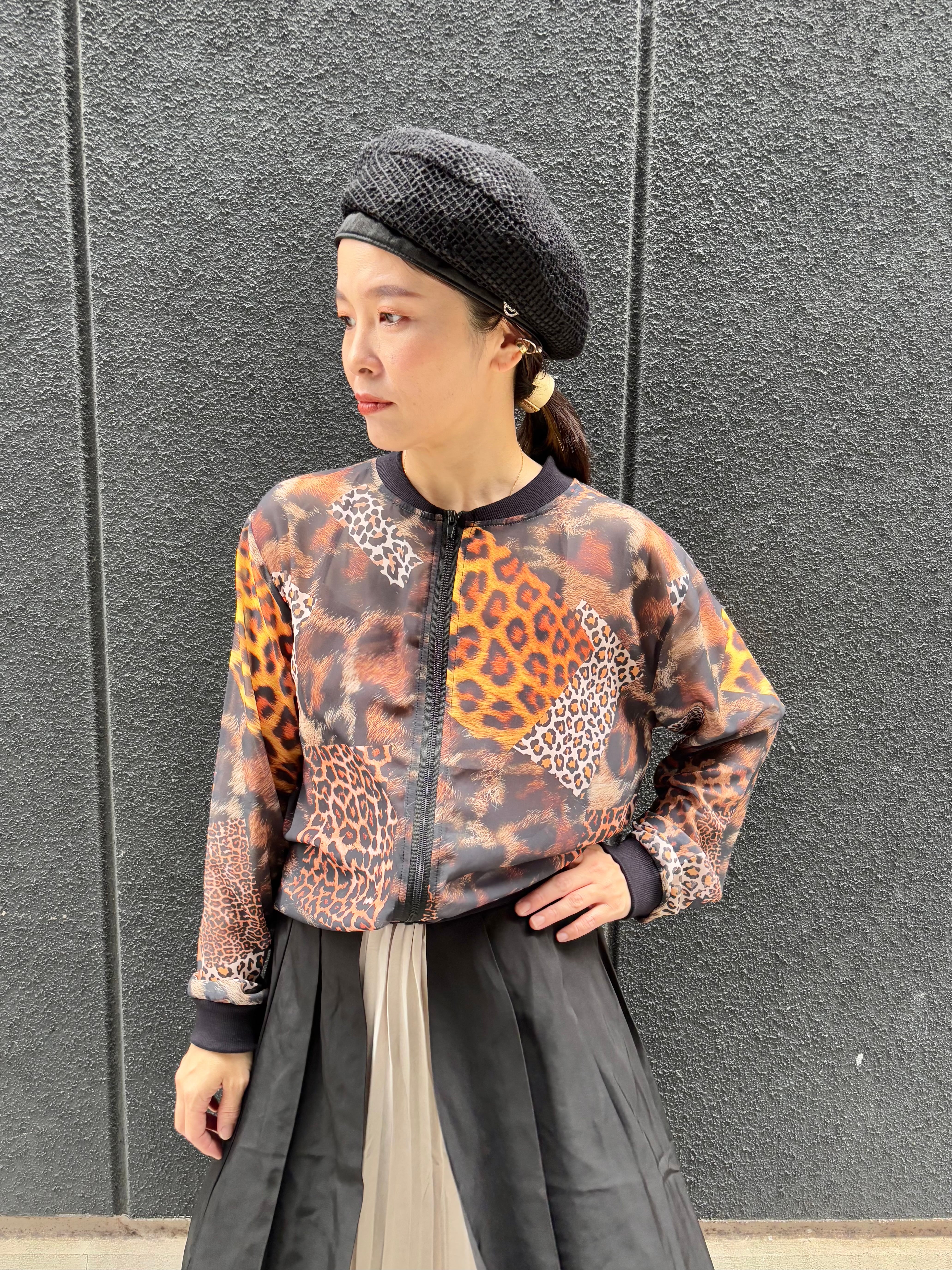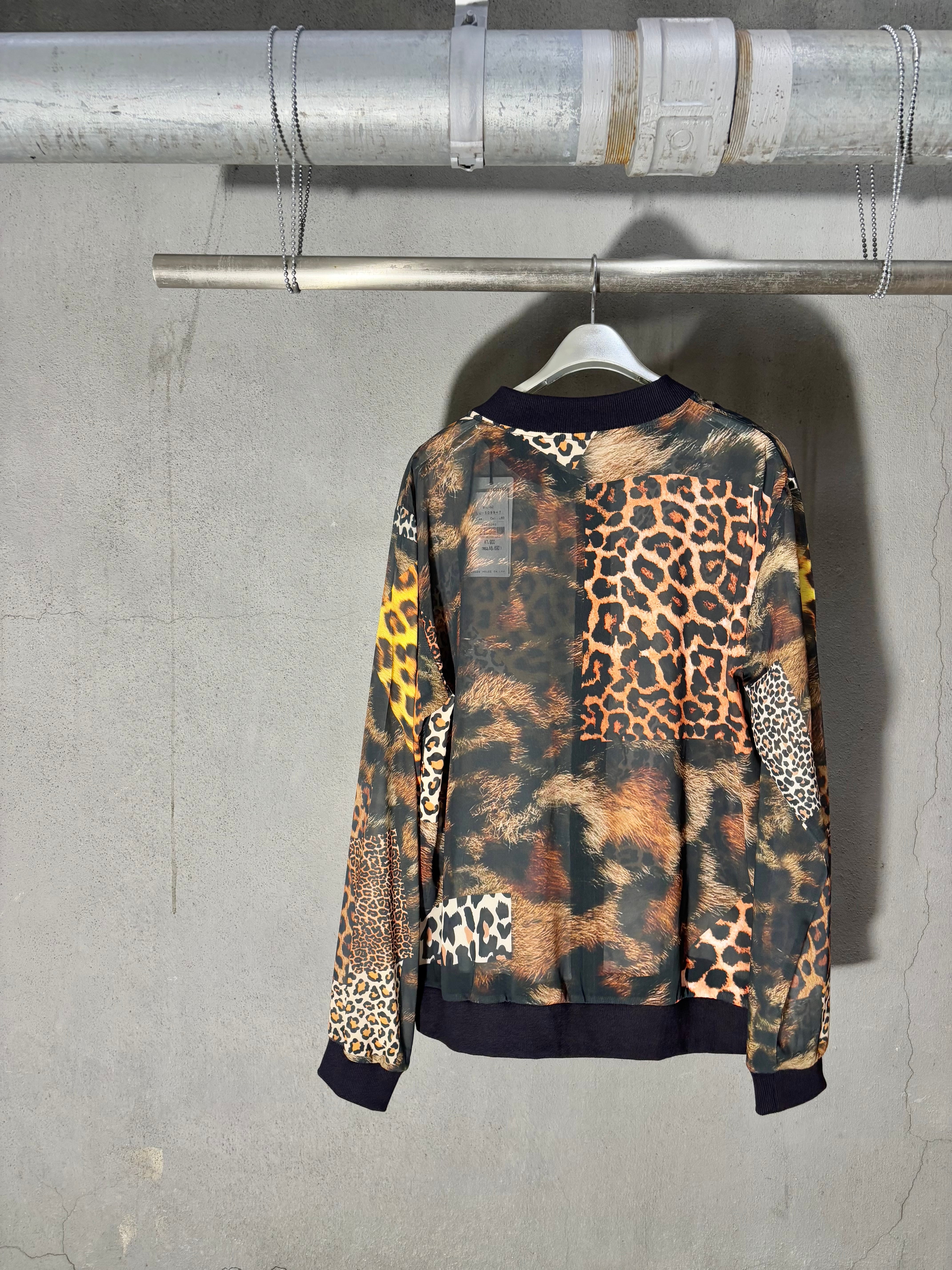 chiffon × mix leopard zip up blouson ブルゾン 羽織り シフォン レオパード 豹柄 ヒョウ柄 ジップアップ