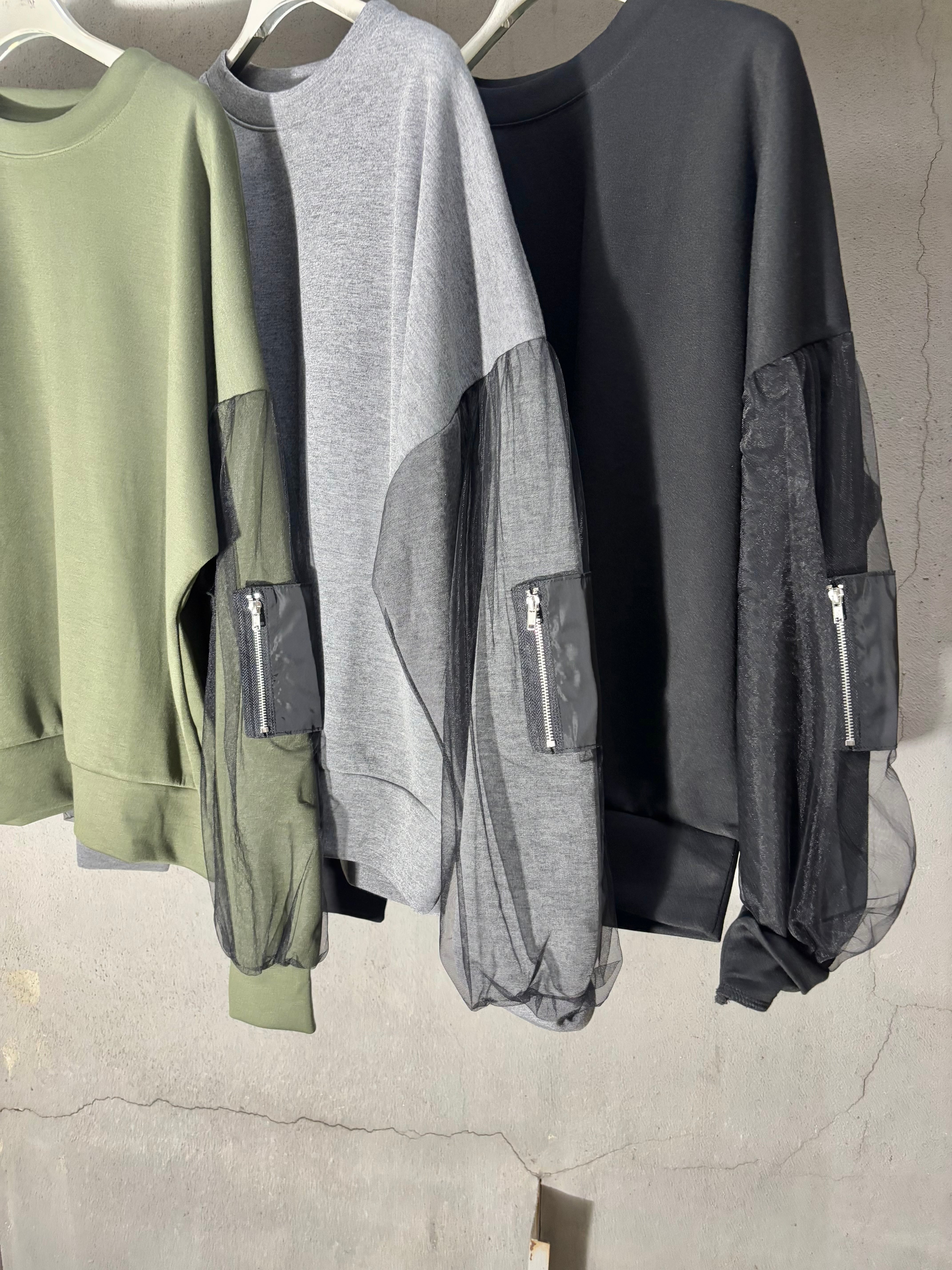 秋の訪れを感じさせる、スタイリッシュなデザイントップスが登場しました!このトップスは、華やかなチュール素材の袖が特徴で、シンプルなスタイルにアクセントを加えます。デイリーユースから特別な日のコーディネートまで幅広く活躍する一品。おしゃれを楽しむあなたにぴったりのアイテムです。