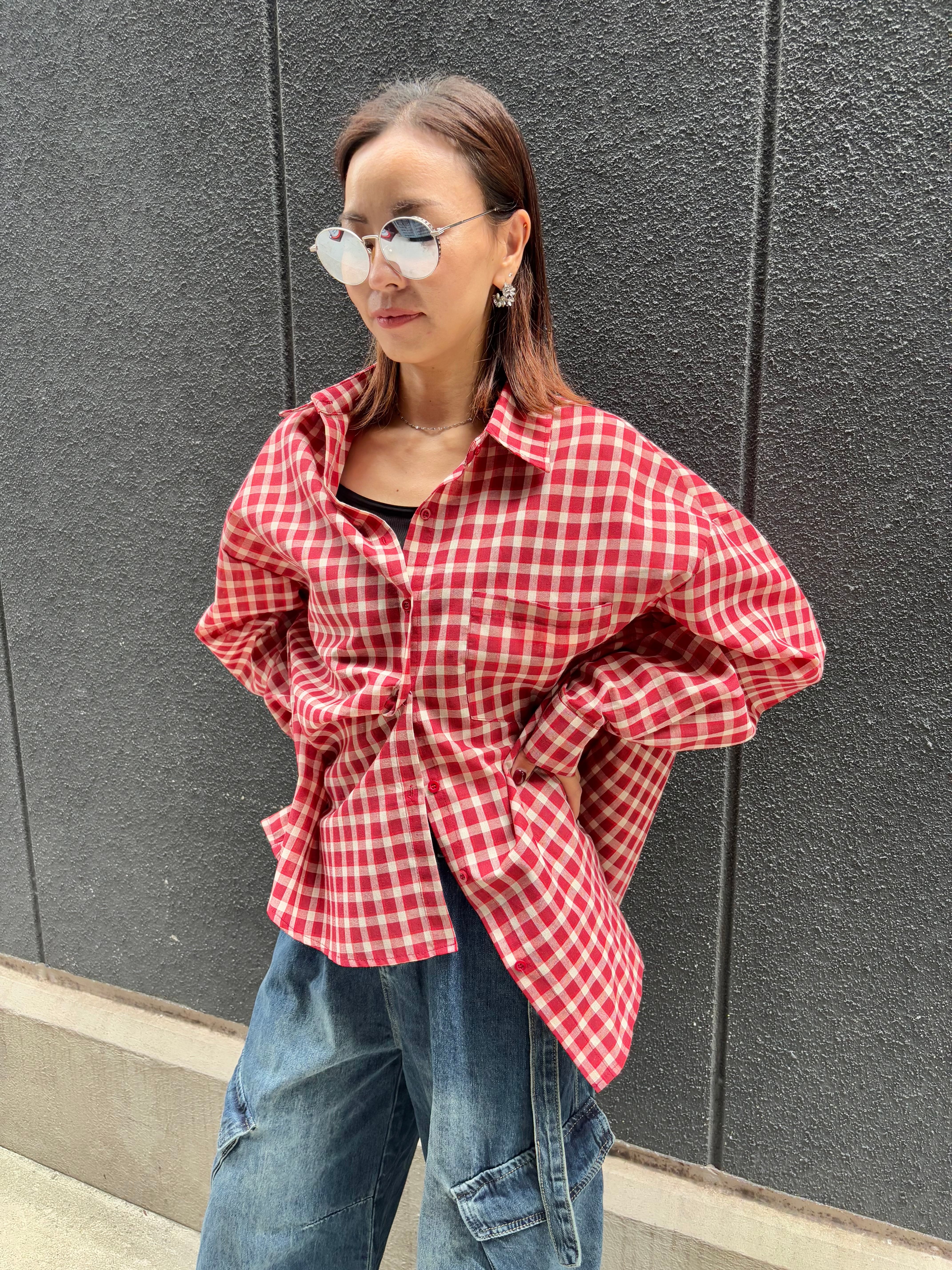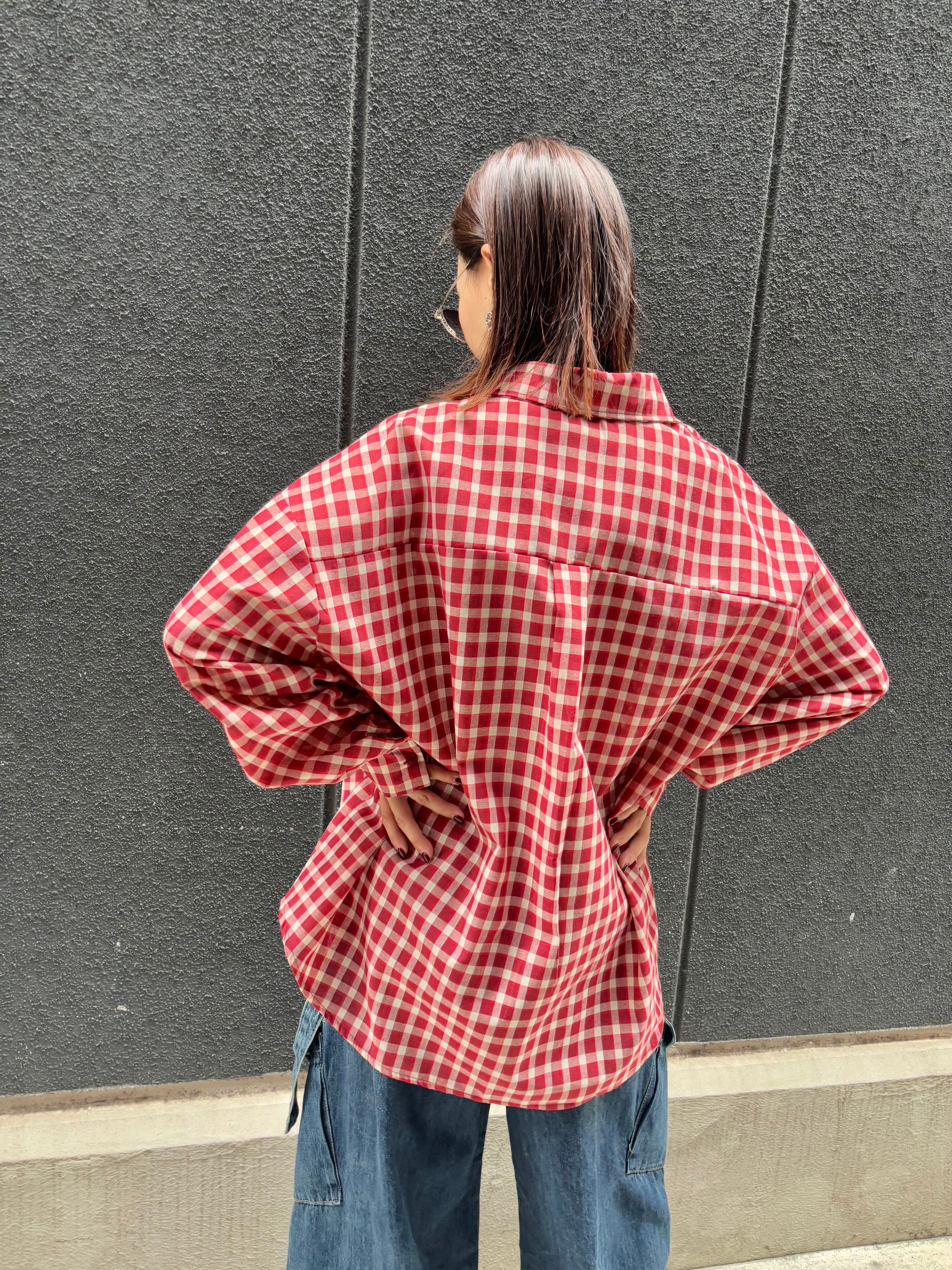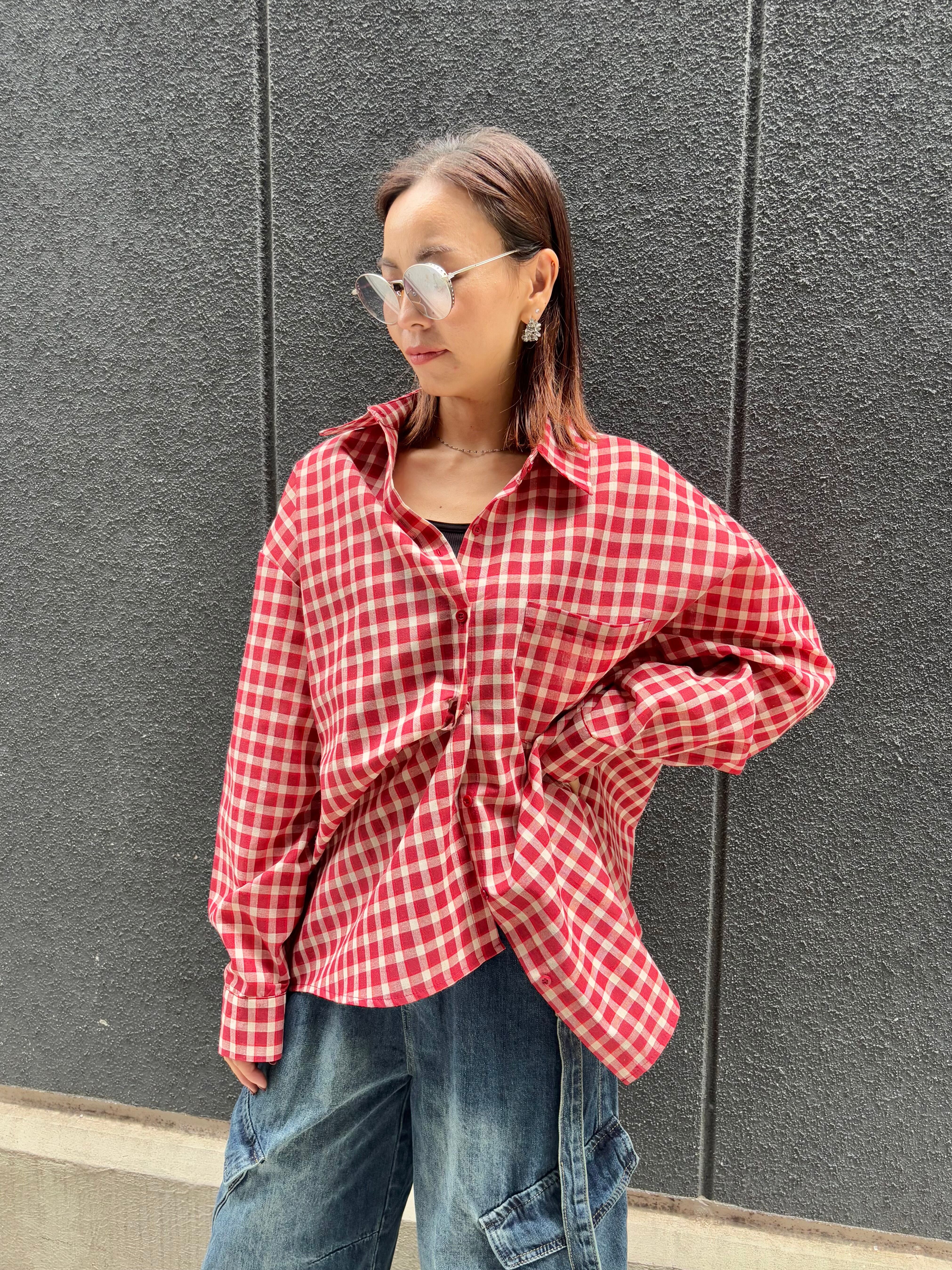 red check pattern shirt シャツ チェック 赤 オーバーサイズ