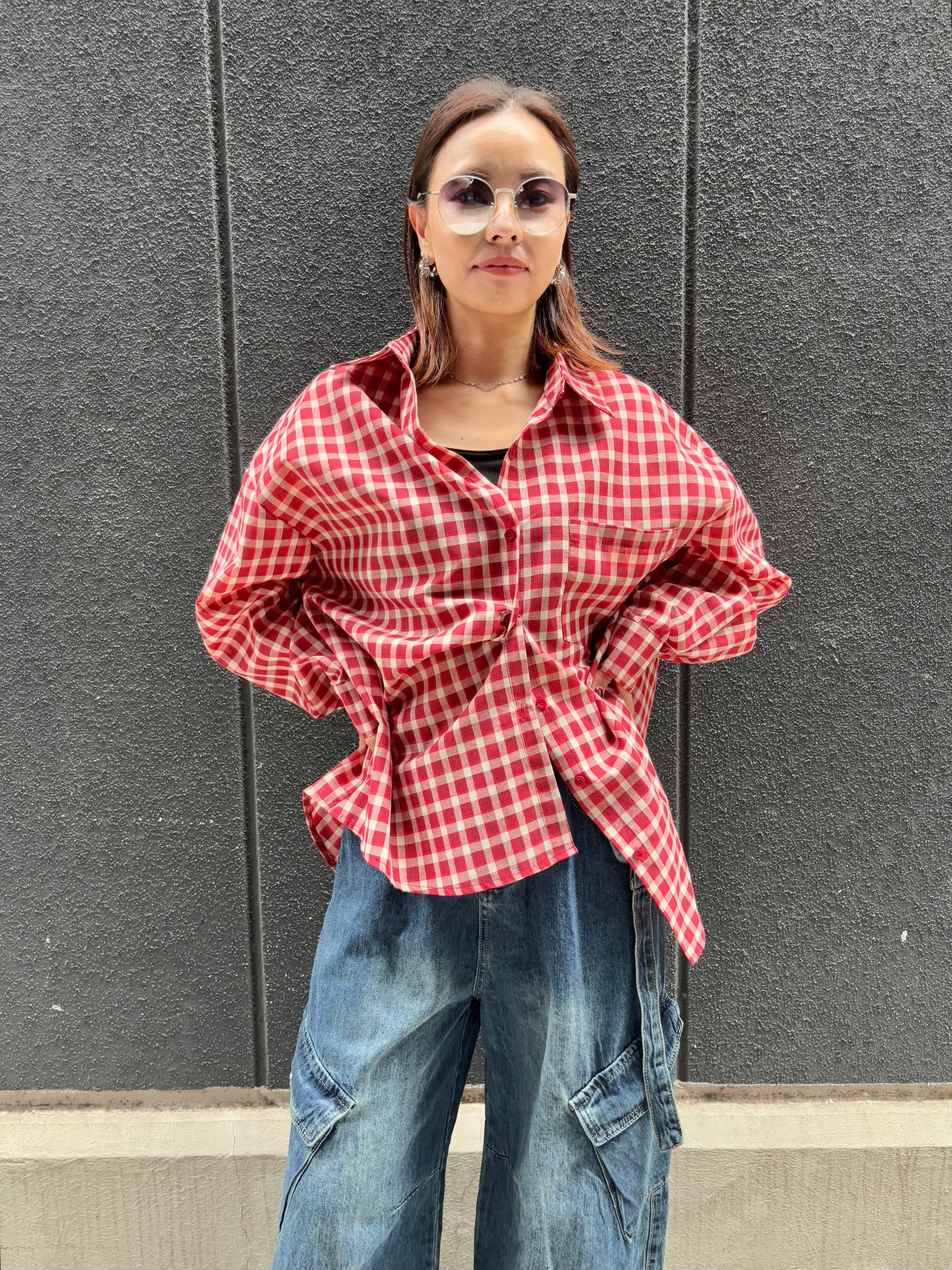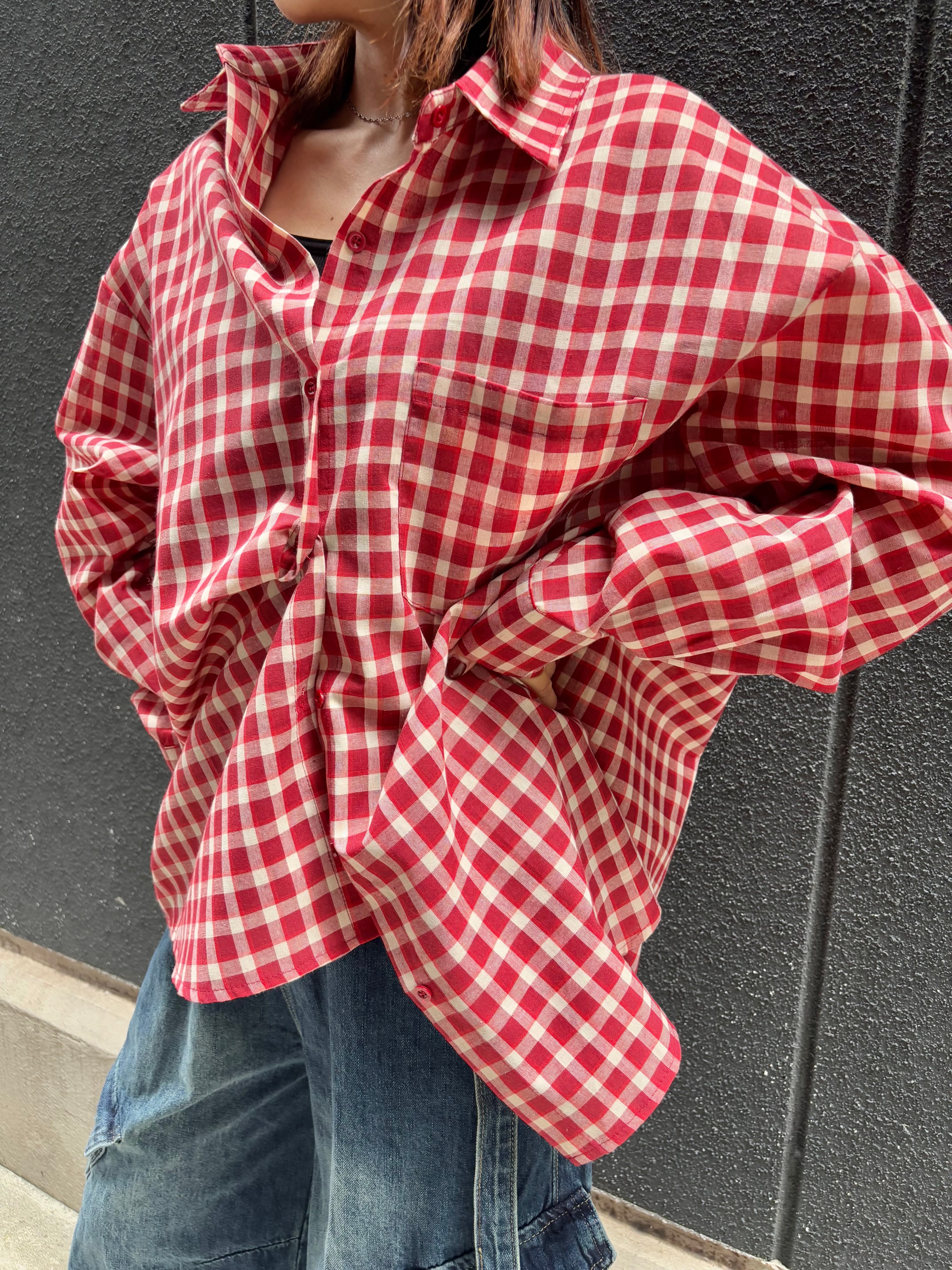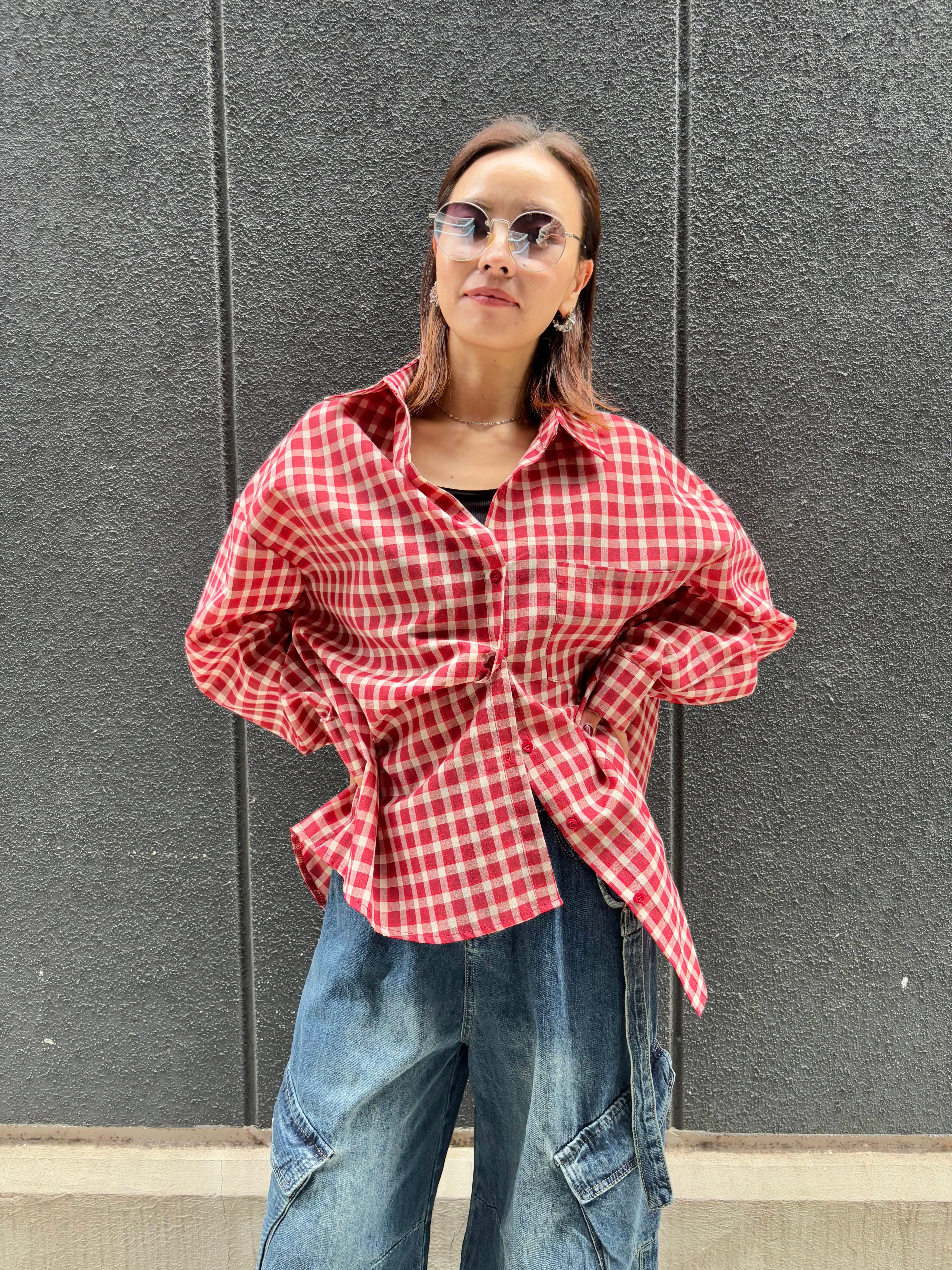 red check pattern shirt シャツ チェック 赤 オーバーサイズ