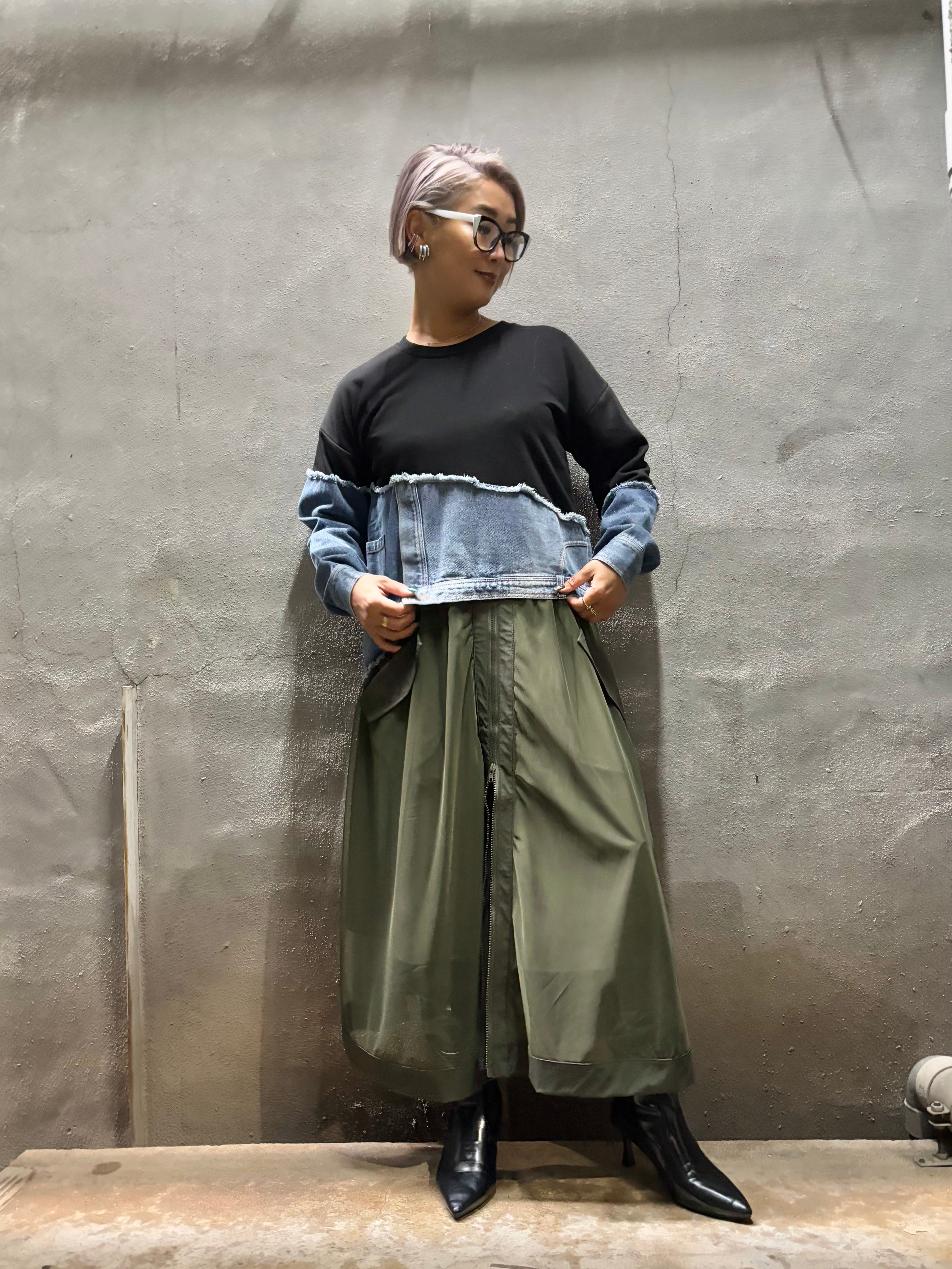 denim docking asymmetry design tops trainer トップス トレーナー デニム 切替デザイン アシンメトリー