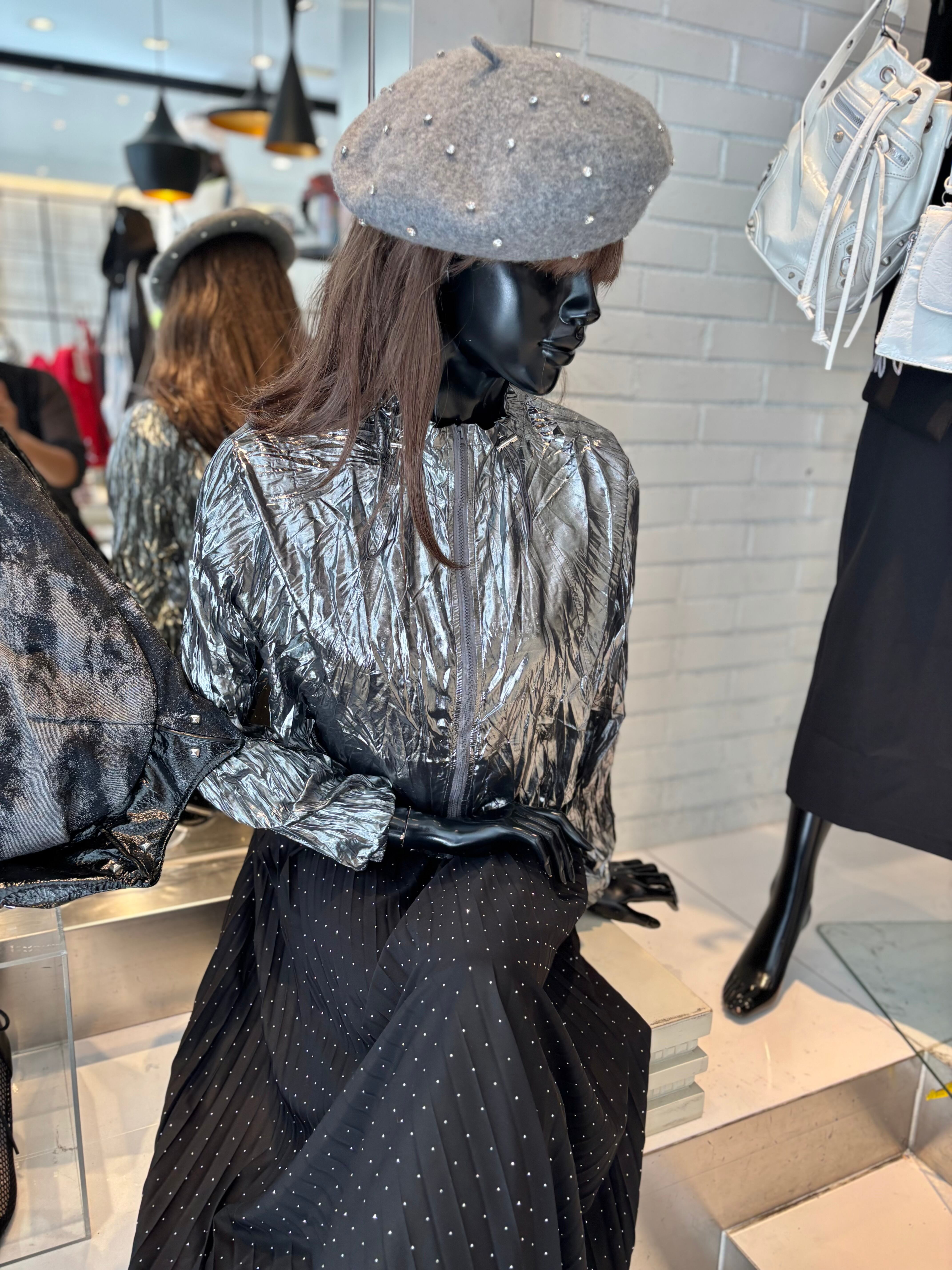 metallic crincle chiffon zip up jacket ジャケット メタリック シワ加工 ドローコード スタンドネック シースルー