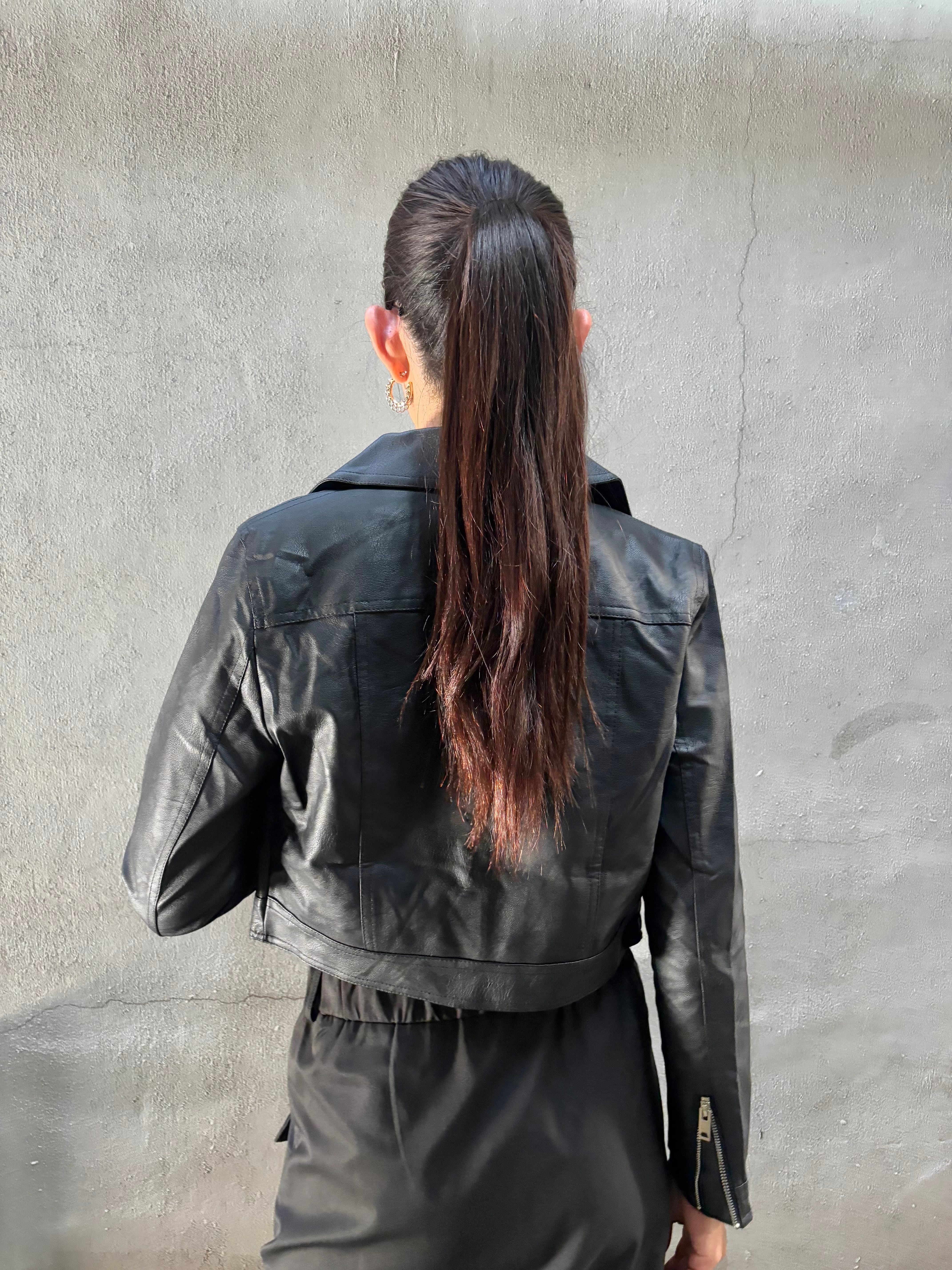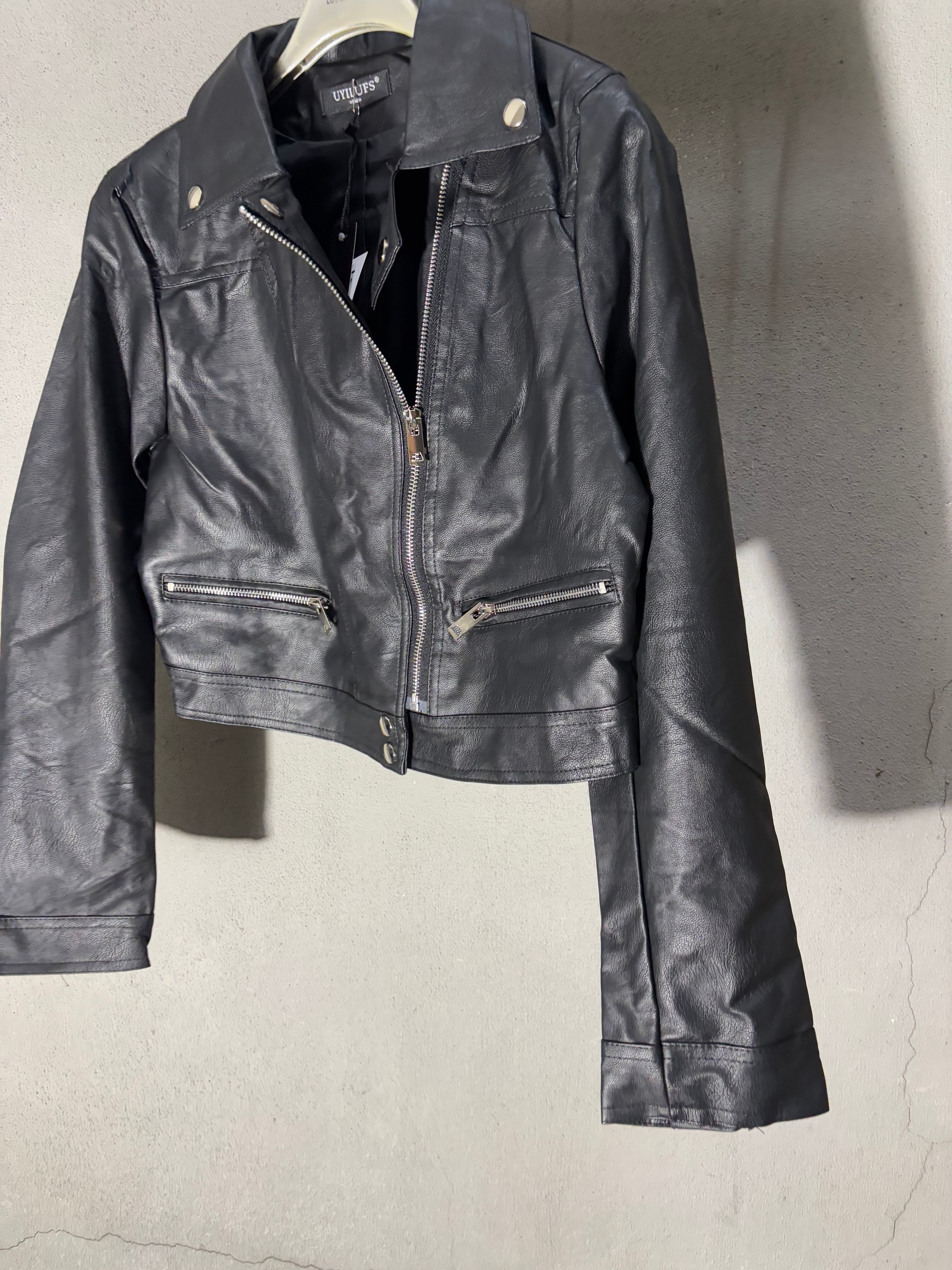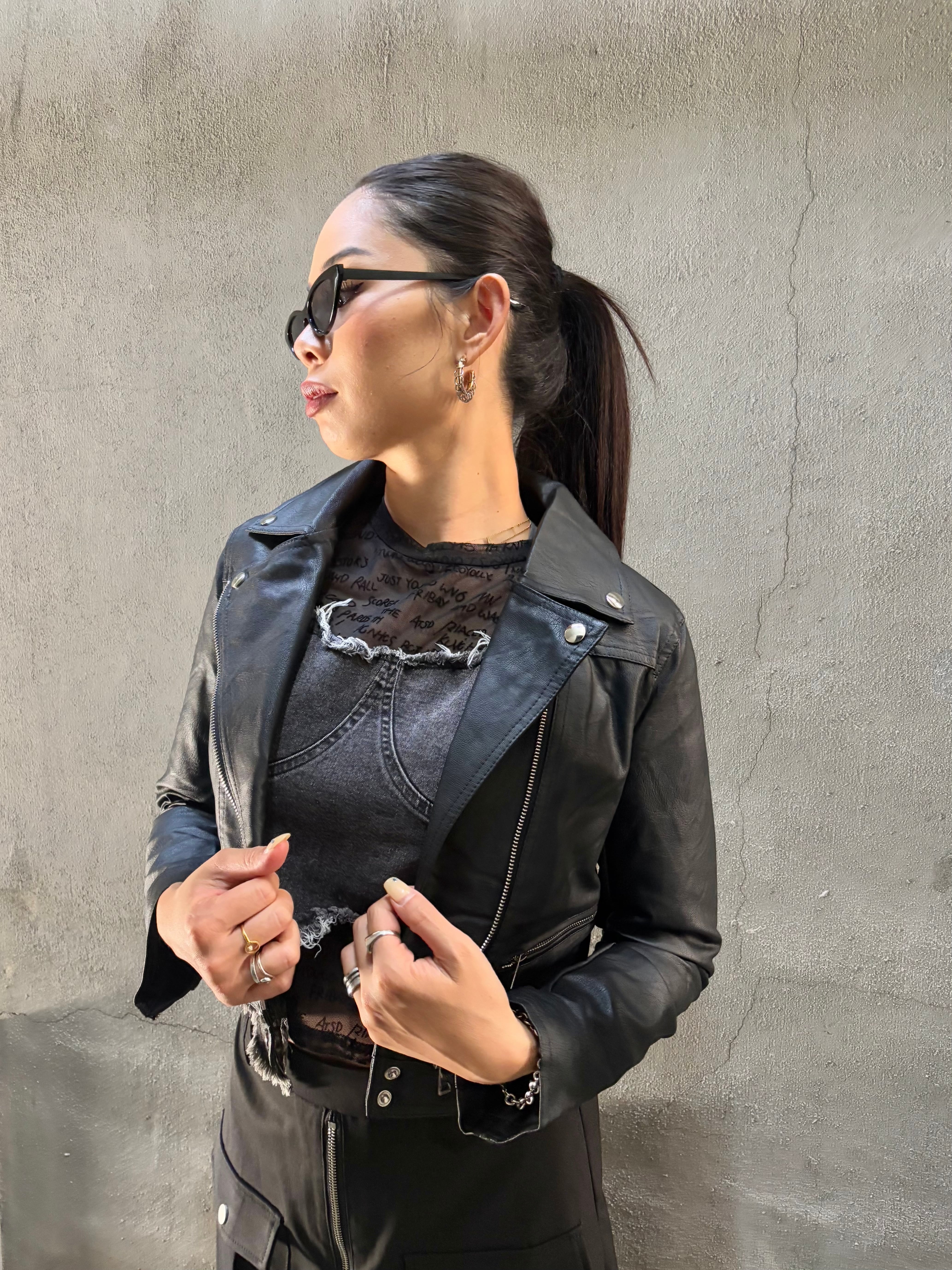 ショート丈にデザインされたこのライダースジャケットは、クールでスタイリッシュな印象を与え、カジュアルなコーディネートにも最適です。