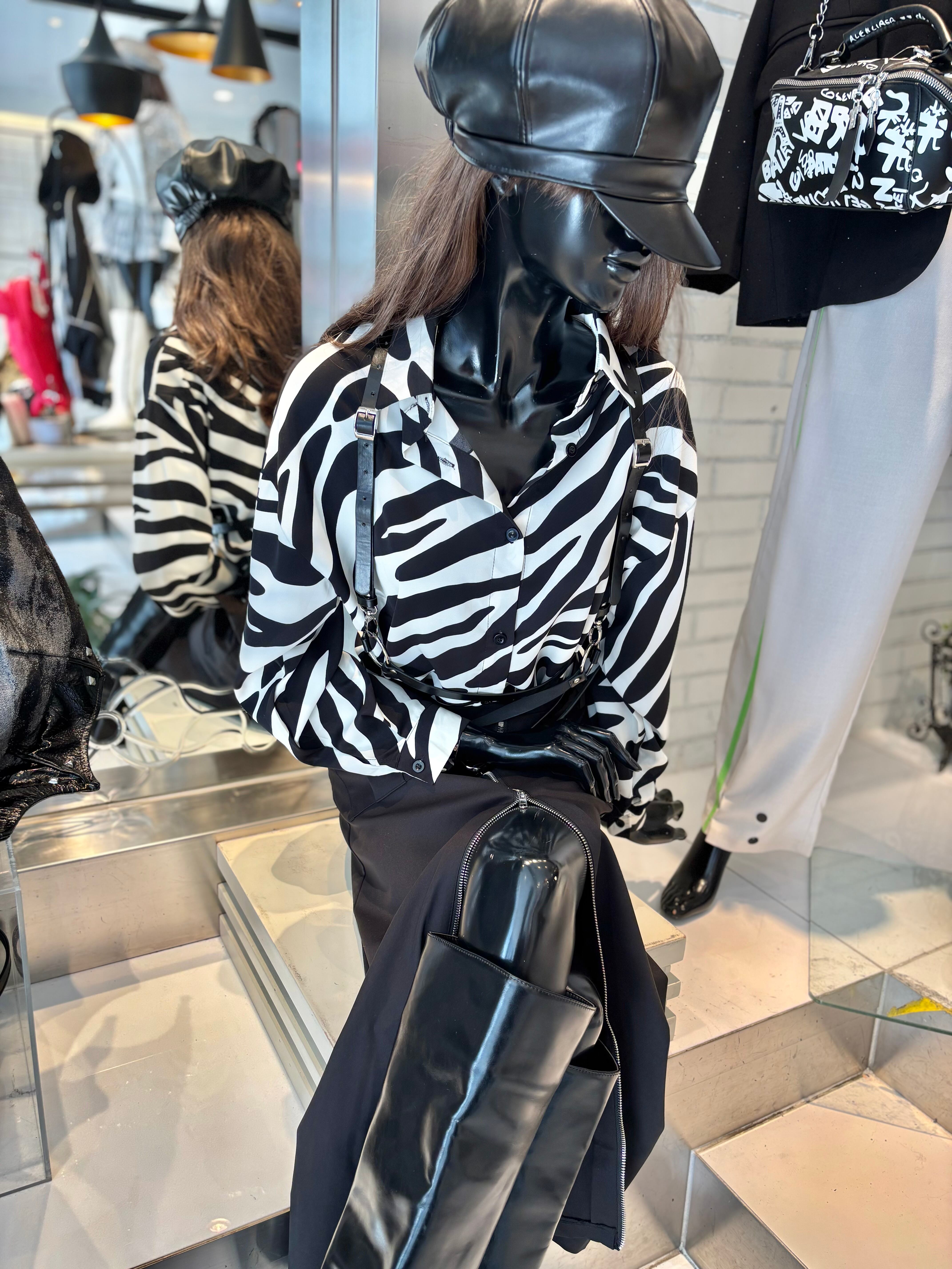 zebra print ester shirt シャツ エステル ゼブラ 白黒 バイカラー