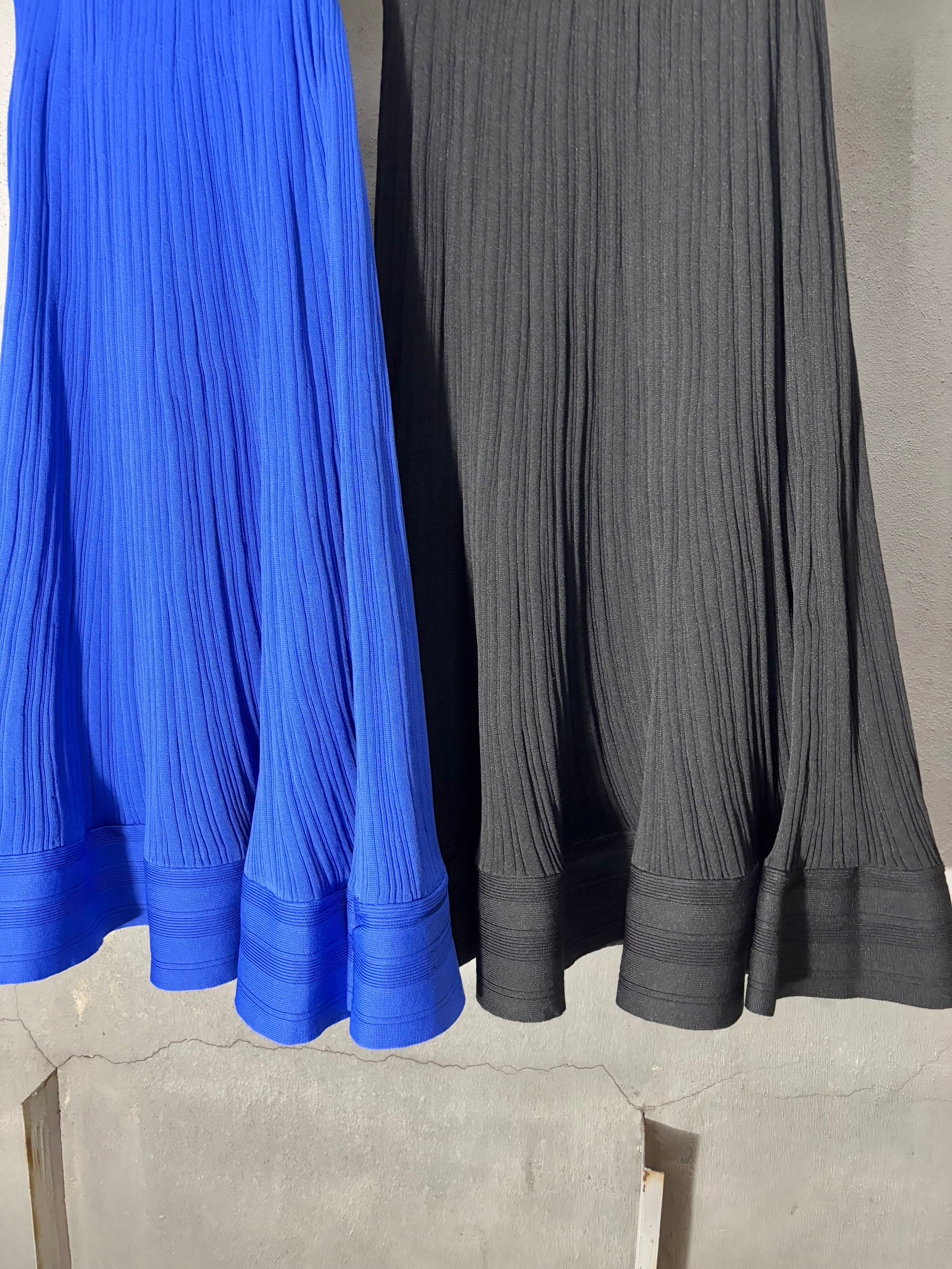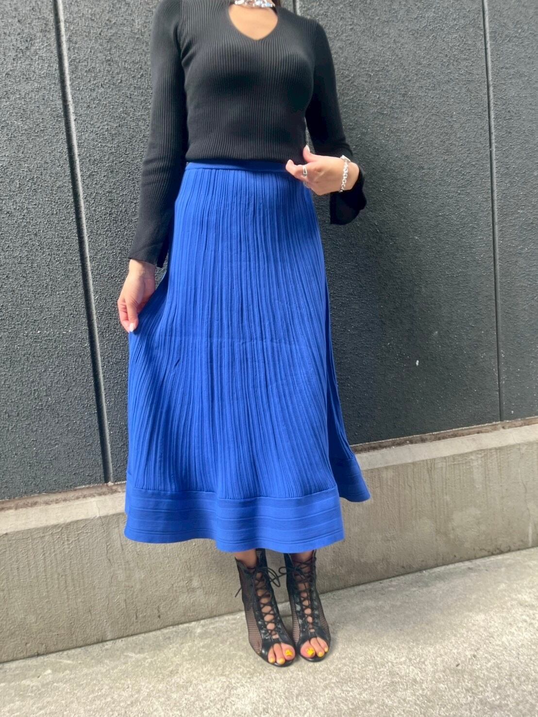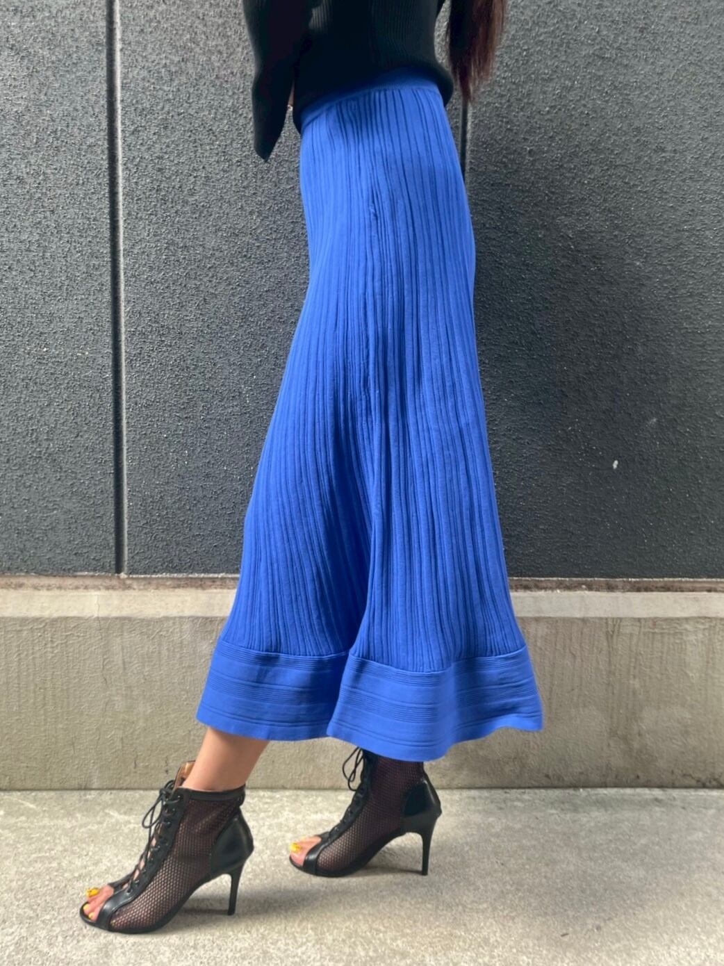 irregular rib ester knit flare skirt スカート ニット フレアスカート ゴムウエス
