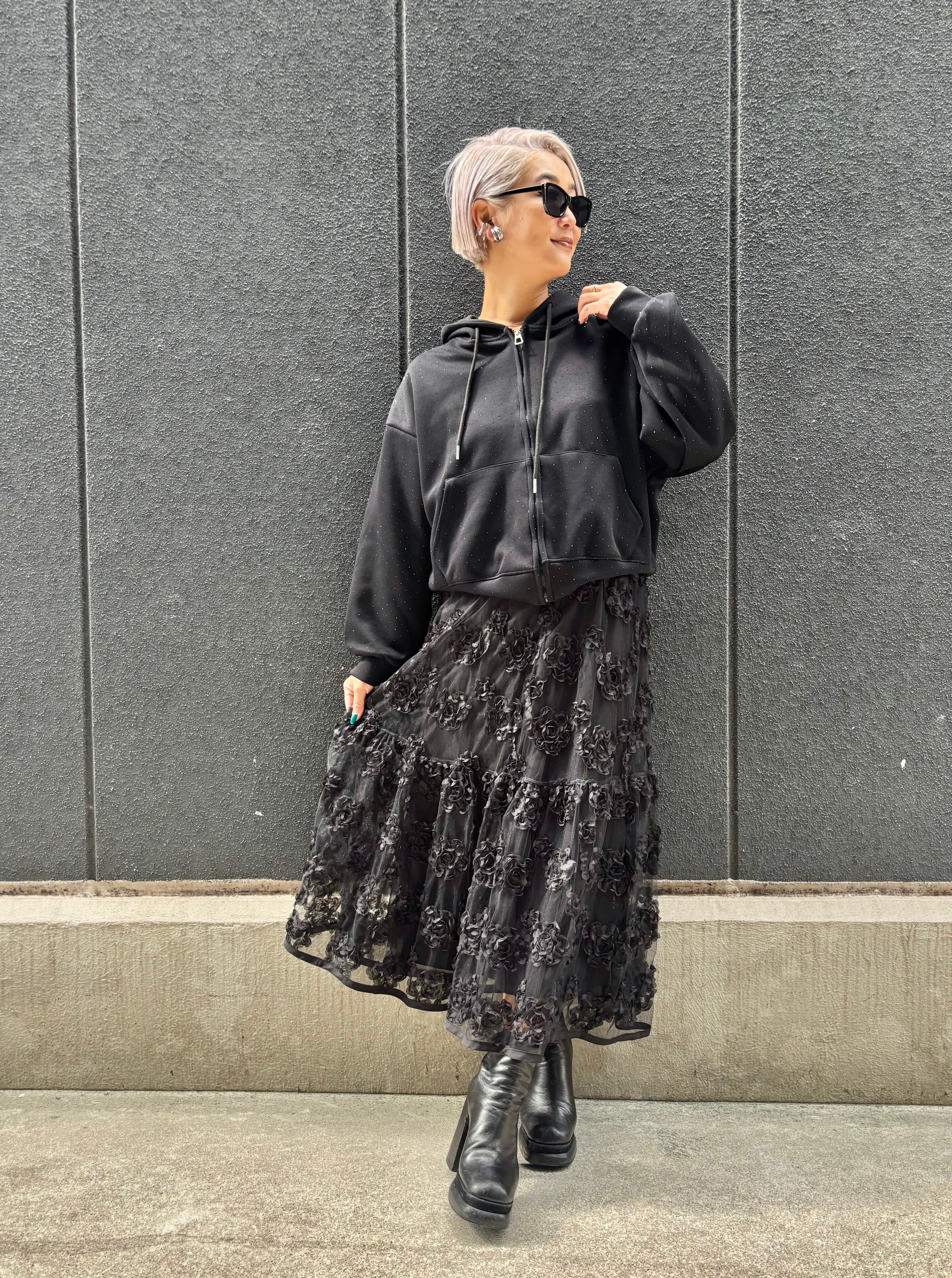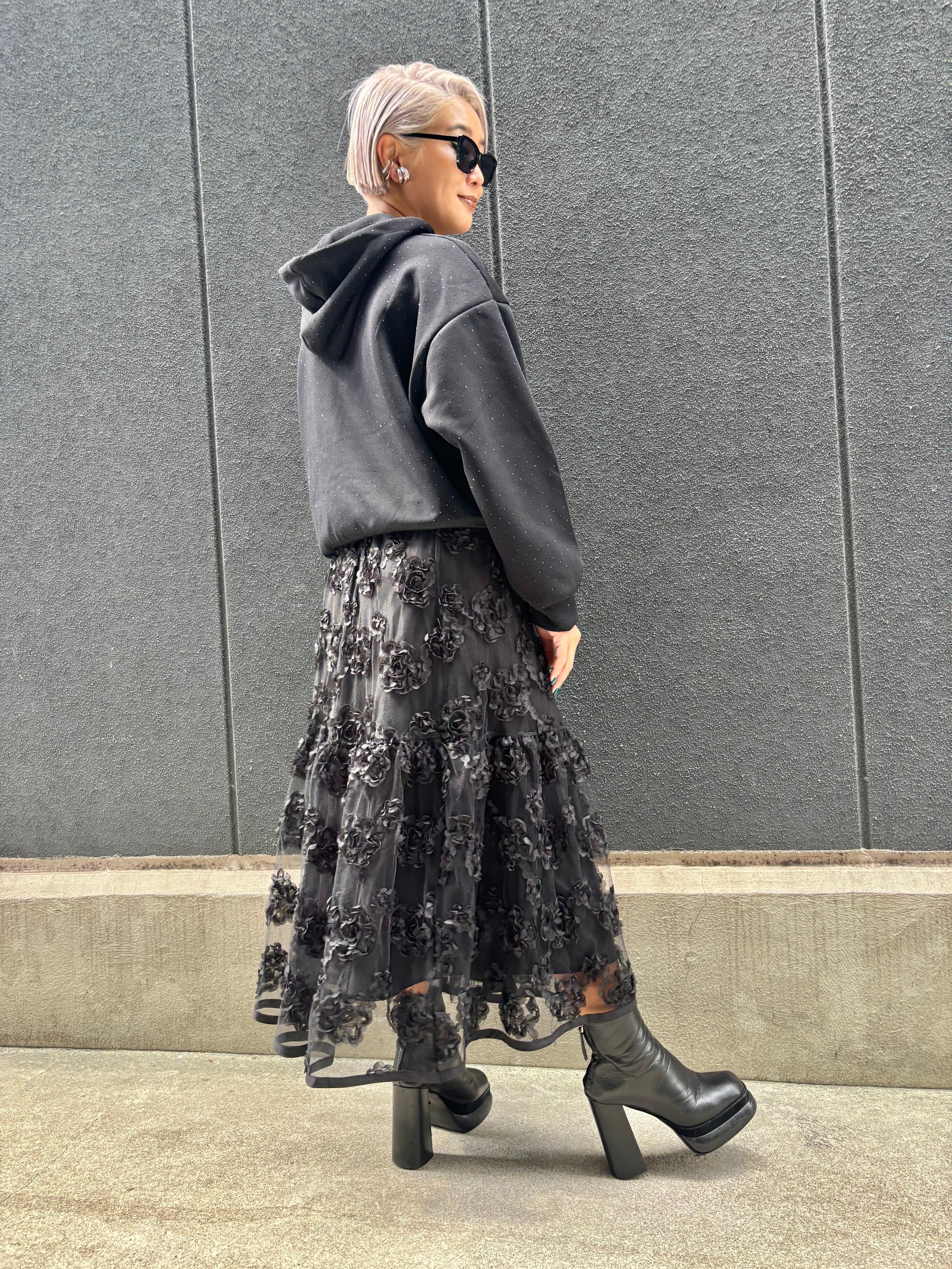 tulle stitch flower design skirt スカート ブラック 黒 レース フラワー
