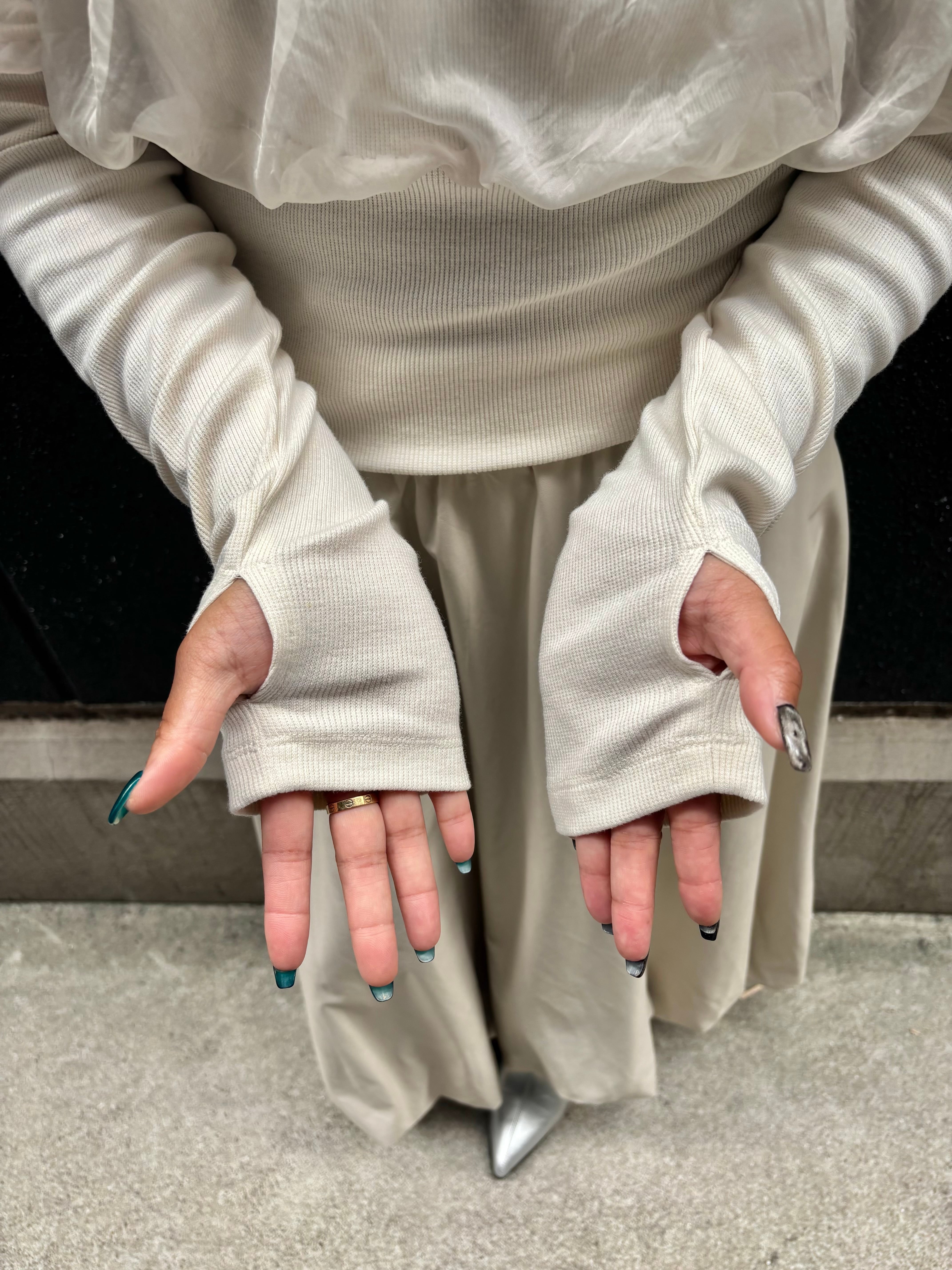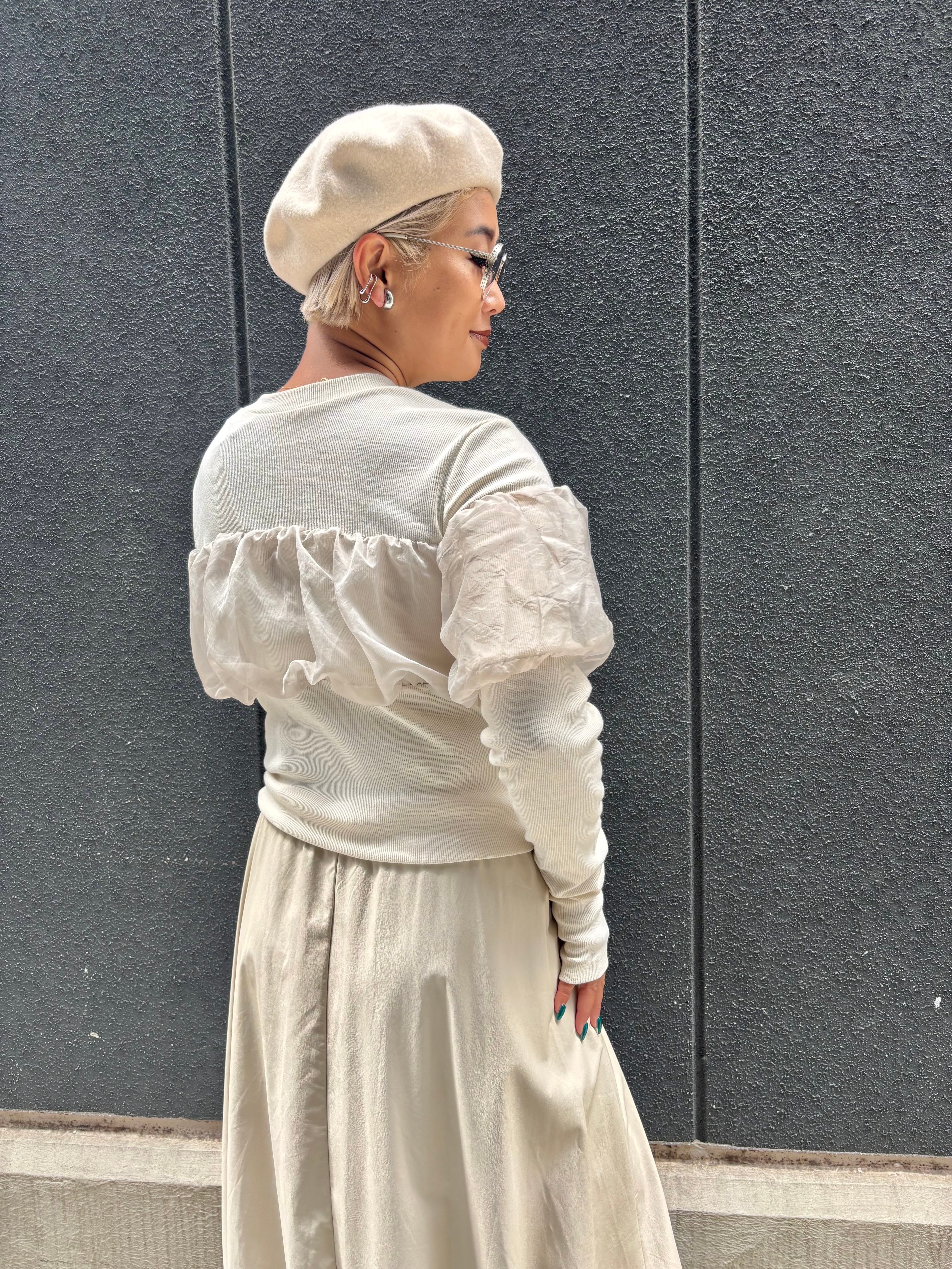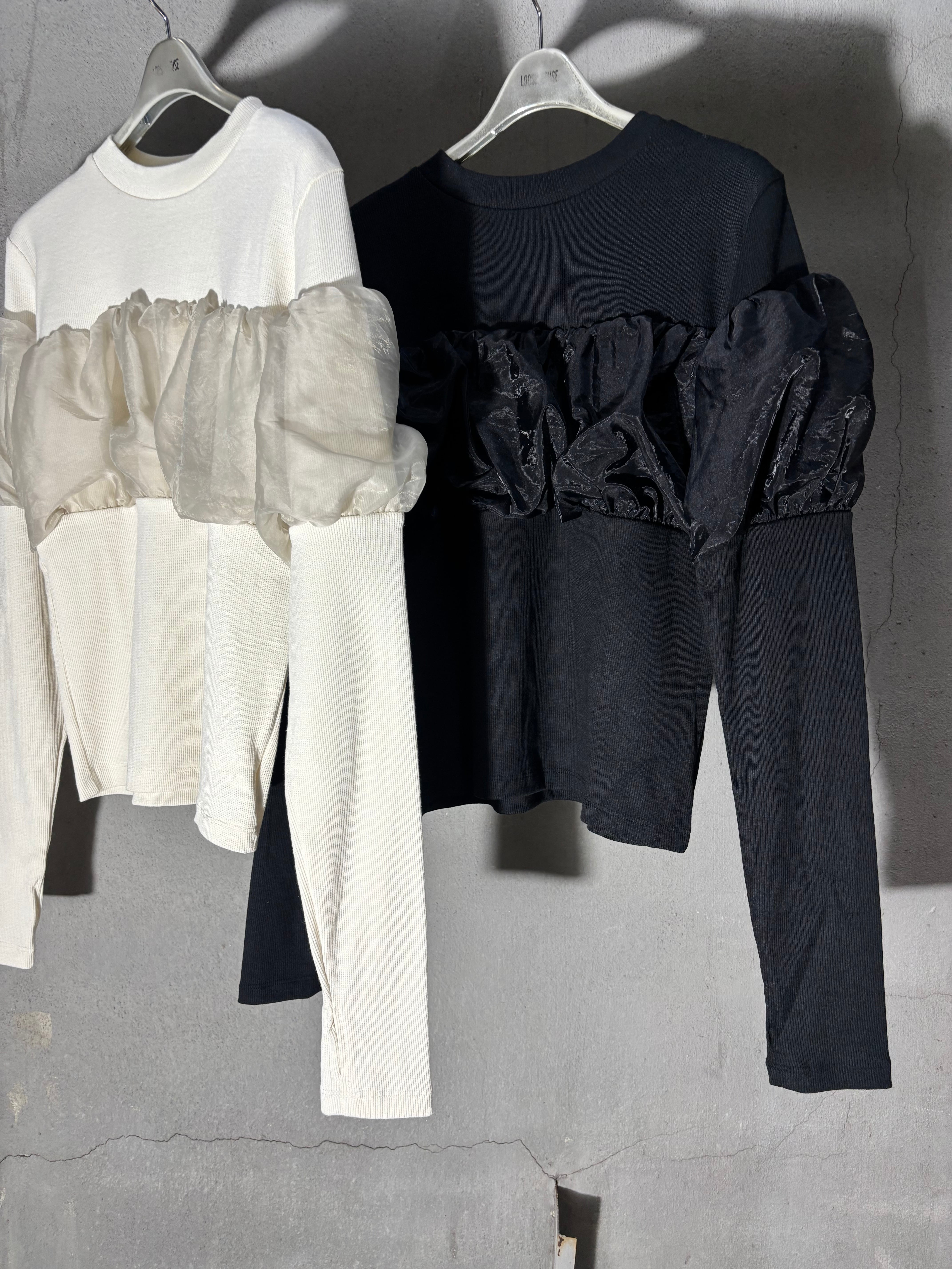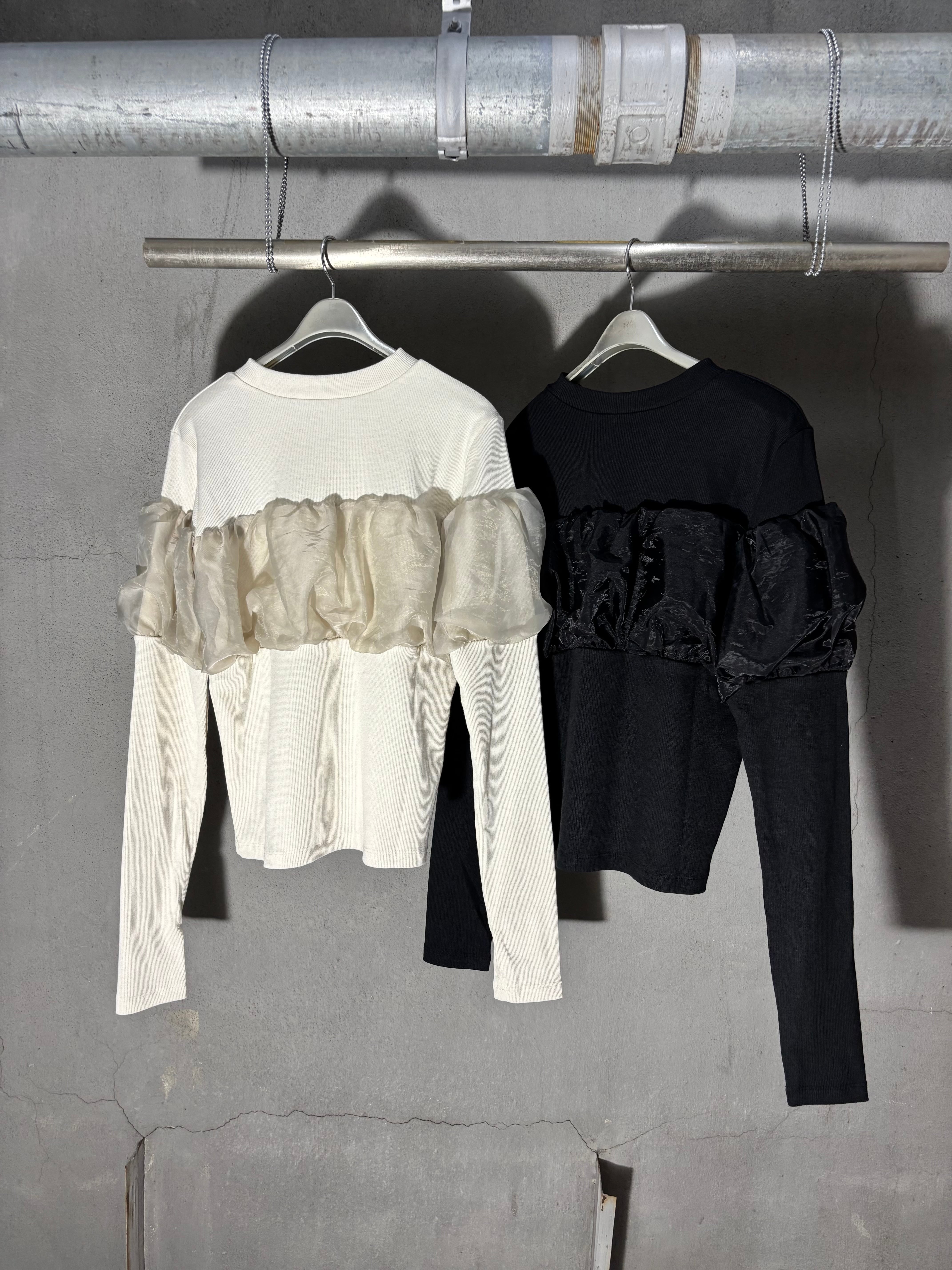 organdy frill design long sleeve tops トップス テレコ オーガンジー フリル 長袖