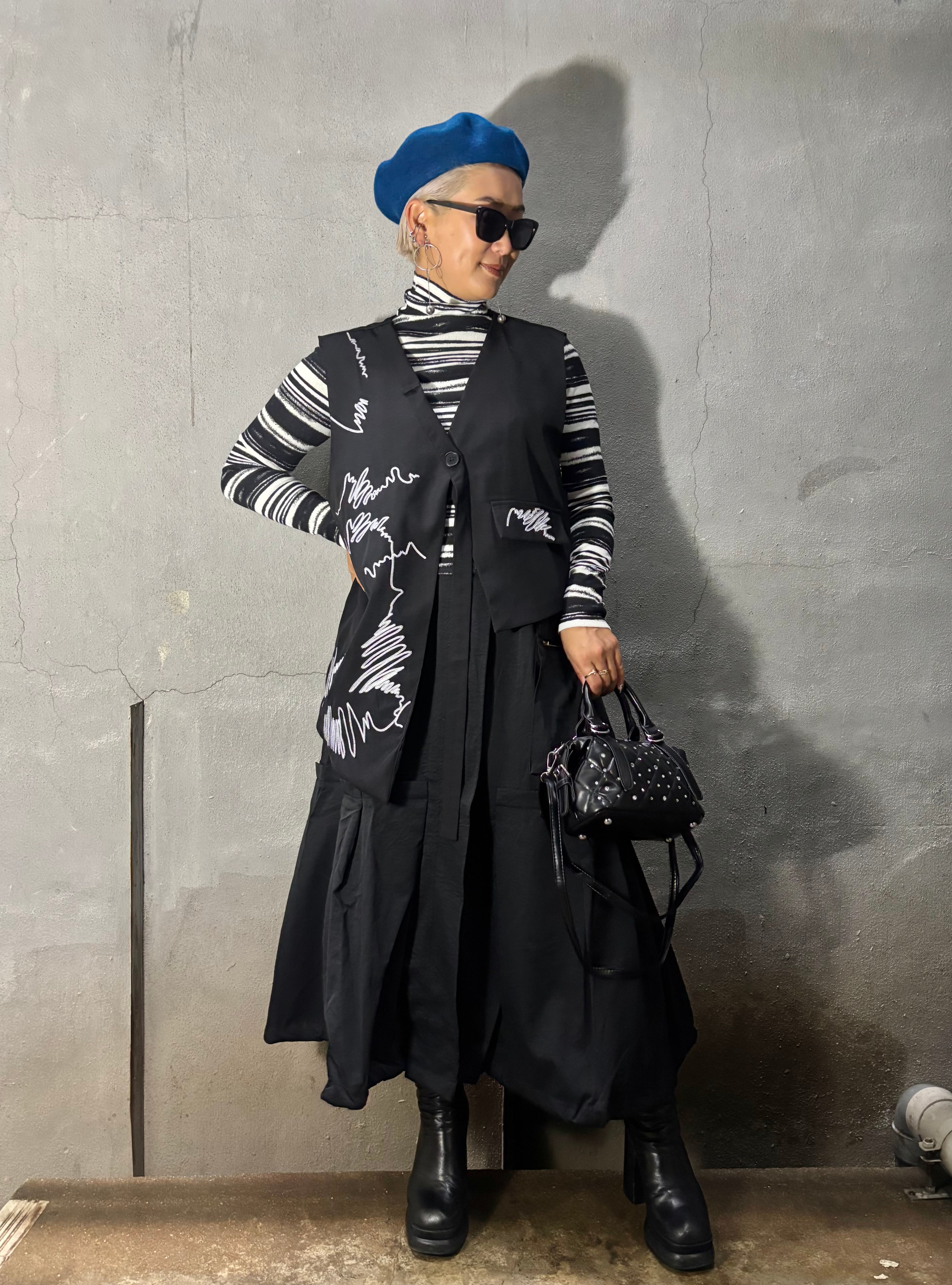 ホワイトのステッチ刺繍がスタイリッシュに映え、どんなコーディネートにもさらなるアクセントを加えます♪