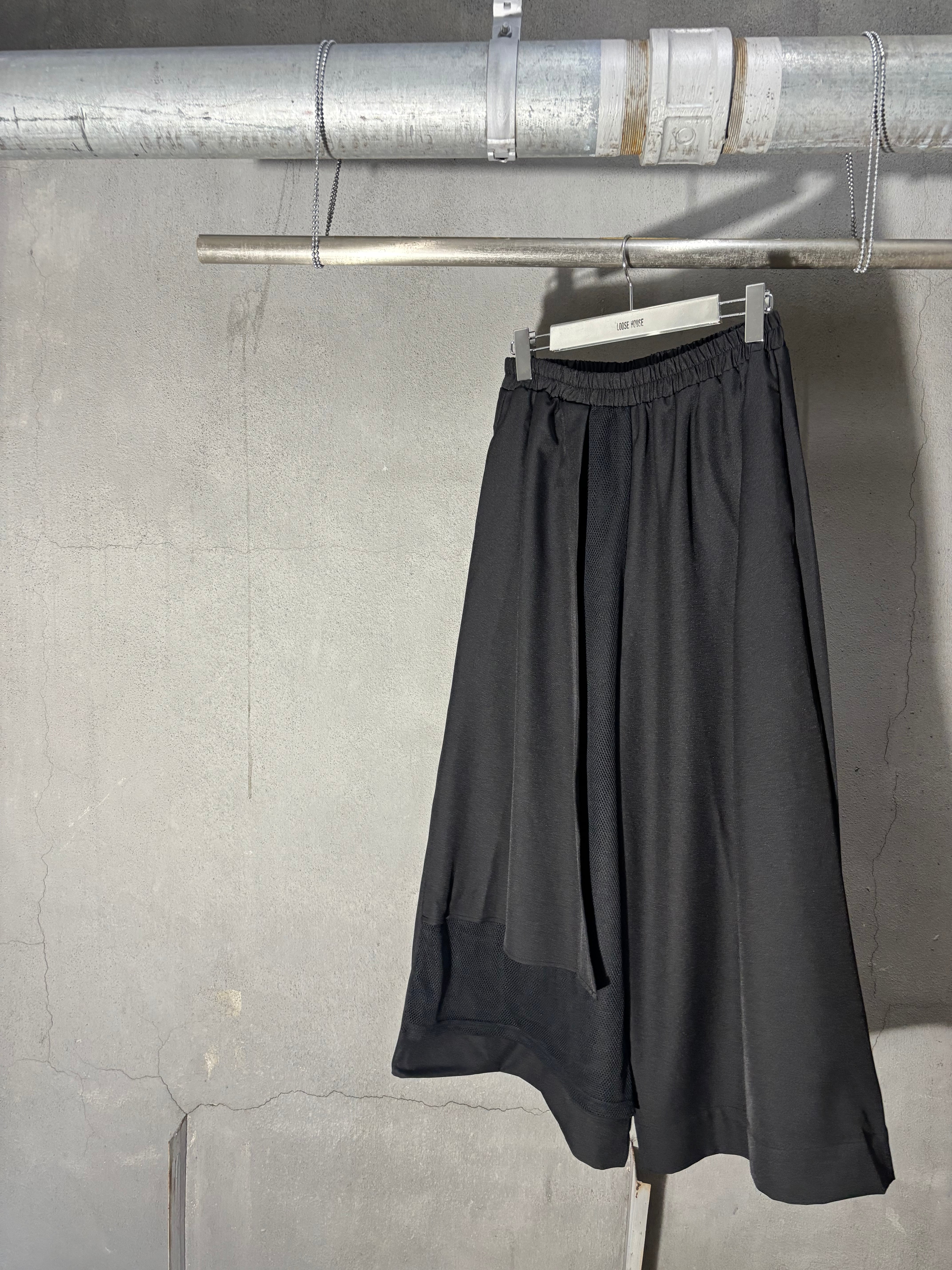 cover mesh design wide pants パンツ ワイドパンツ メッシュ ゴムウエスト ブラック 黒