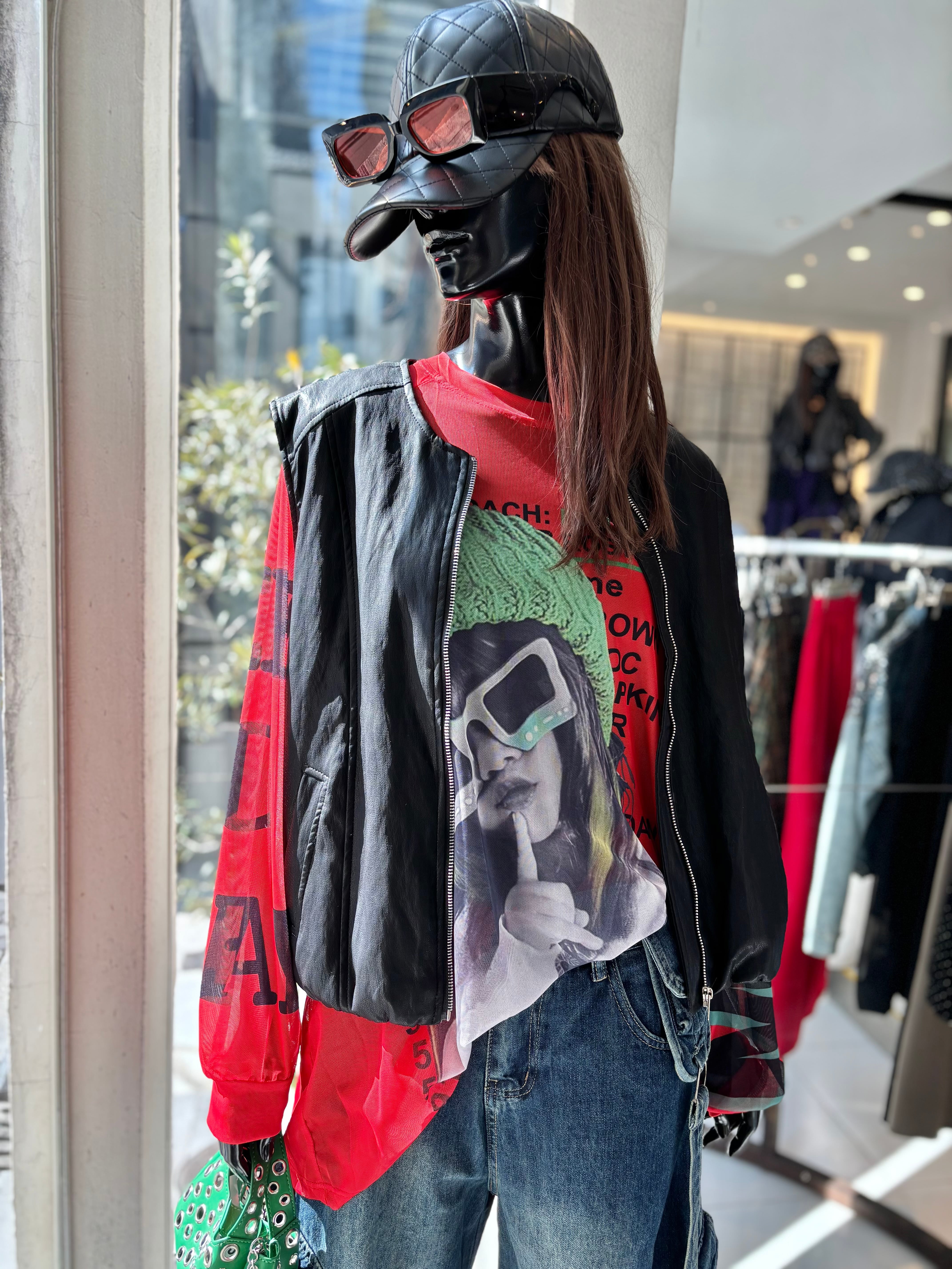 girl print stretch mesh over size tops トップス メッシュ ストレッチ プリント オーバーサイズ