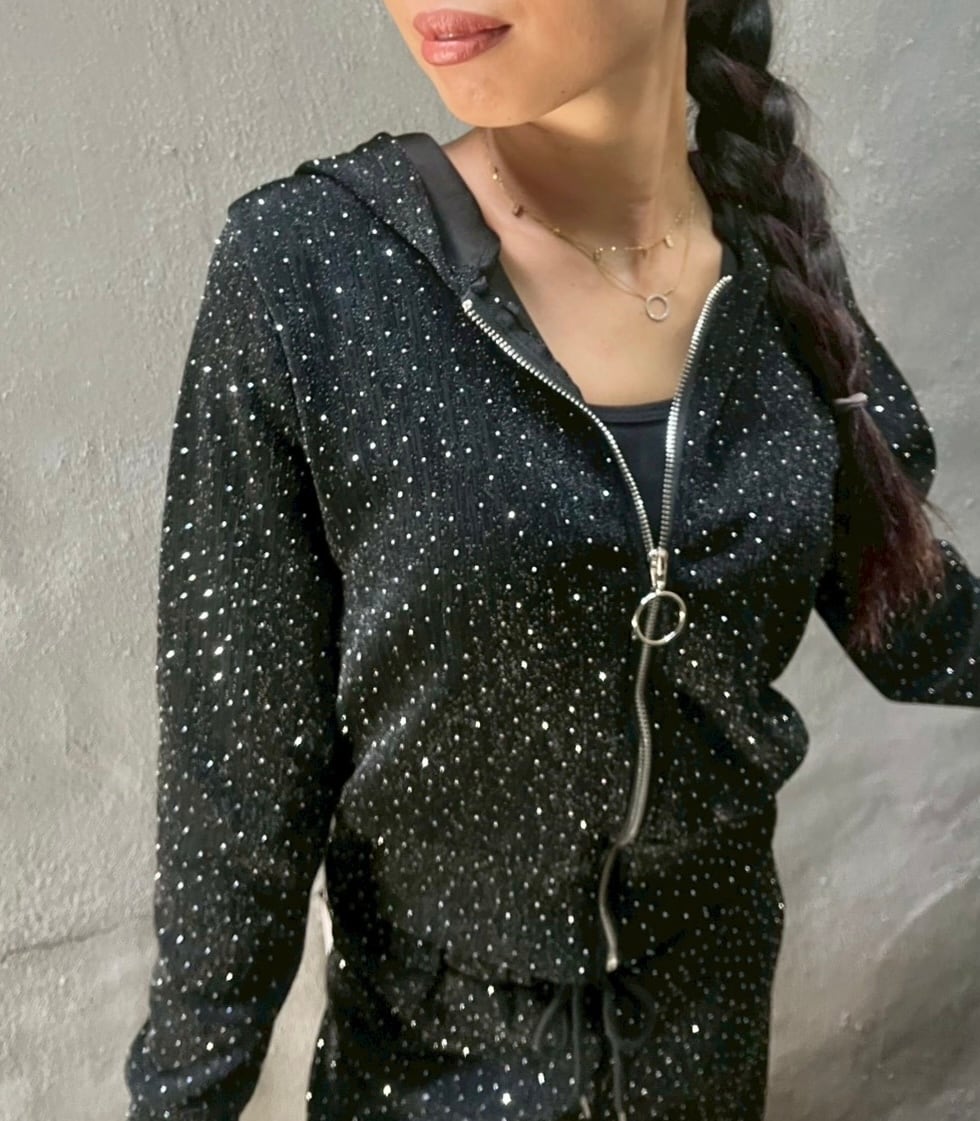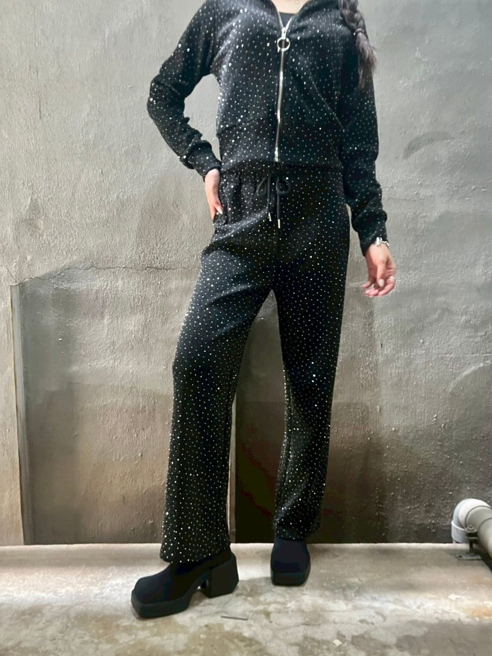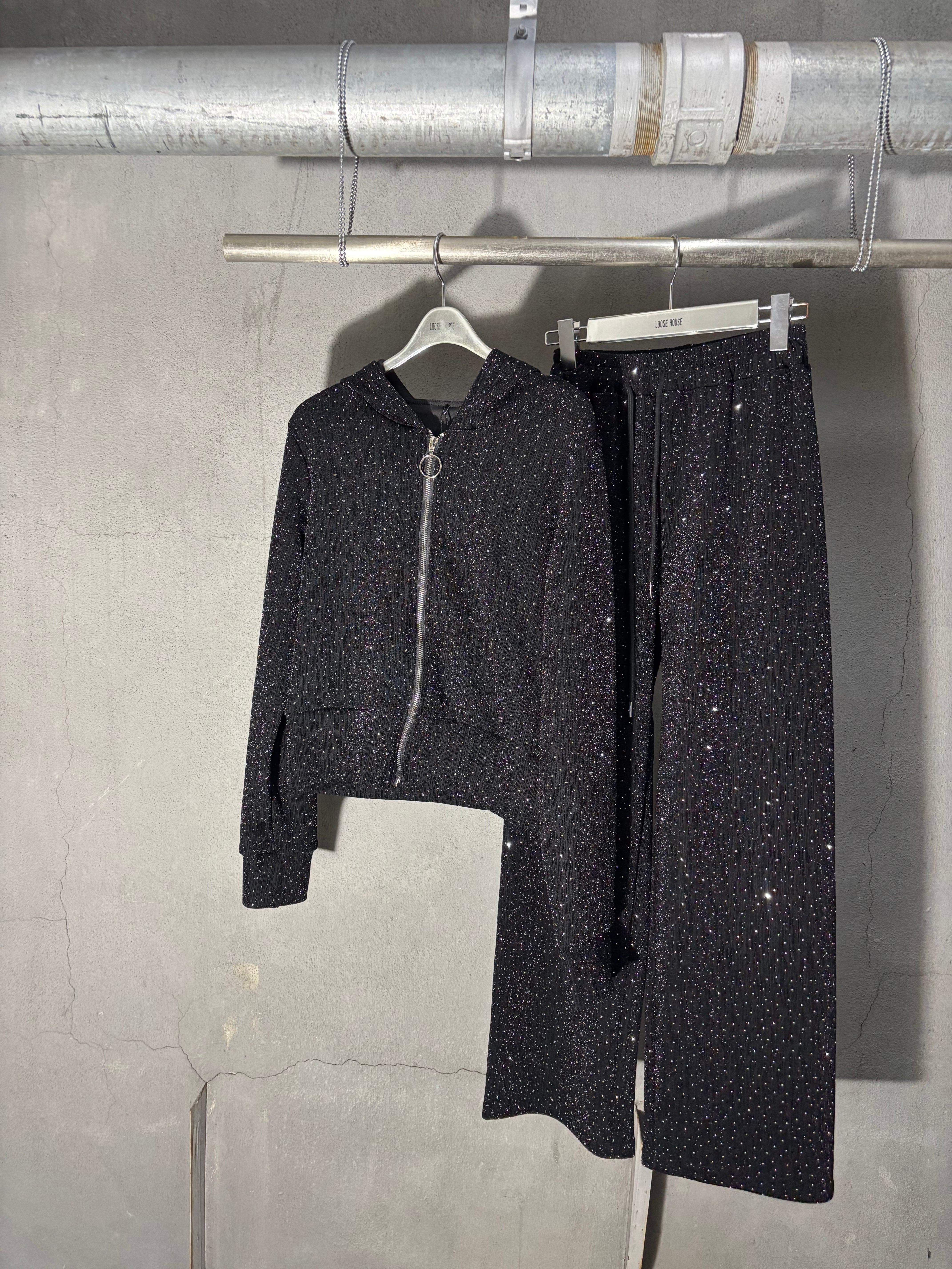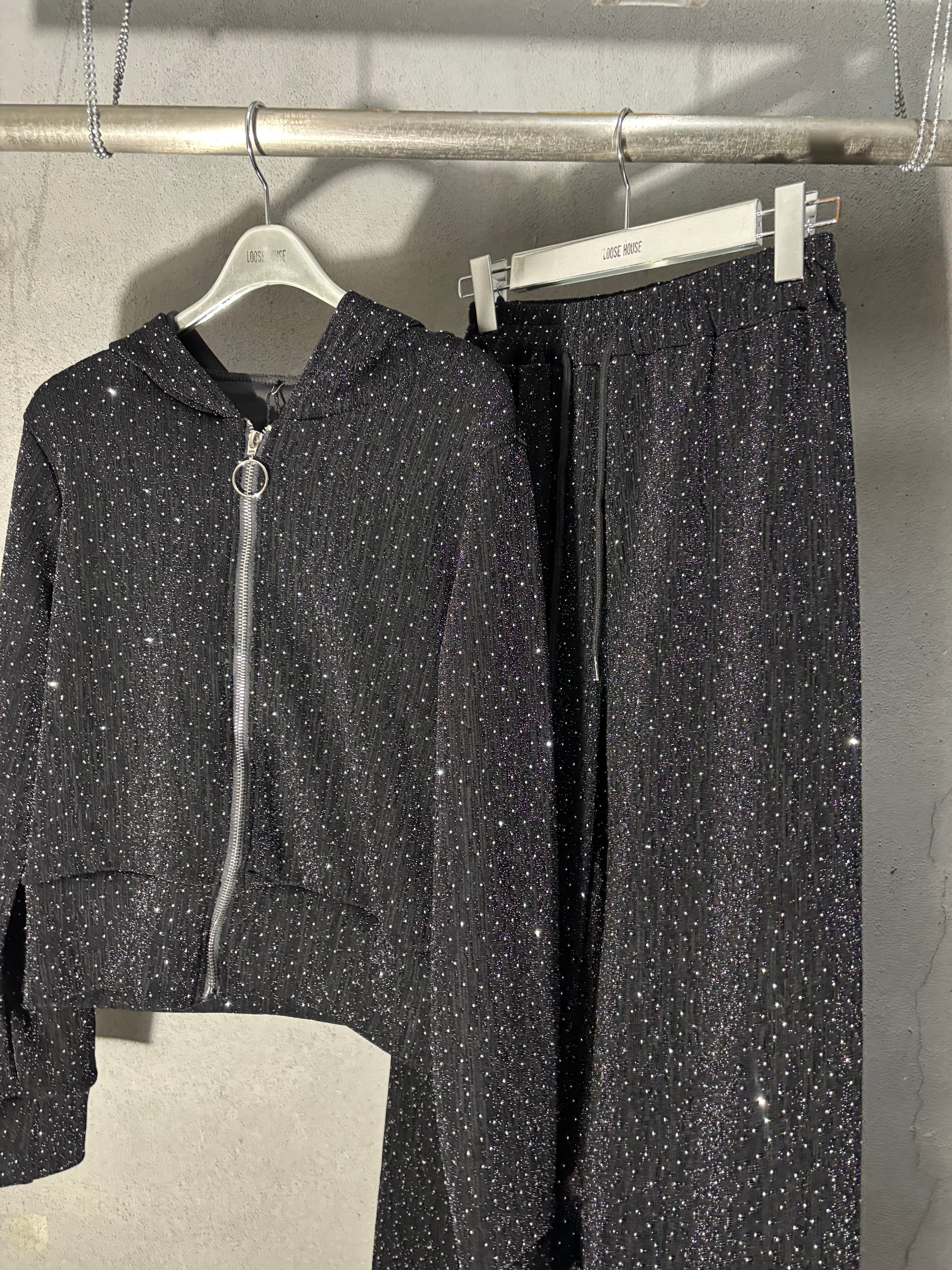 shiny stone hoodie × wide pants 2P set up セットアップ 2点セット フーディー ジップアップ パンツ ハピス キラキラ