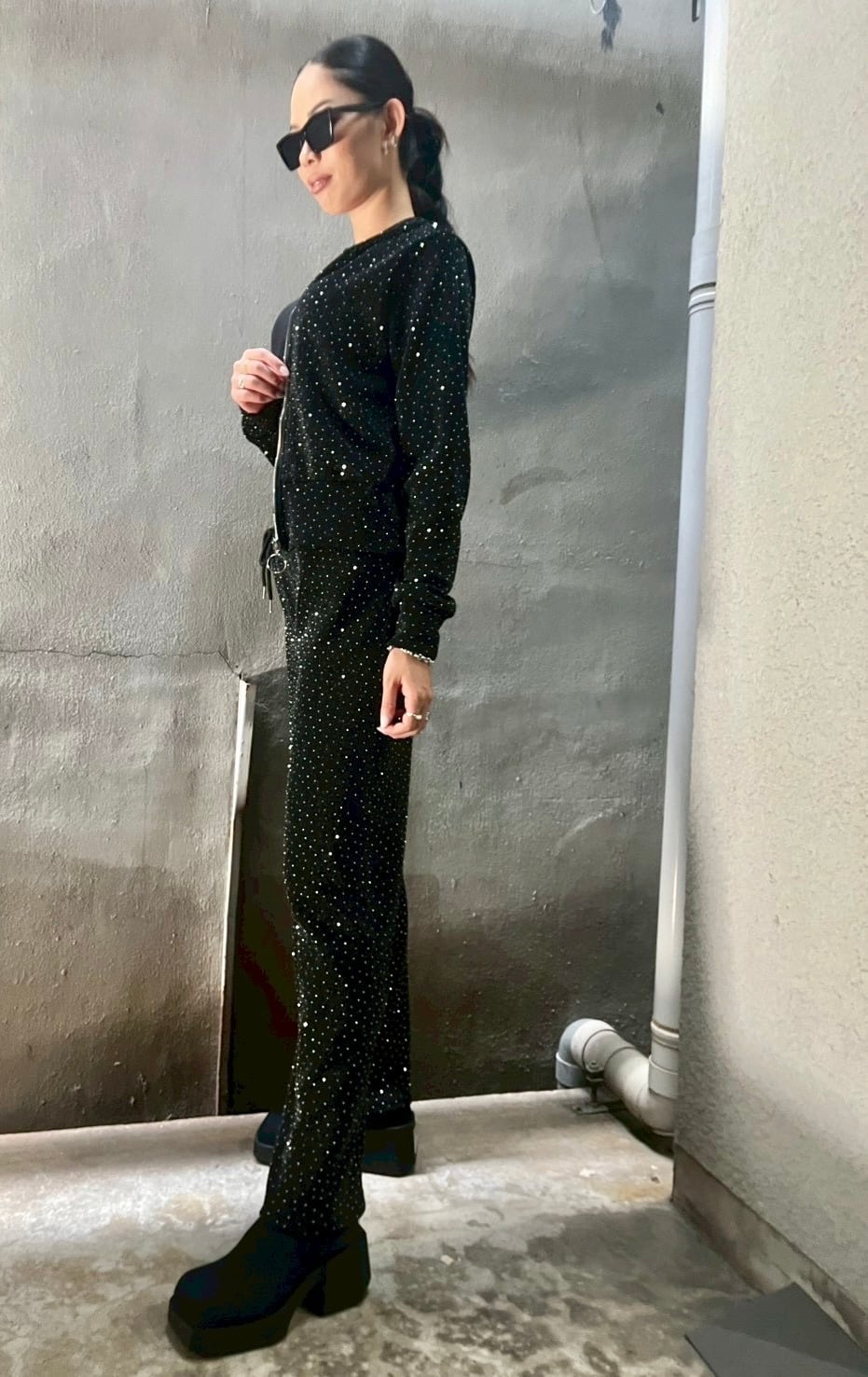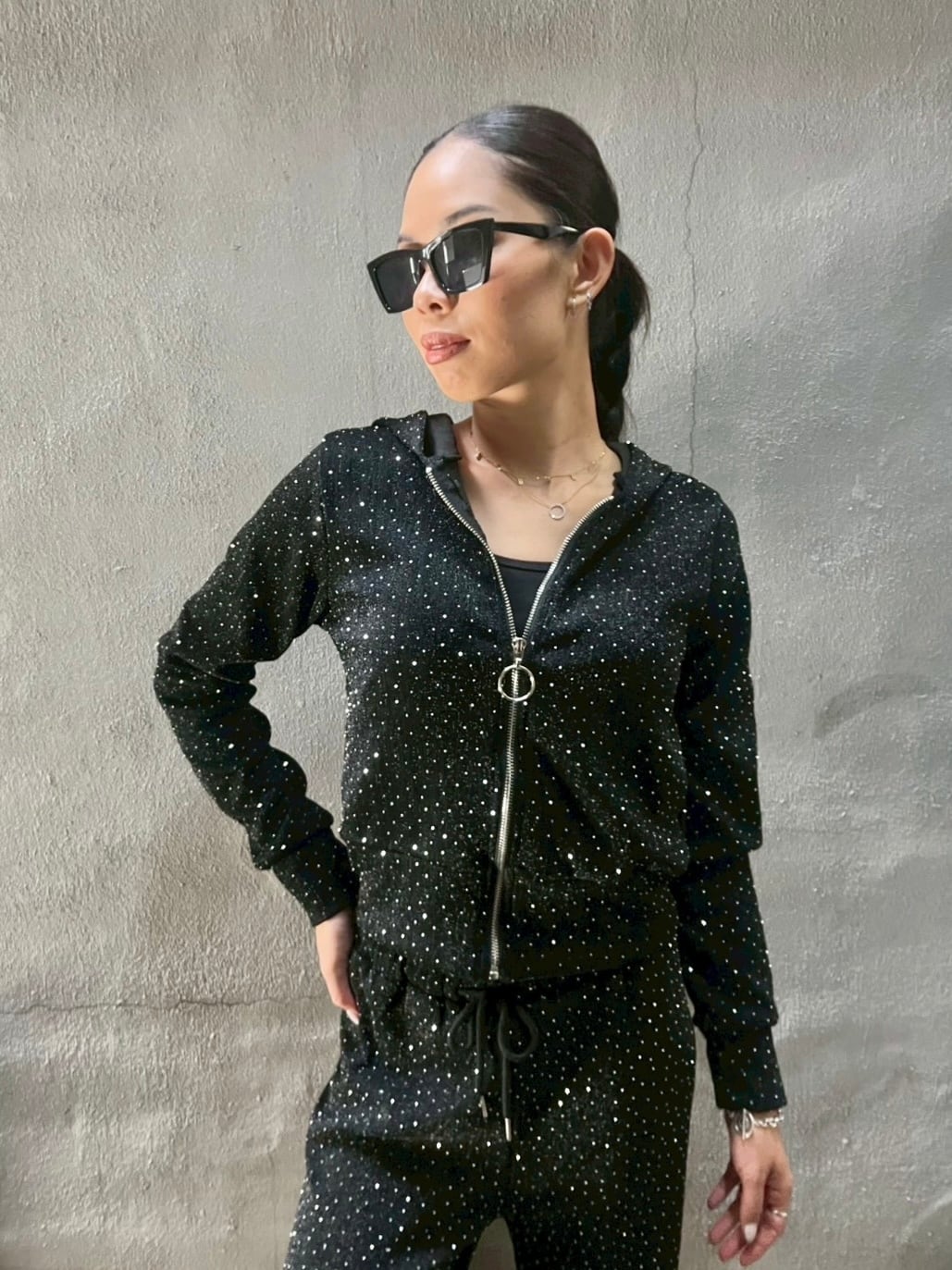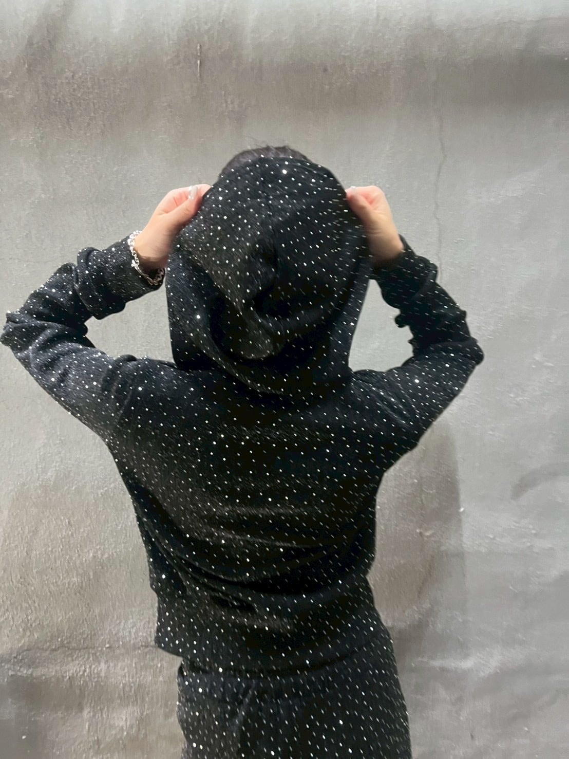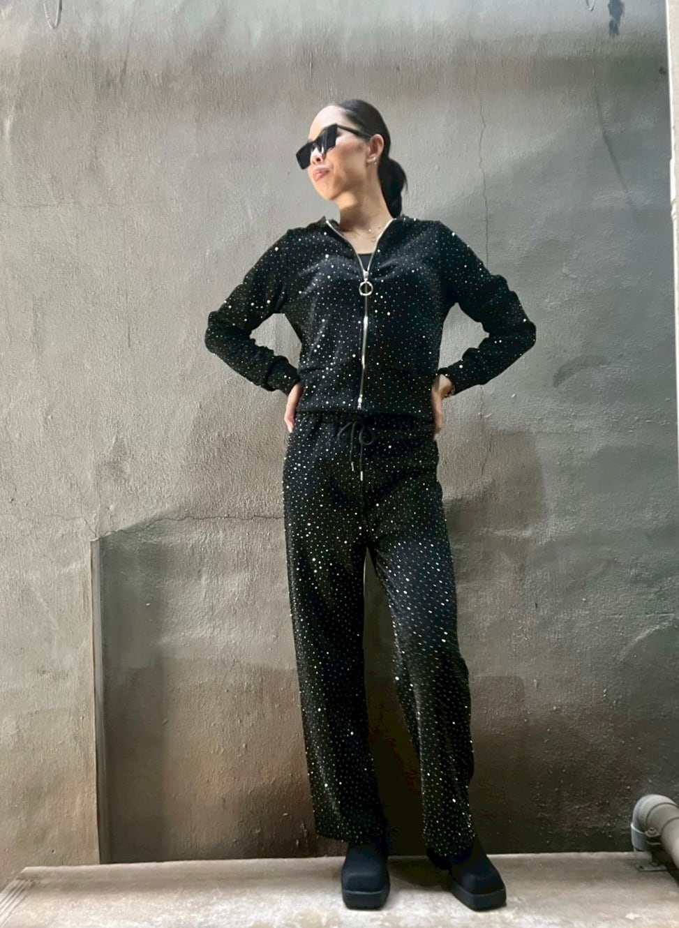 shiny stone hoodie × wide pants 2P set up セットアップ 2点セット フーディー ジップアップ パンツ ハピス キラキラ