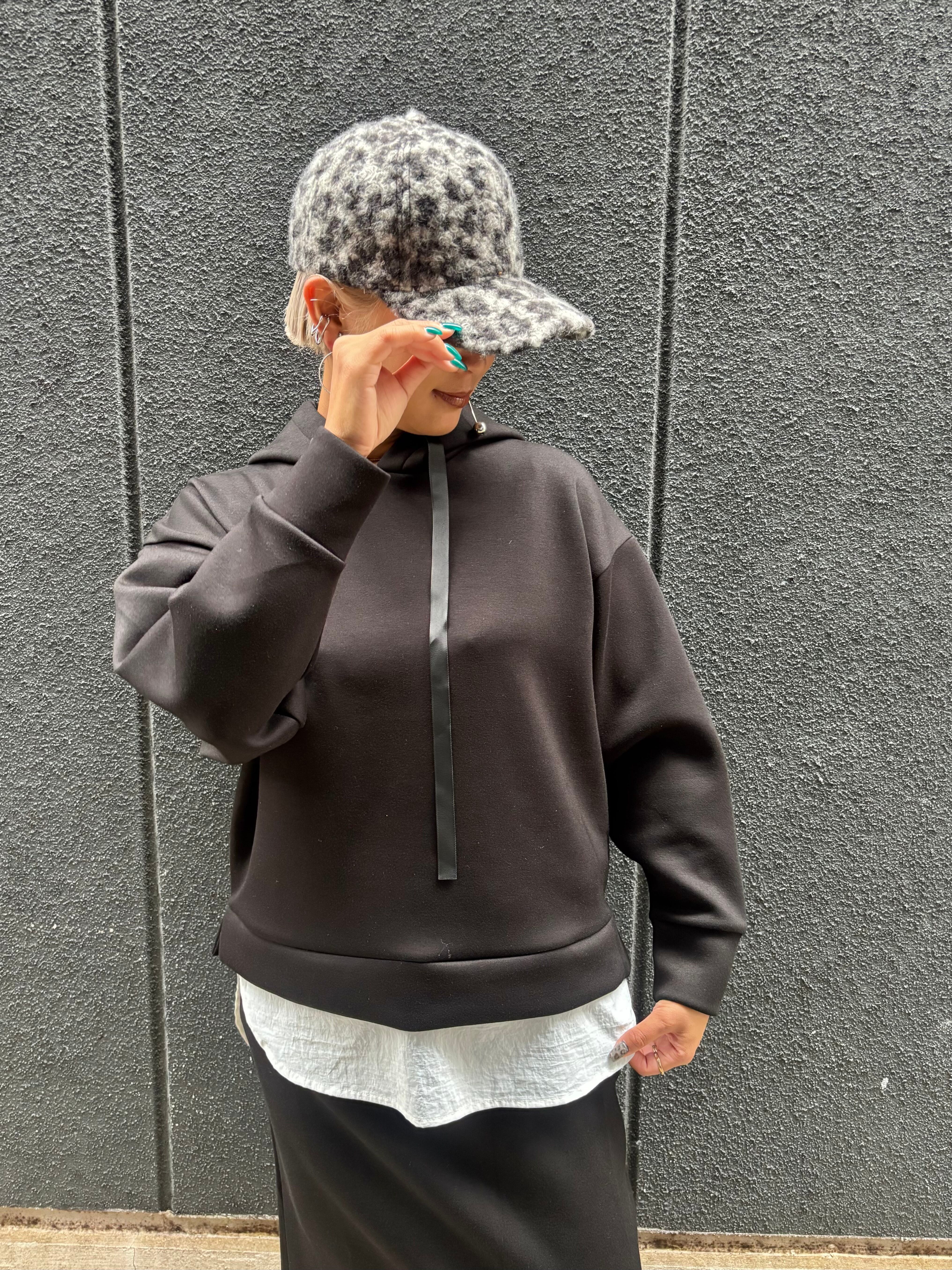 フーディーとロングスカートの2点セットアップは、上下別々でも着回し可能!