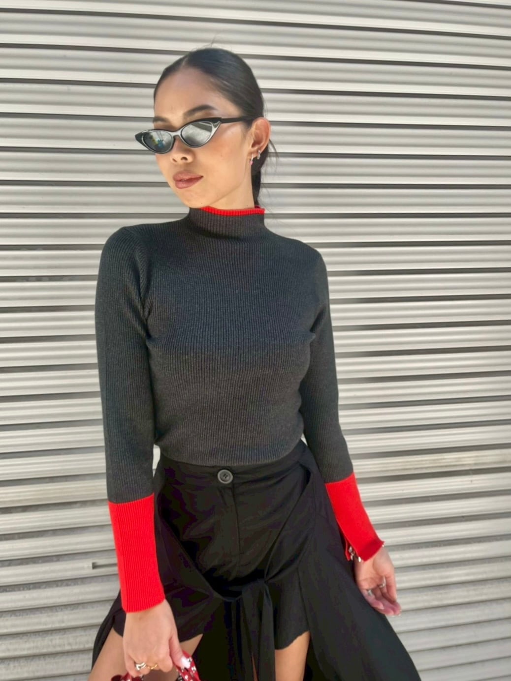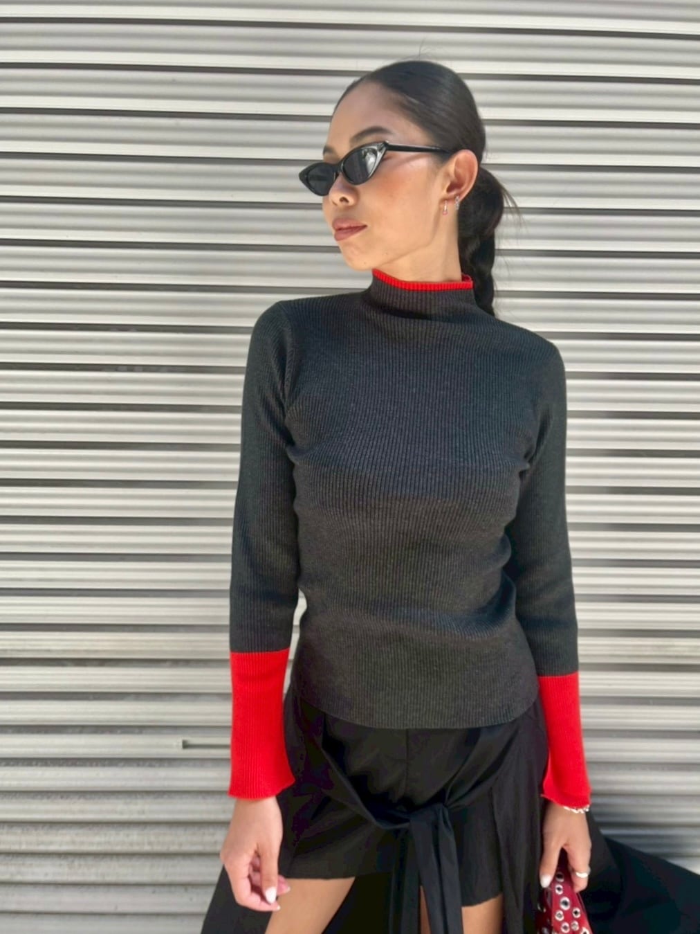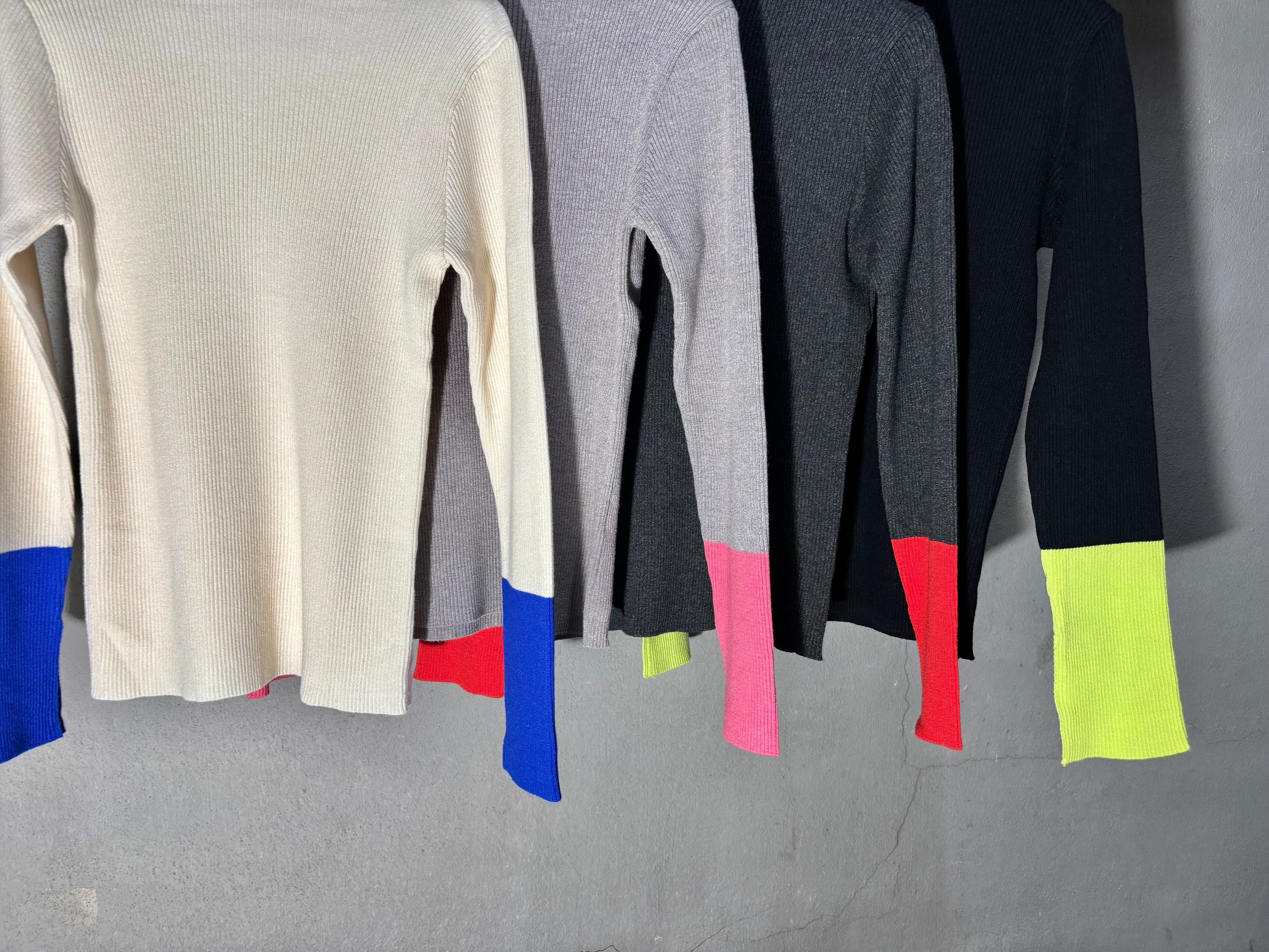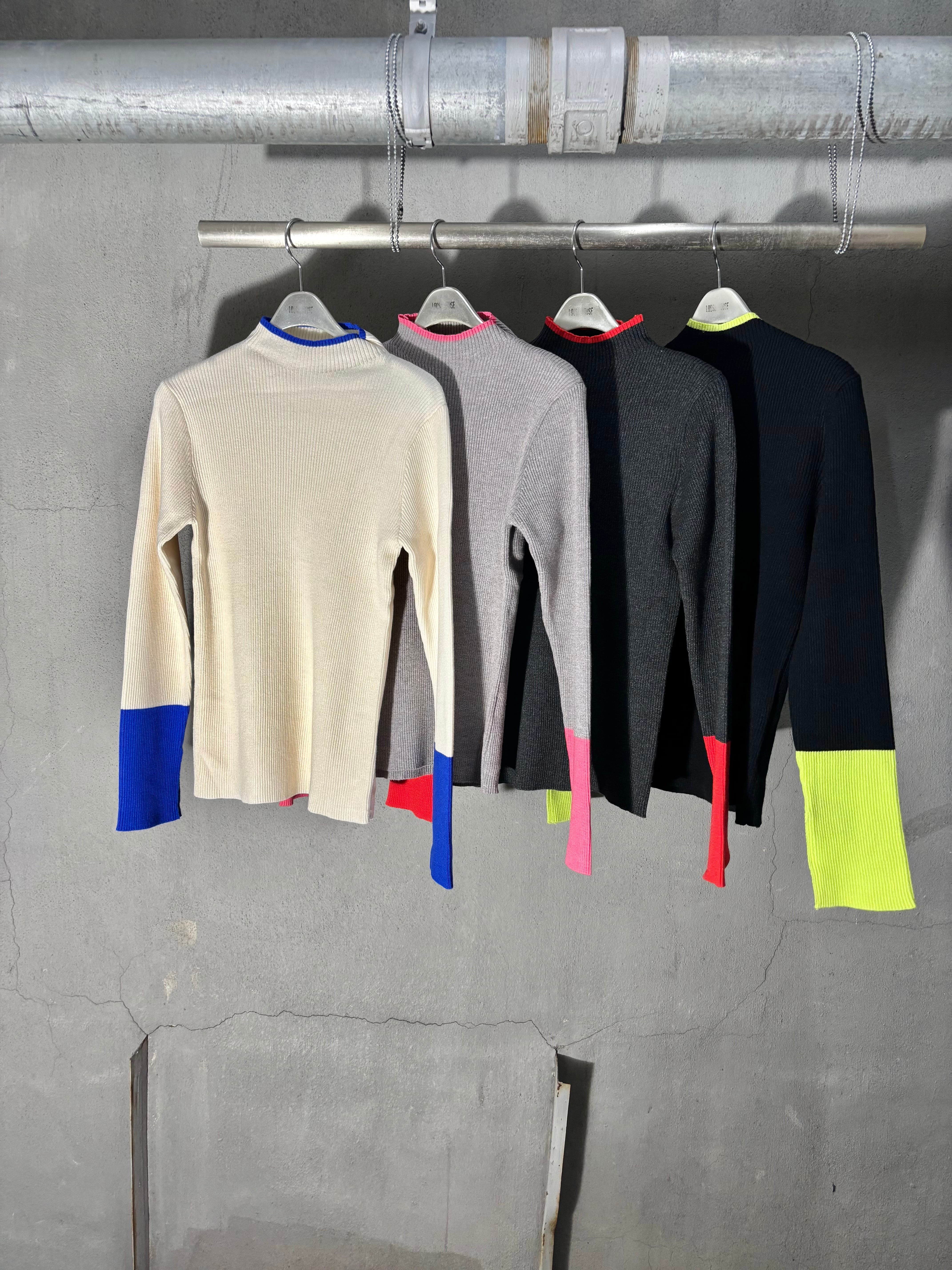 point color design bottle neck rib knit tops トップス ニット リブニット ポイントカラー バイカラー ボトルネック スリット