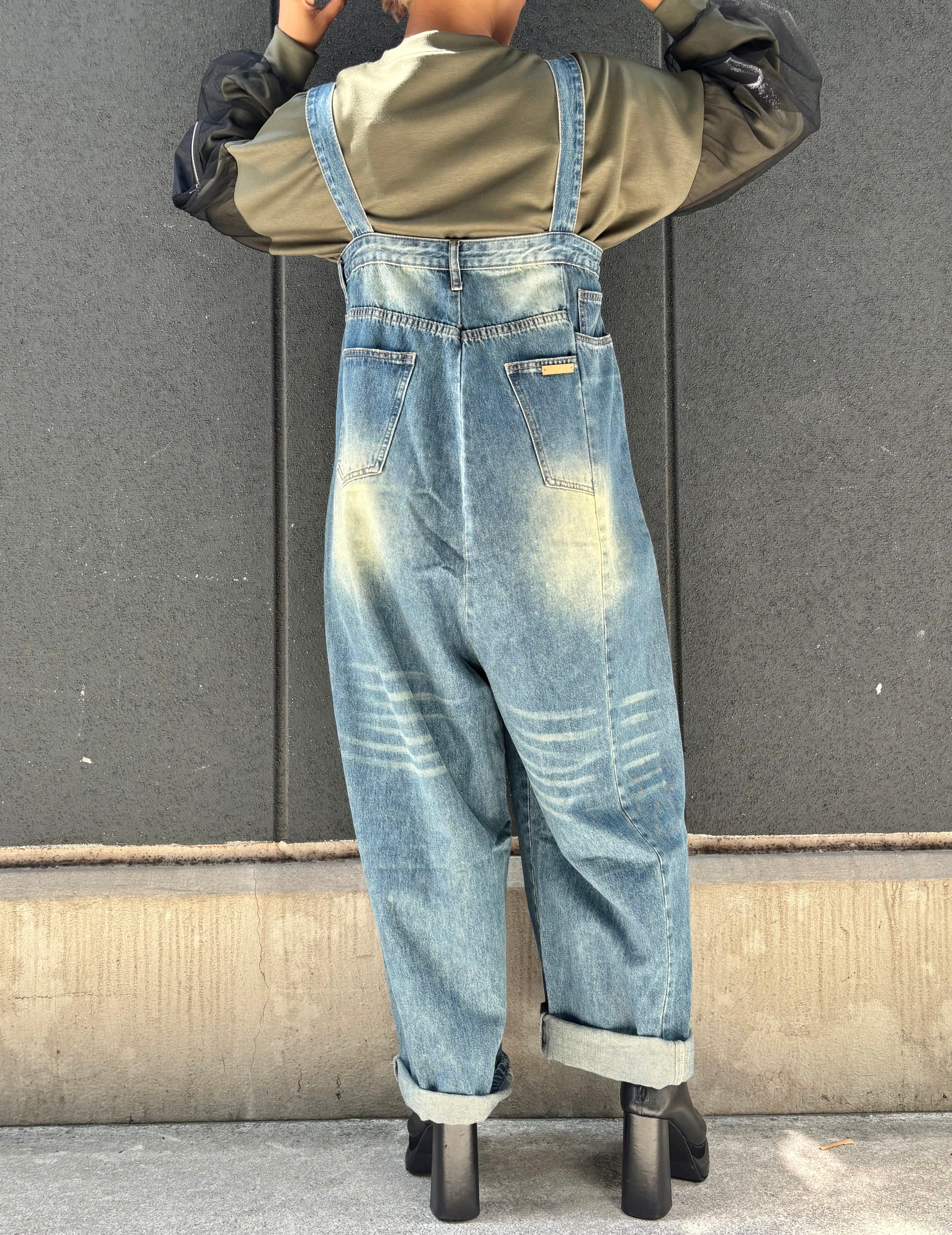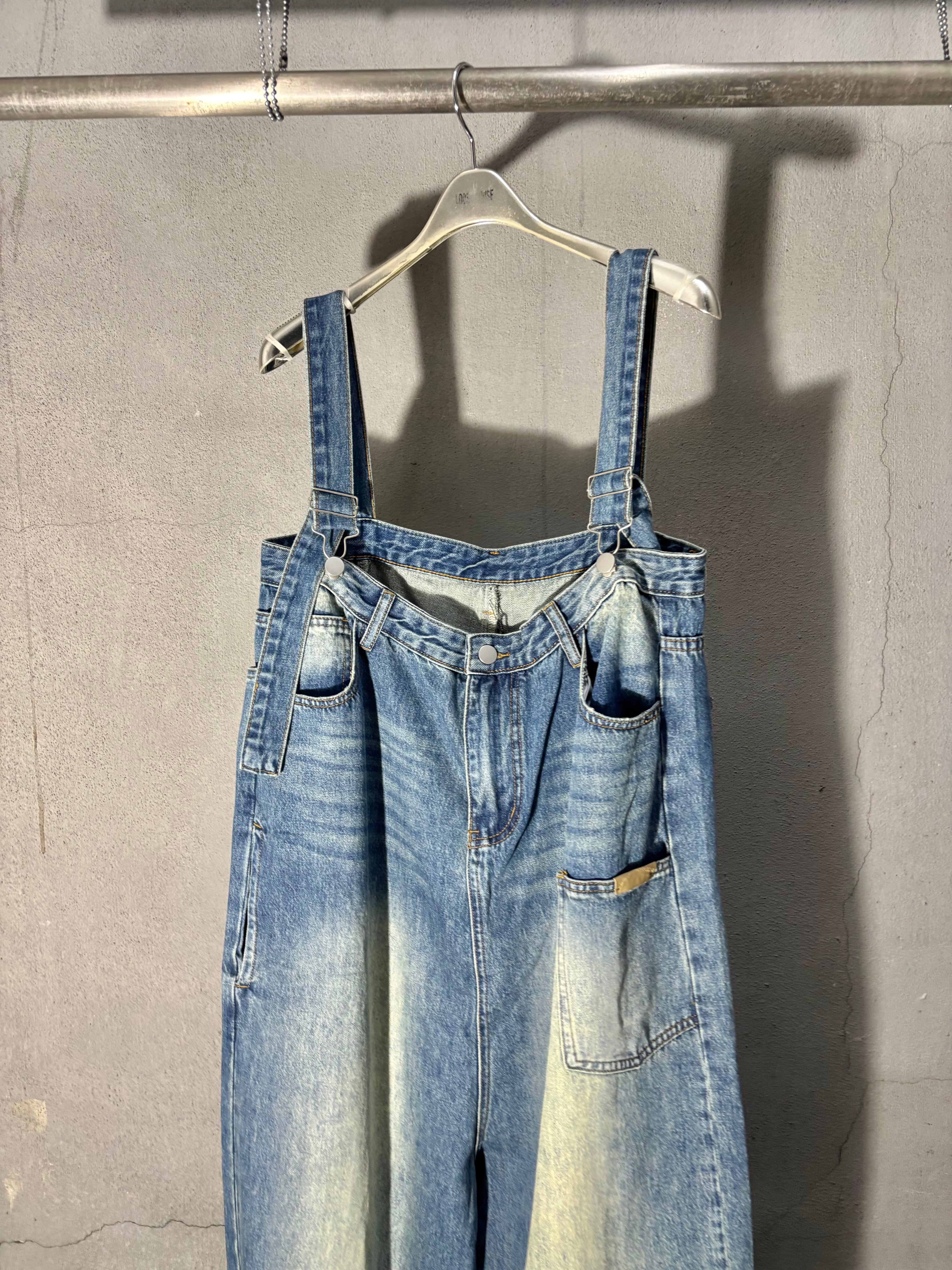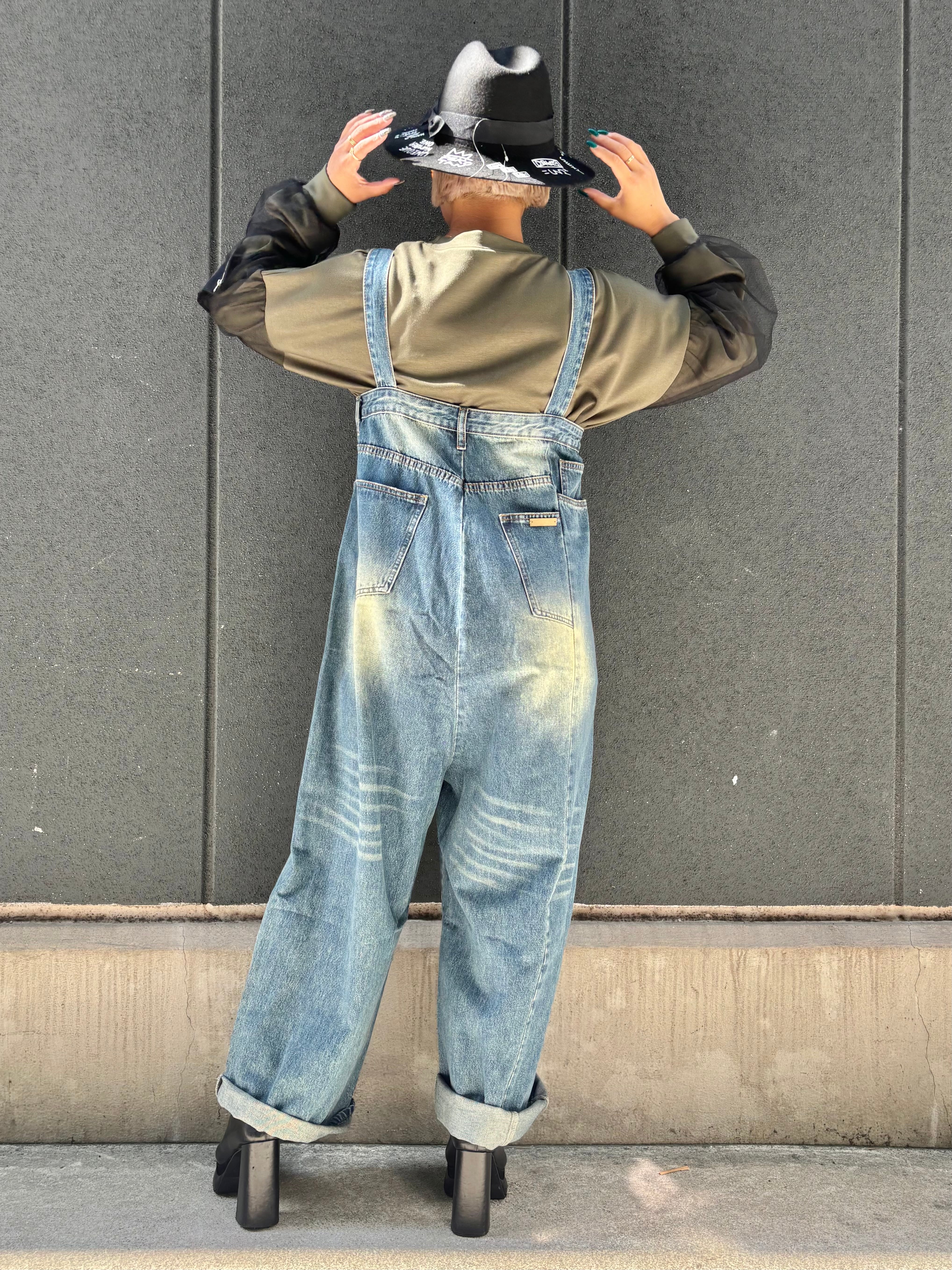 denim design wide salopette pants デニム パンツ ワイドパンツ サロペット 重ね着