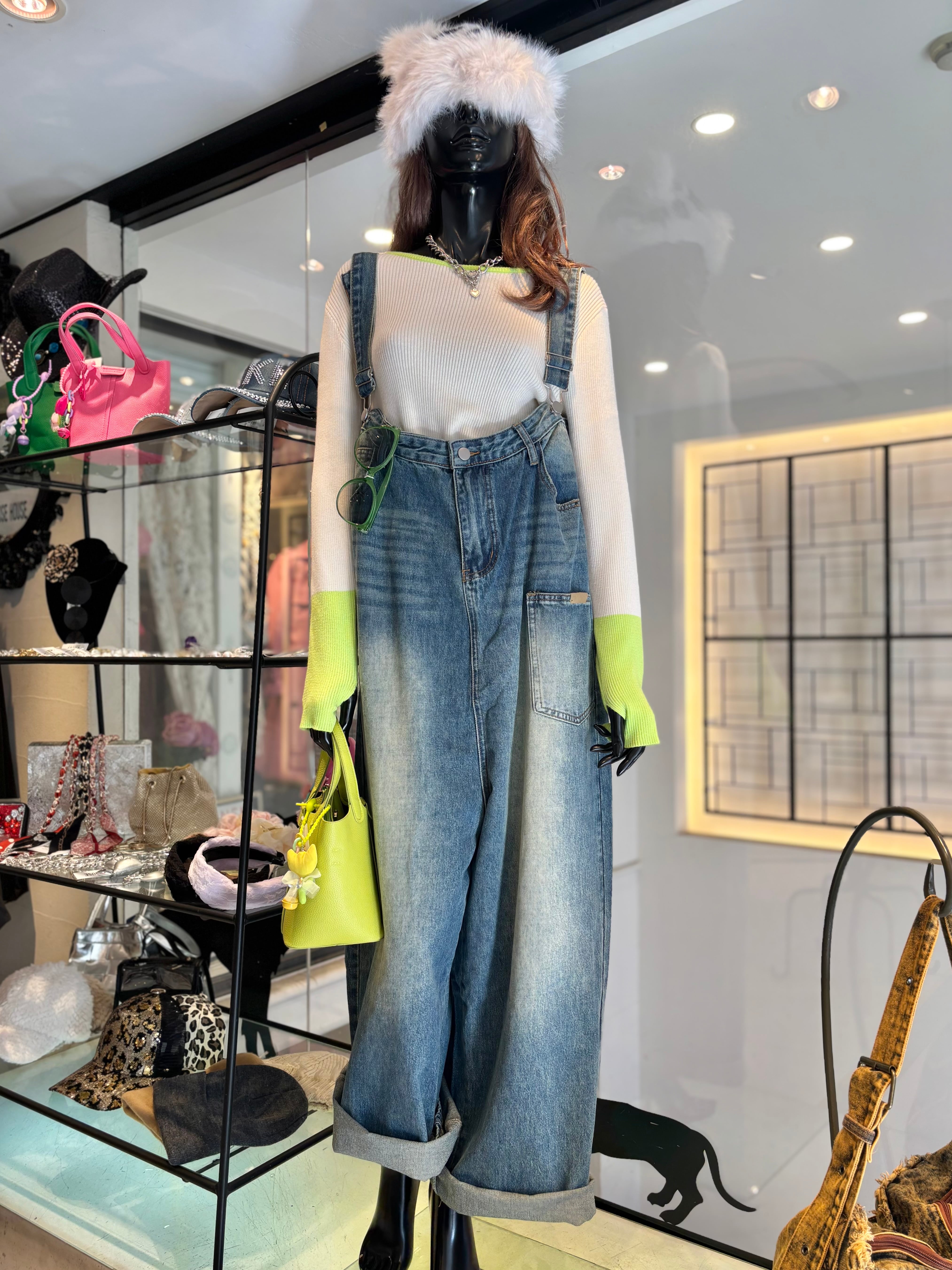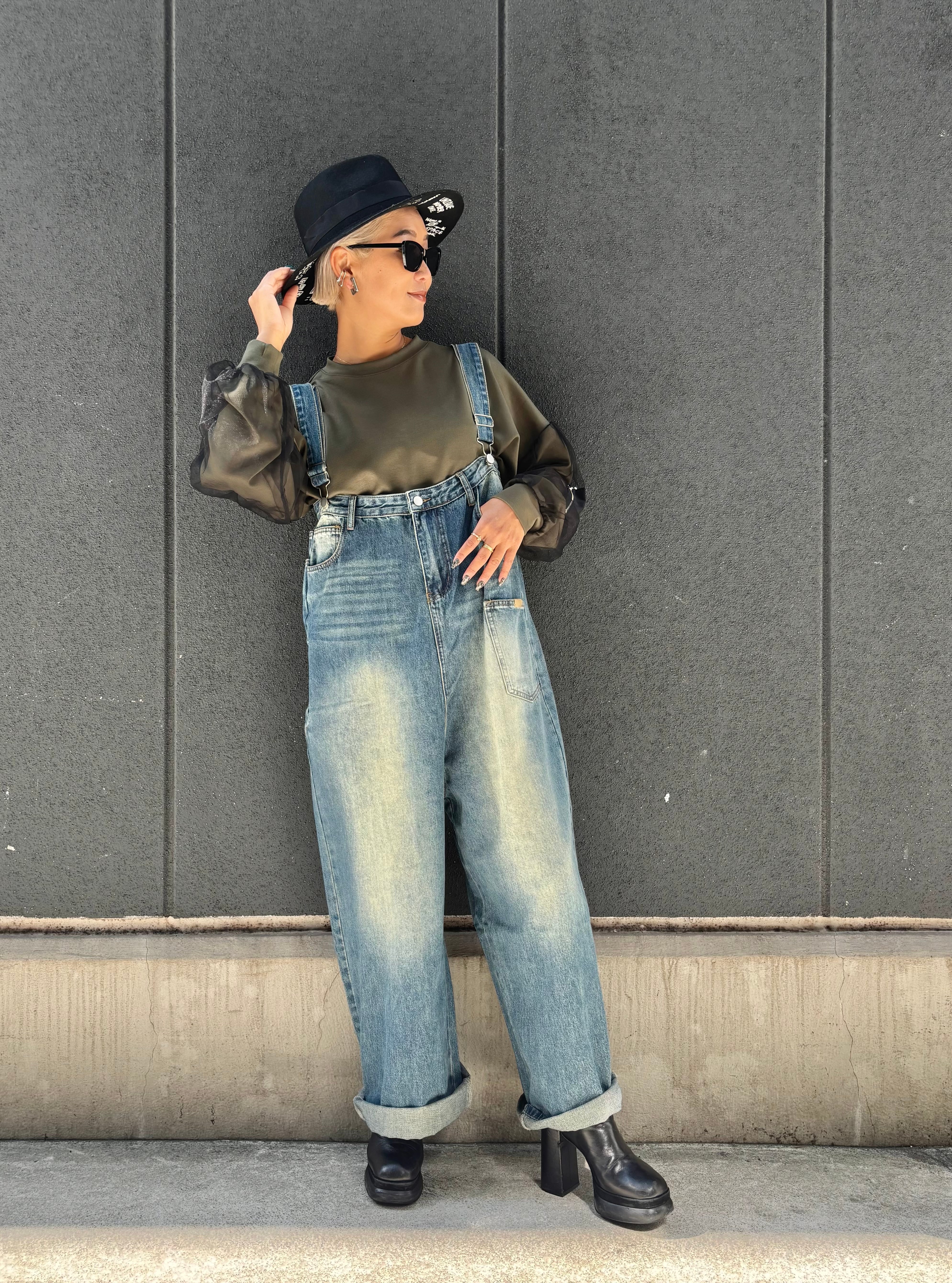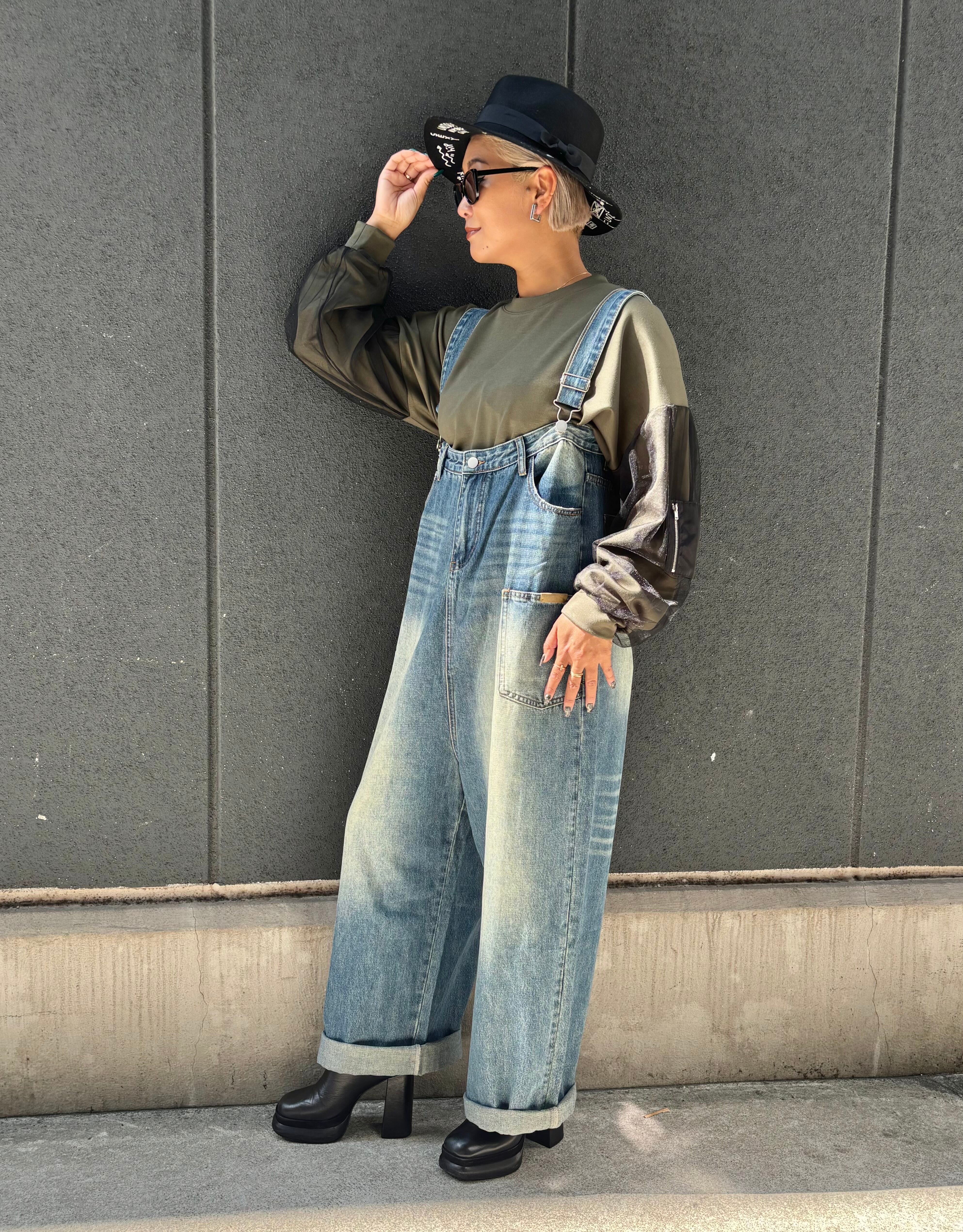 denim design wide salopette pants デニム パンツ ワイドパンツ サロペット 重ね着