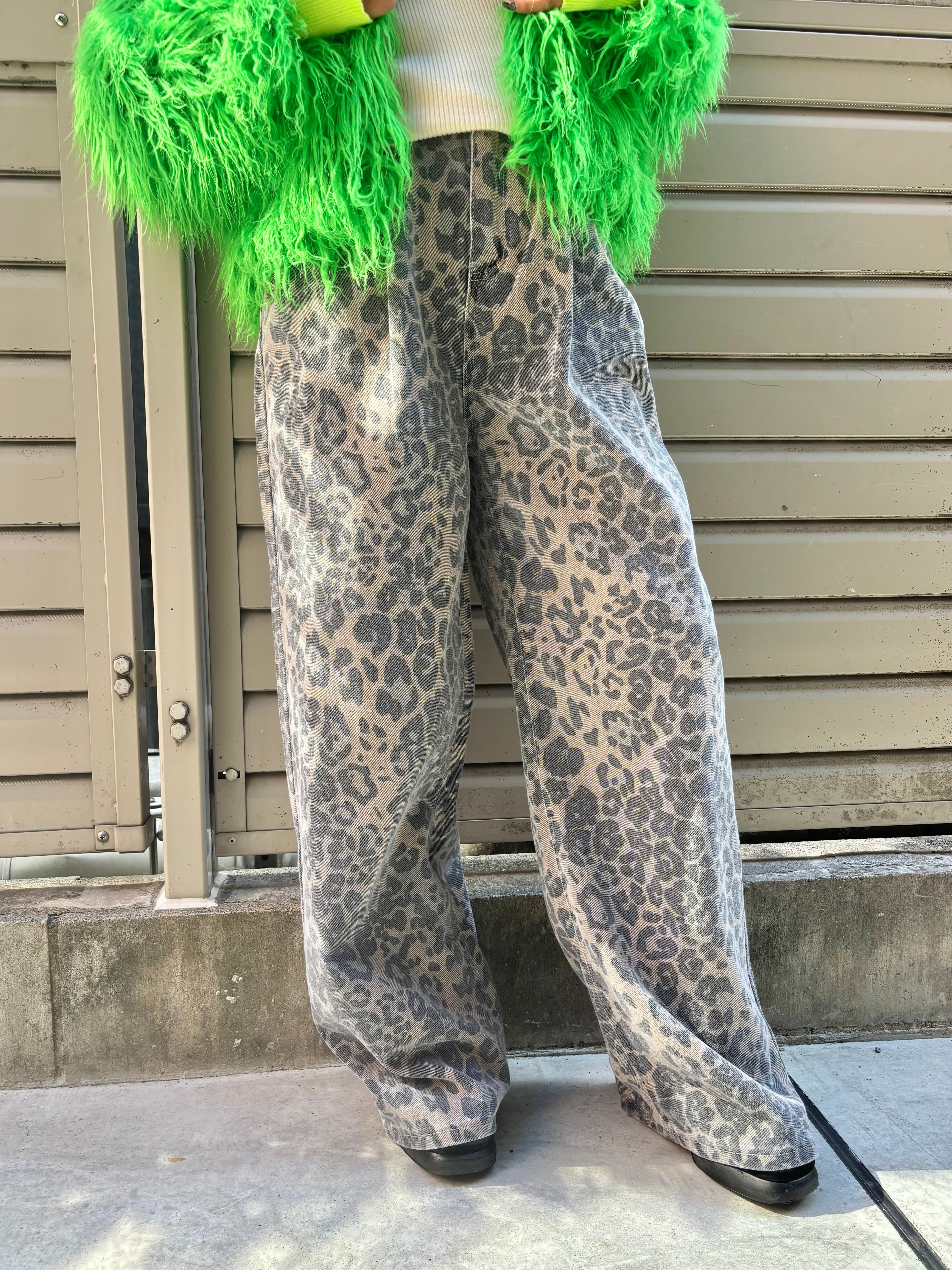 leopard denim wide pants パンツ デニム ワイドパンツ レオパード 豹柄 ヒョウ柄