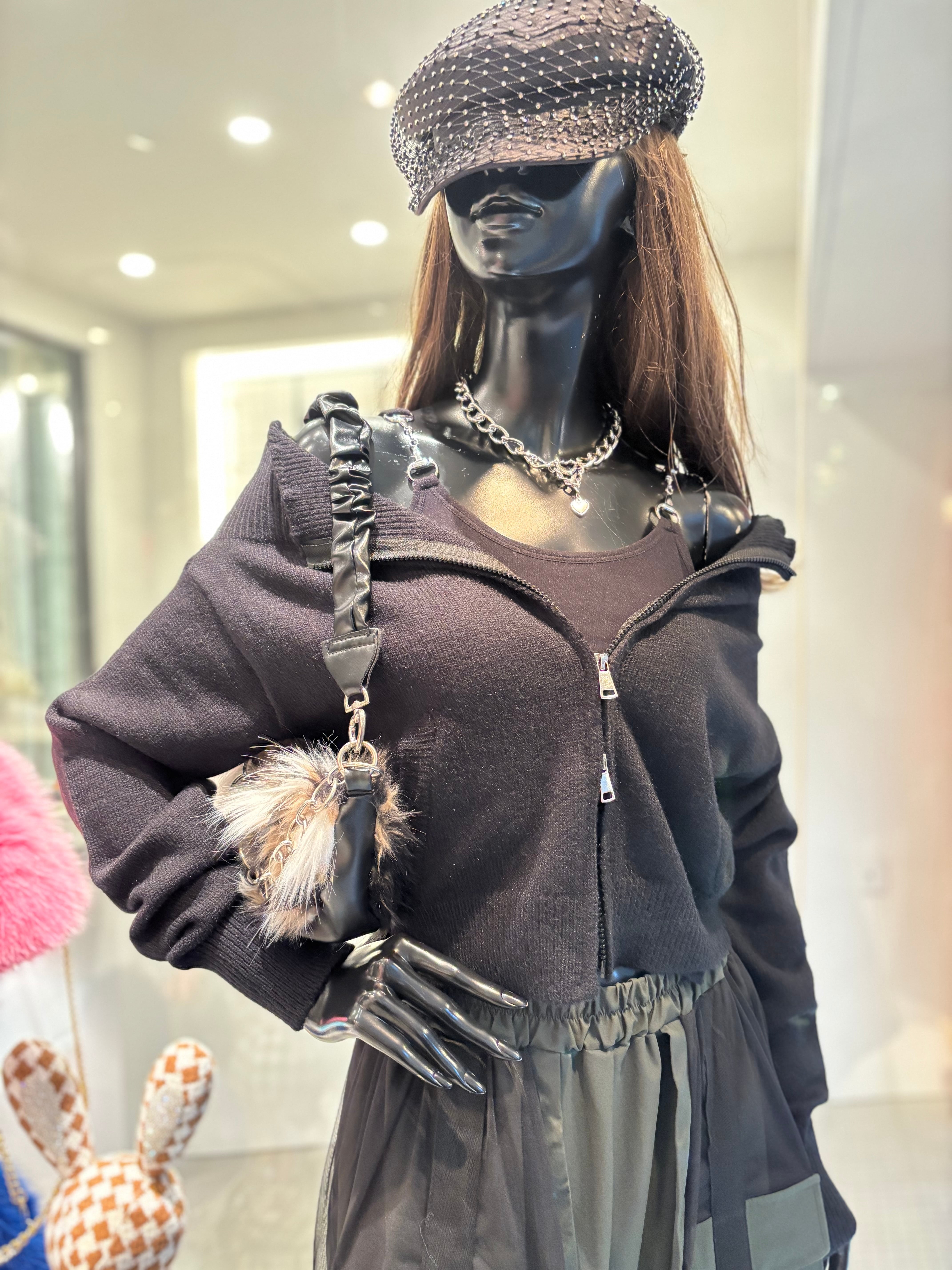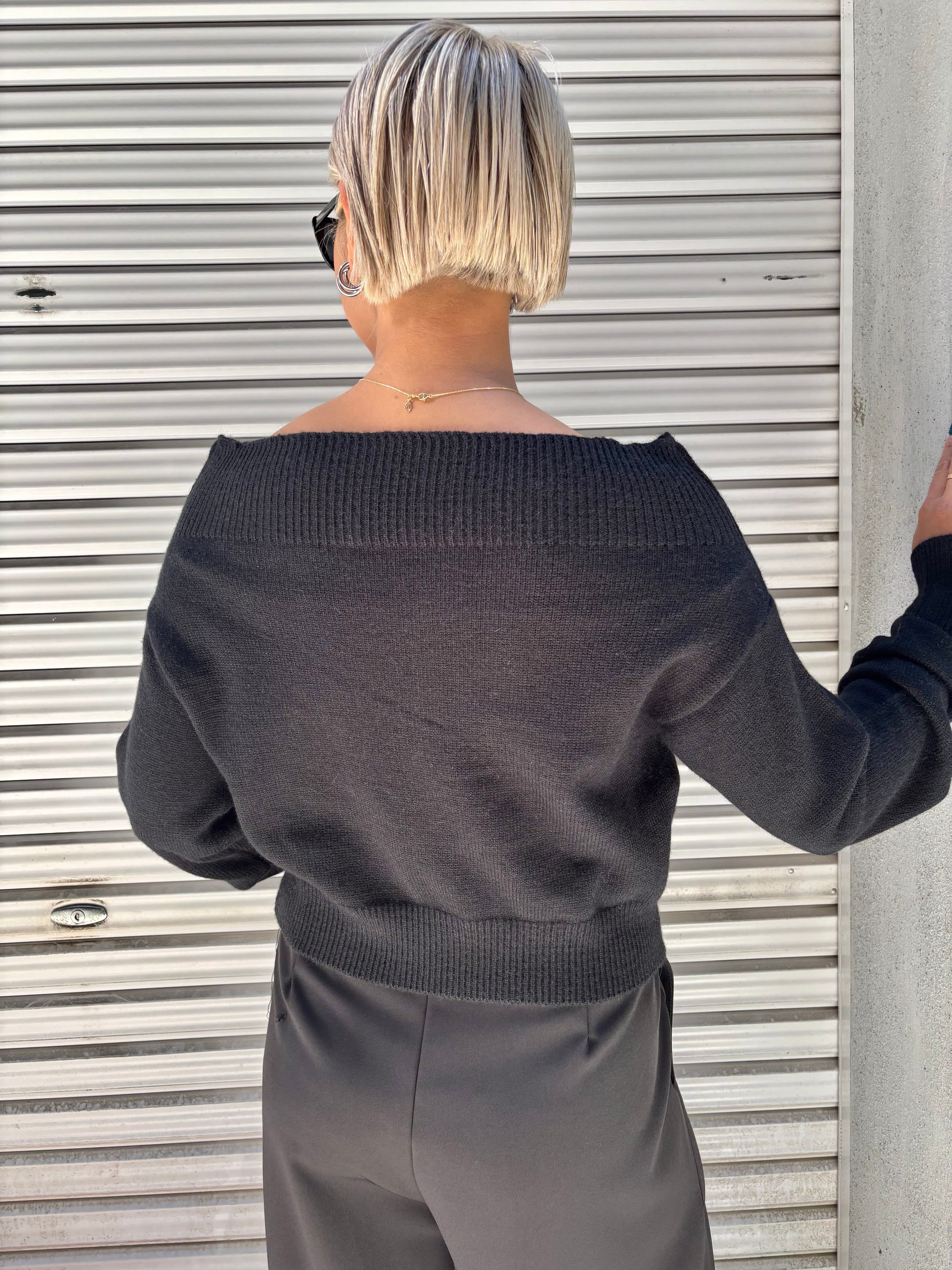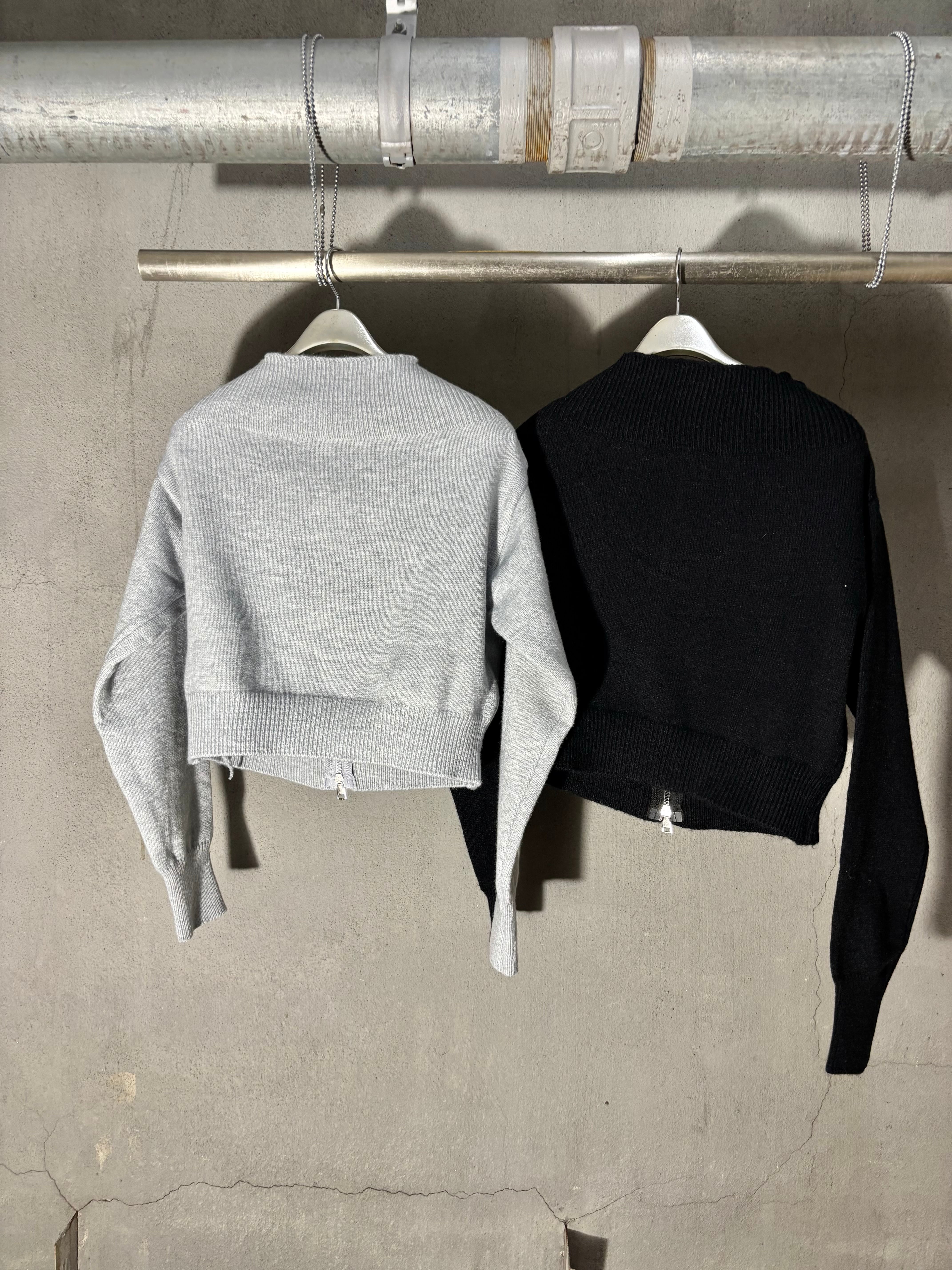 off shoulder design zip up knit tops トップス ニット オフショルダー ジップアップ