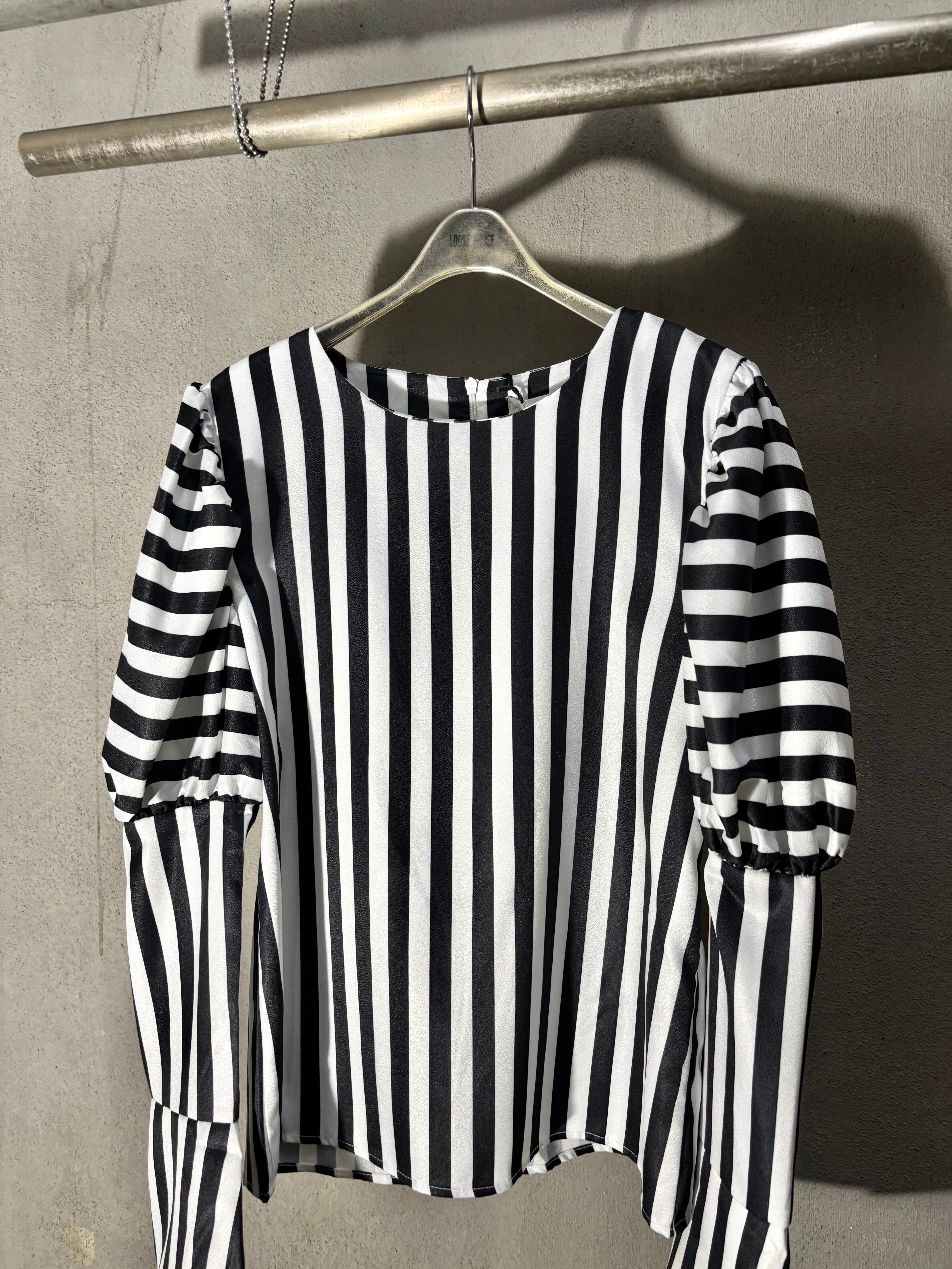 stripe design sleeve tops トップス デザイントップス ストライプ 白黒 バイカラー