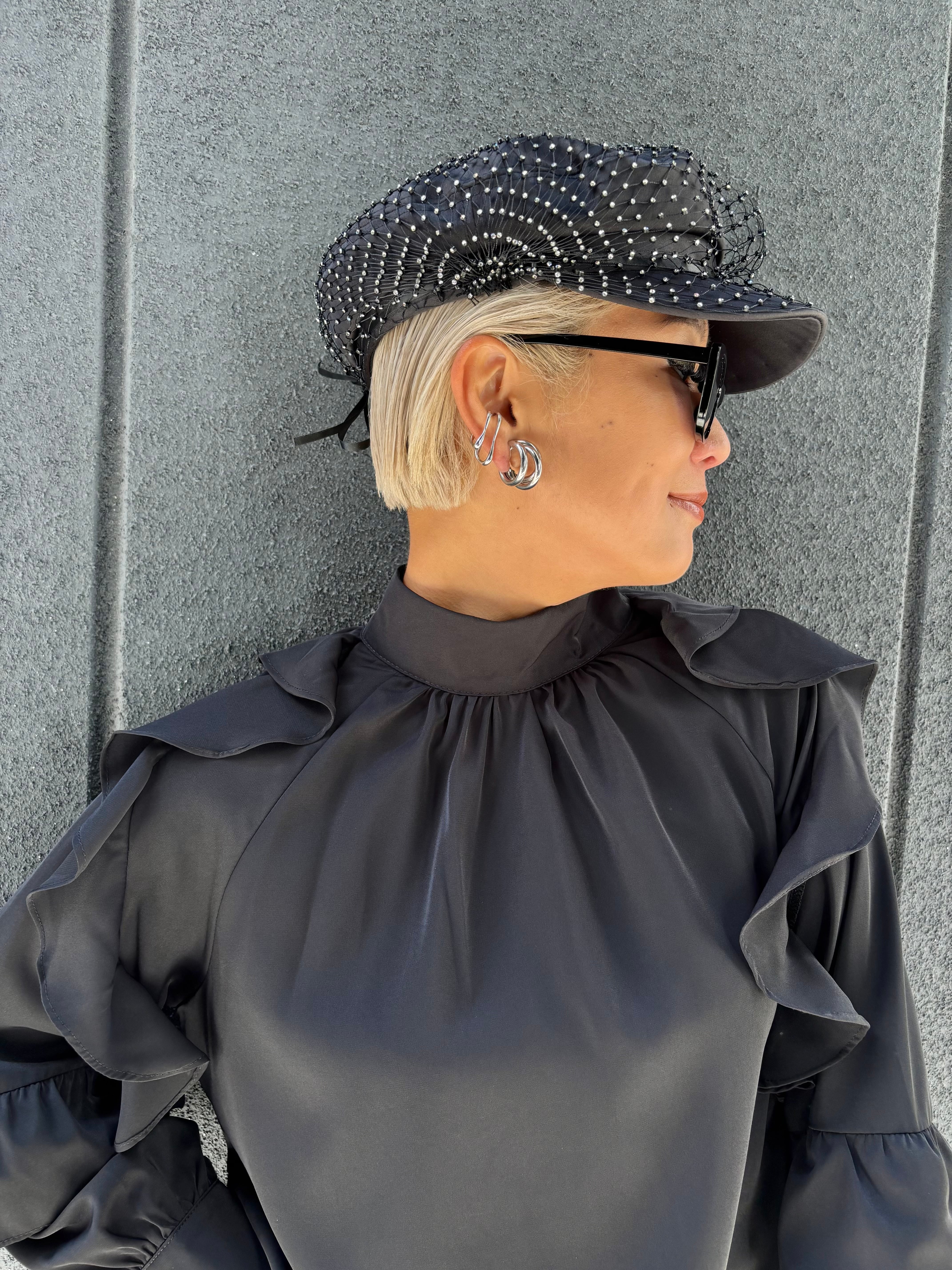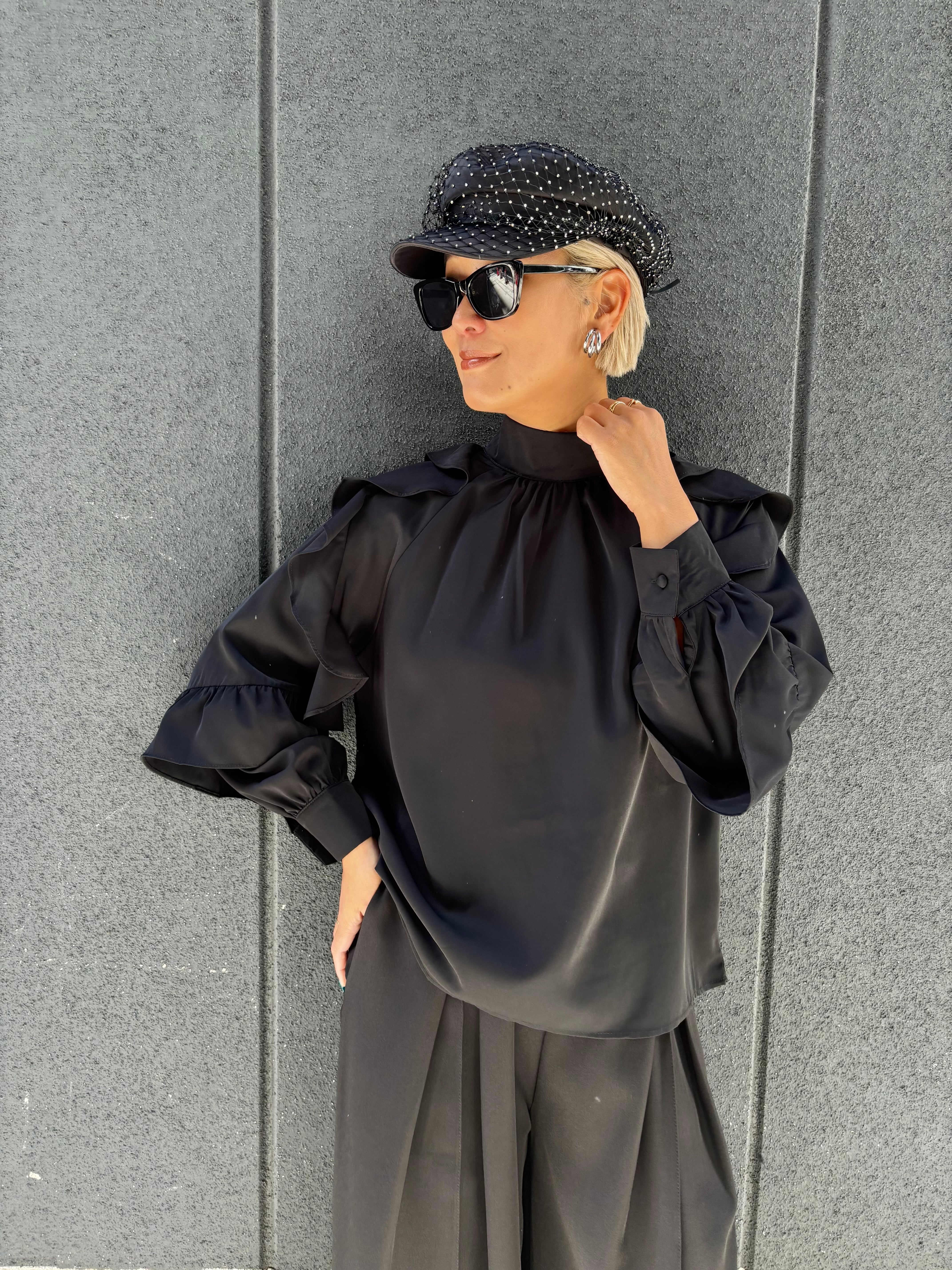 frill design sleeve high neck tops トップス フリル デザインスリーブ ブラック 黒