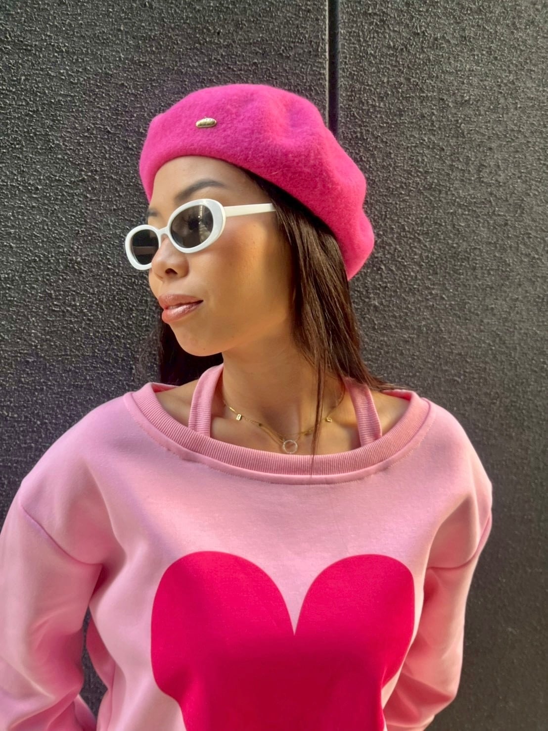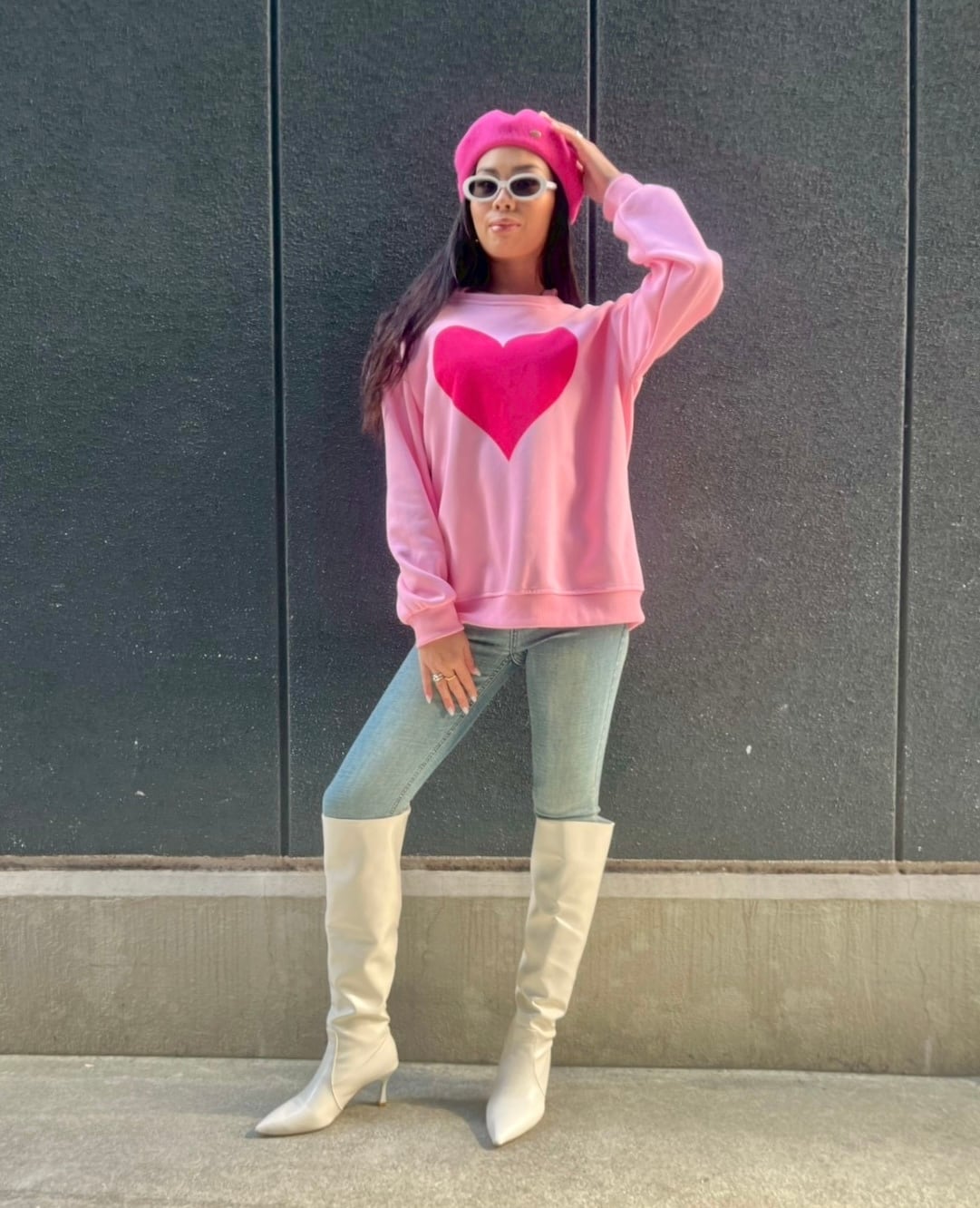 存在感抜群のハートプリントが可愛らしい、デザインネック&ピンクトレーナーです♡