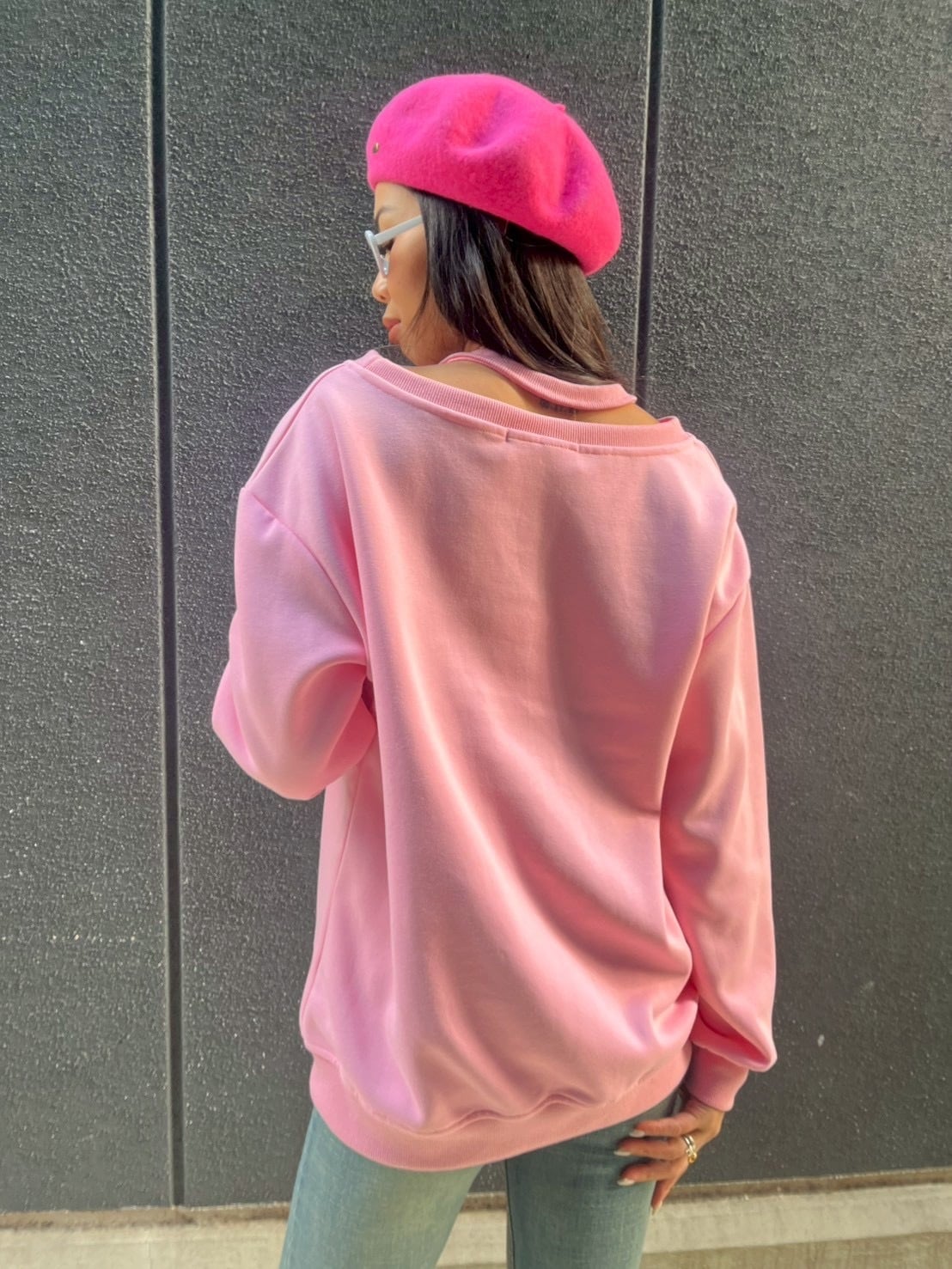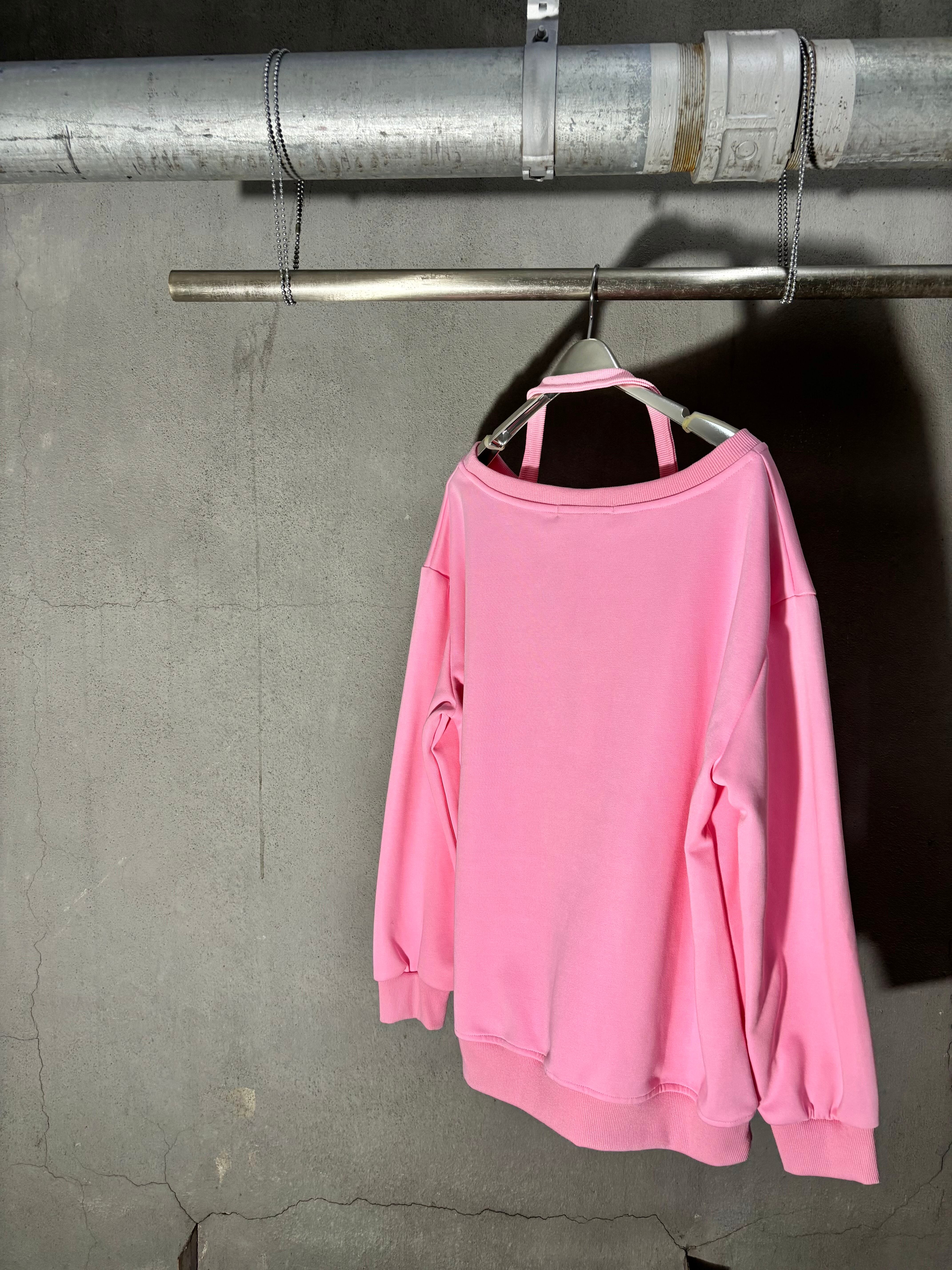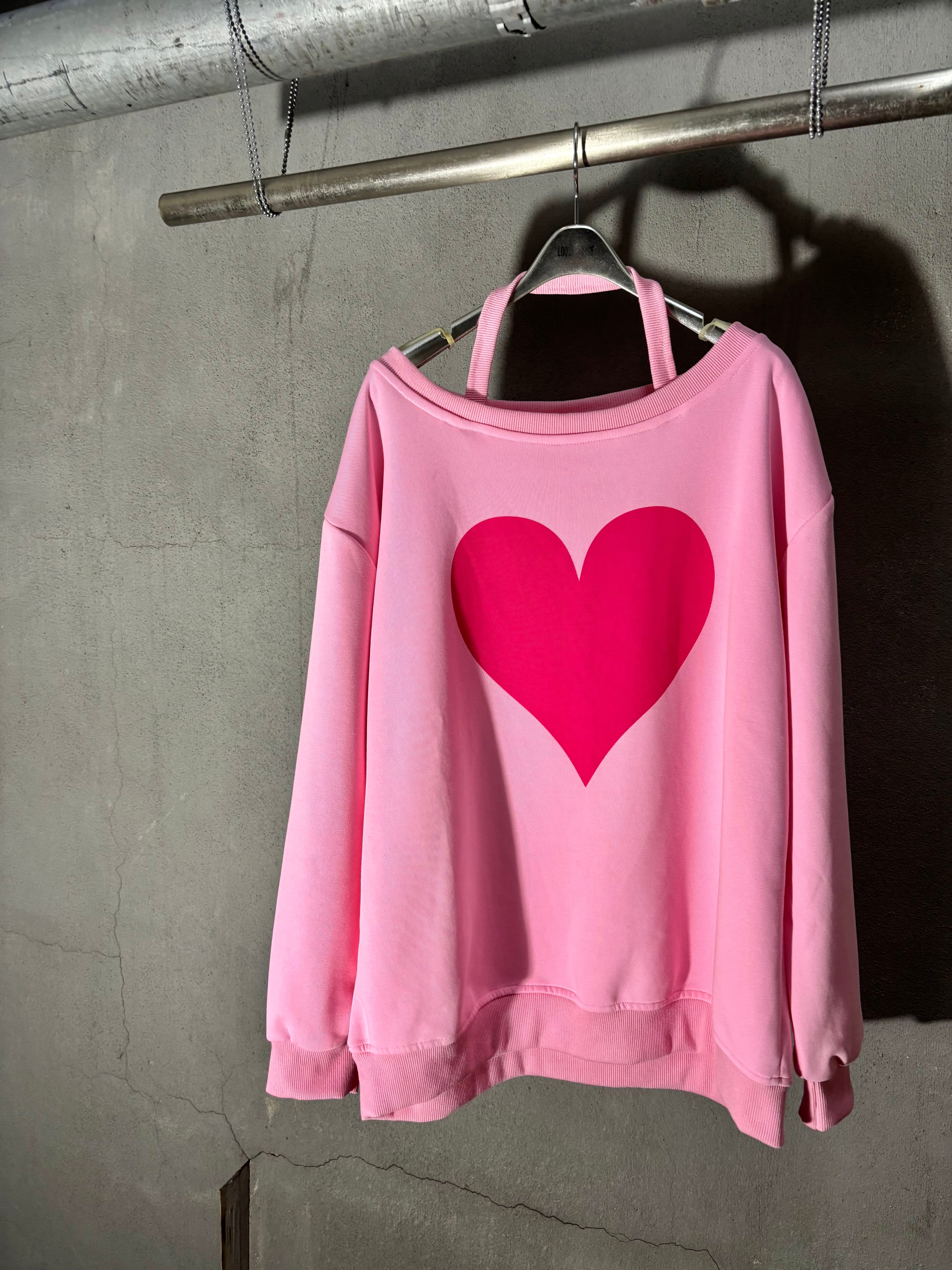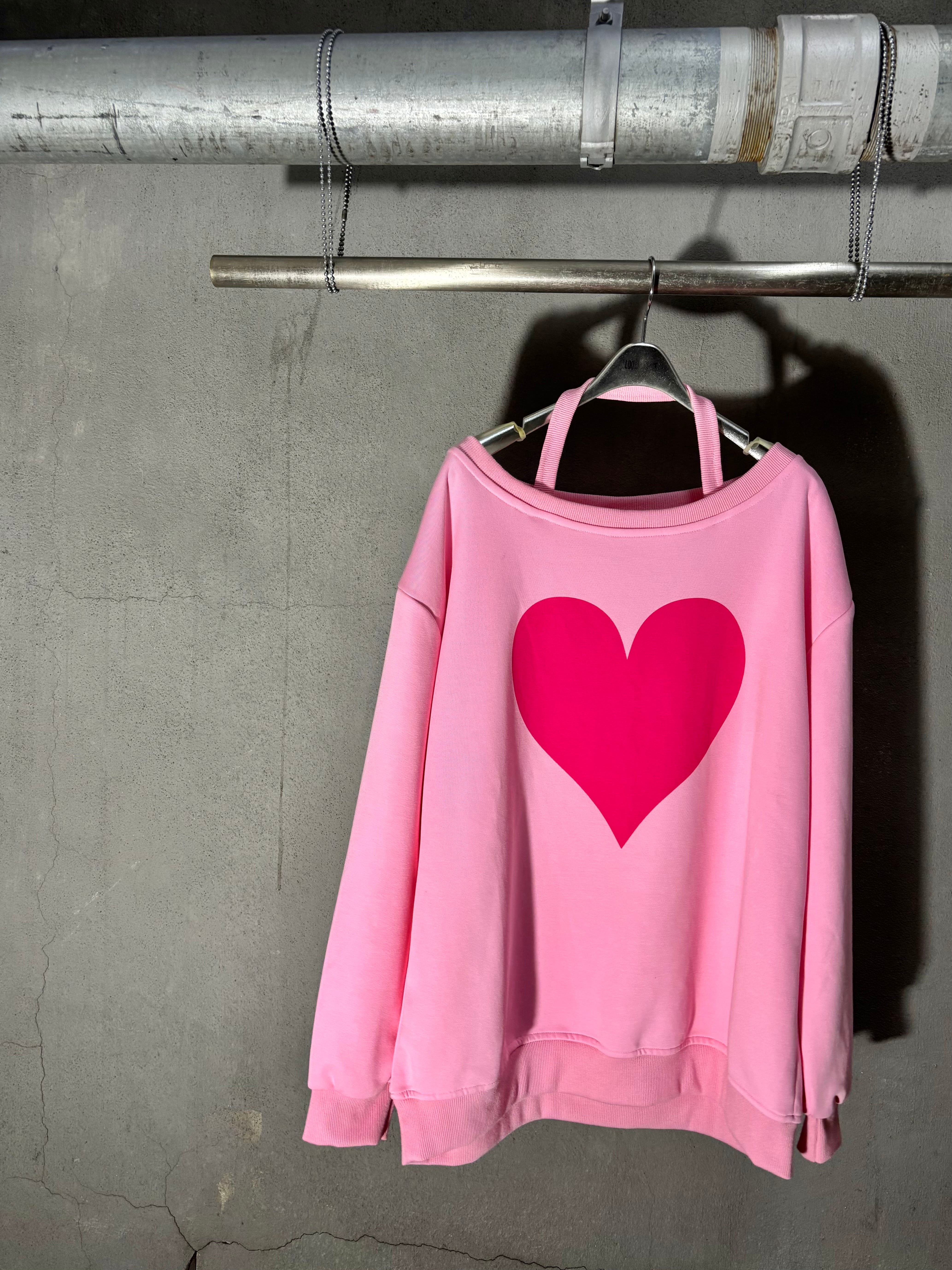 design neck & heart pink trainer トップス トレーナー ハート ピンク オフショル