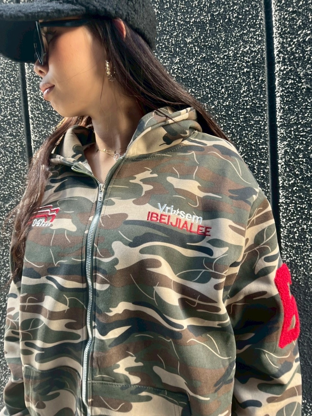 camouflage print zip up hoodie jacket パーカー カモフラ 迷彩 ジップアップ フーディー フード カジュアル