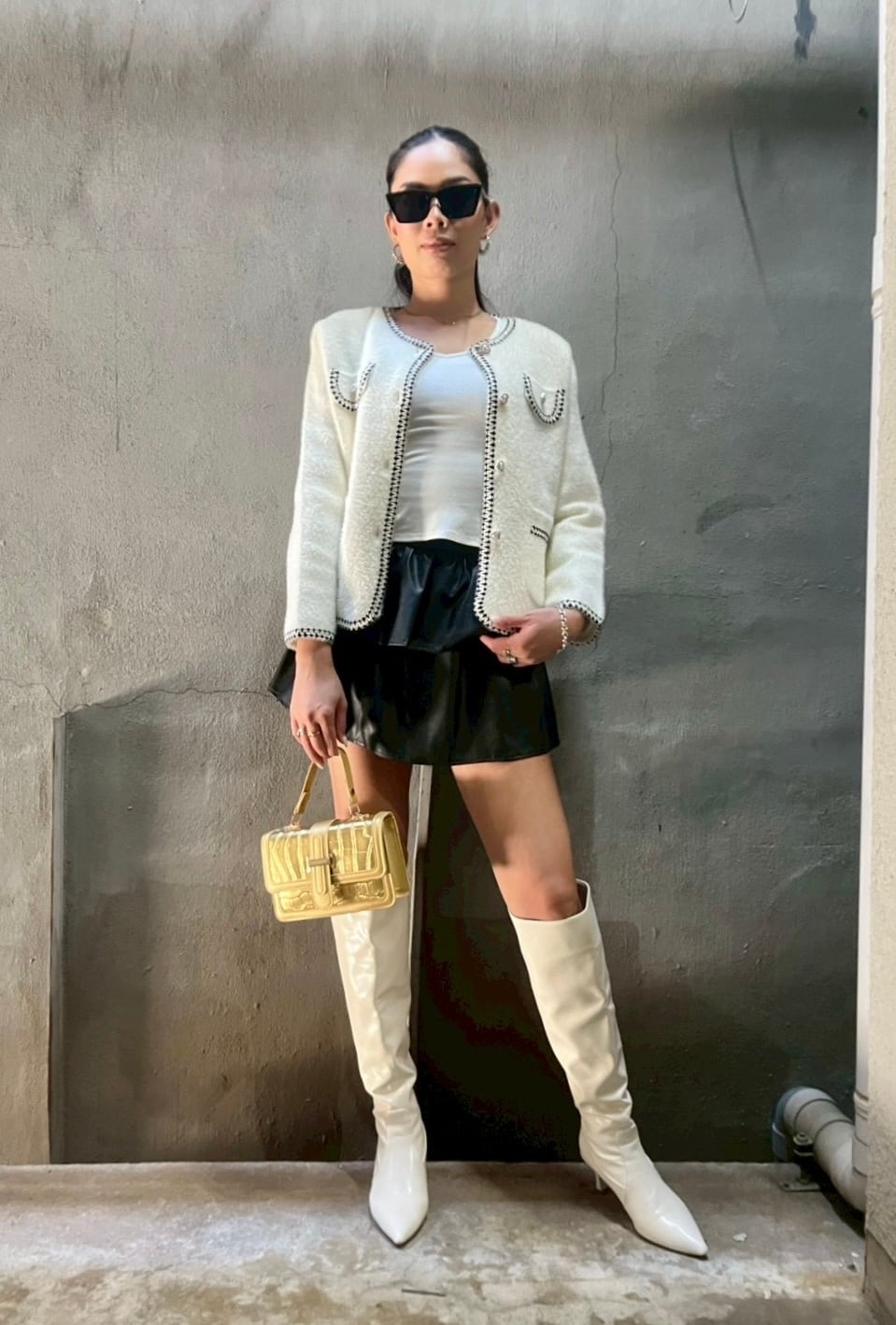 パールが付いたハート型のボタンがキュートさをプラスし、シンプルなコーディネートでも存在感を引き立てます♡