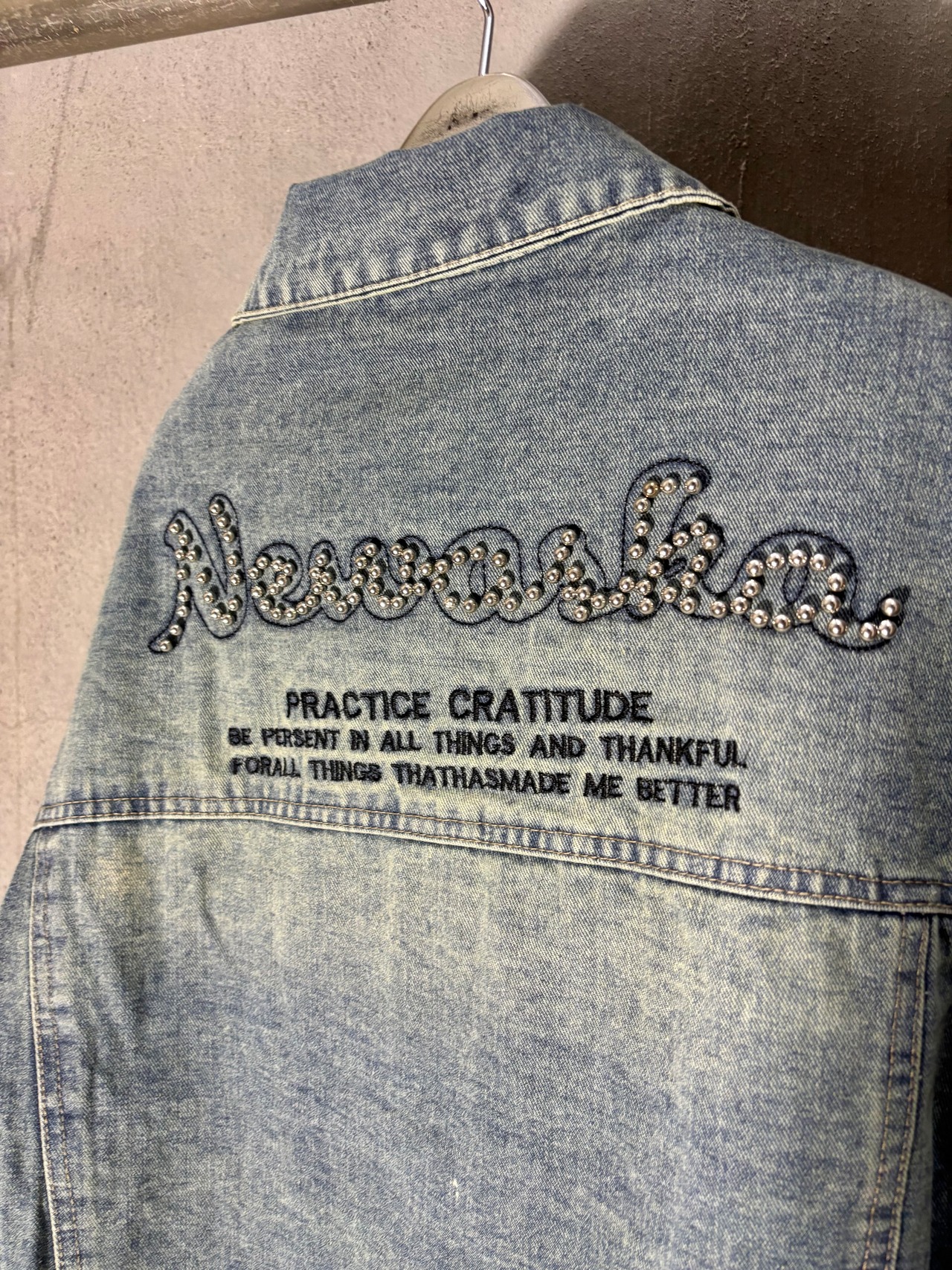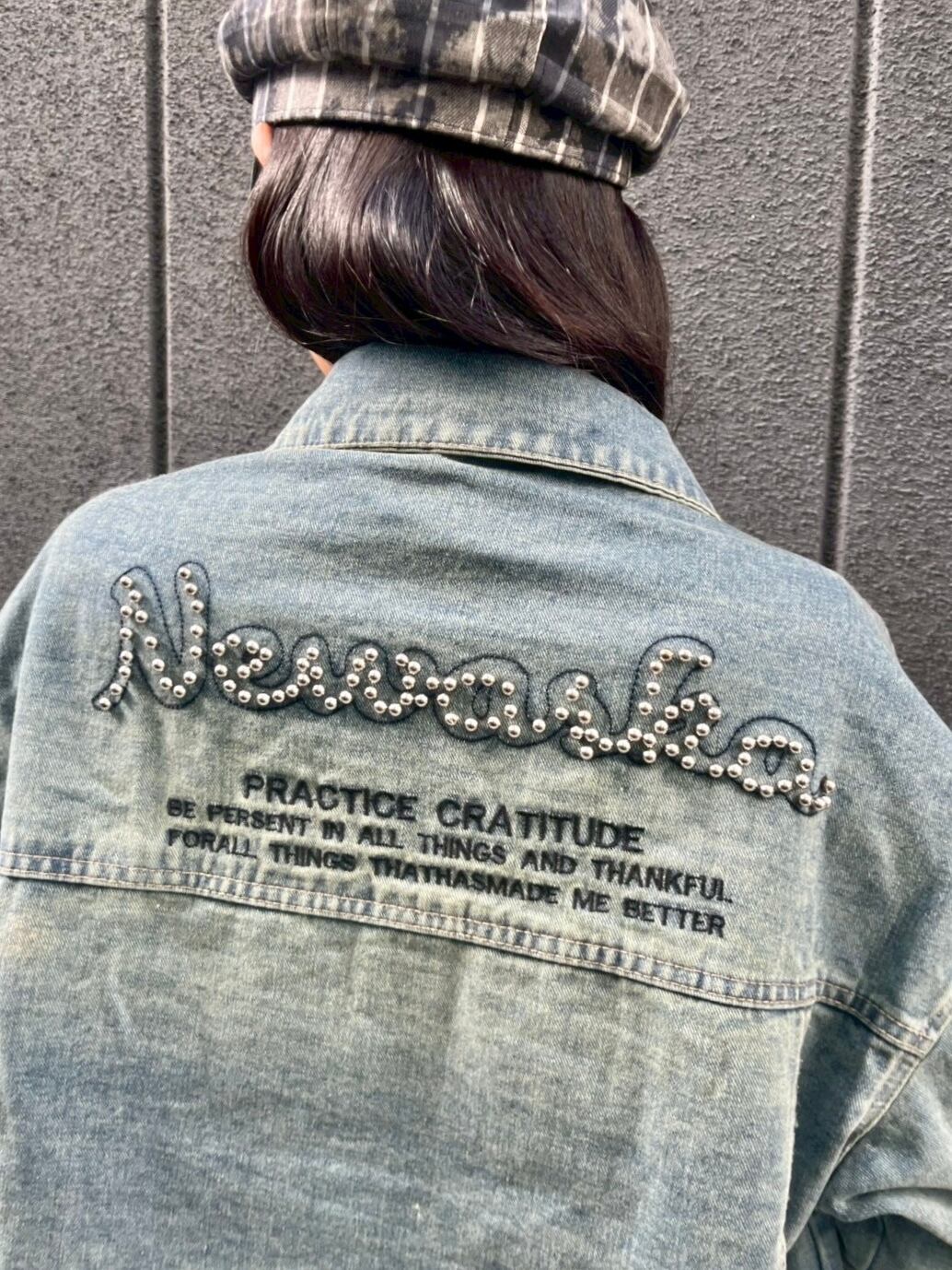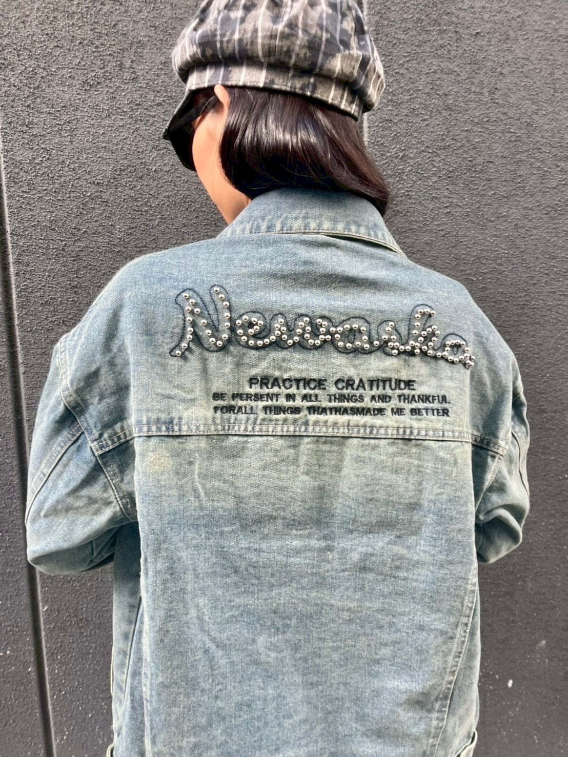 silver ball× embroidery back design denim jacket ジャケット デニム オーバーサイズ 刺繍 シルバー パーツ カジュアル