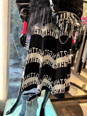 スタイリッシュな英字柄が印象的で、秋冬シーズンのコーディネートに映えるアイテムです。