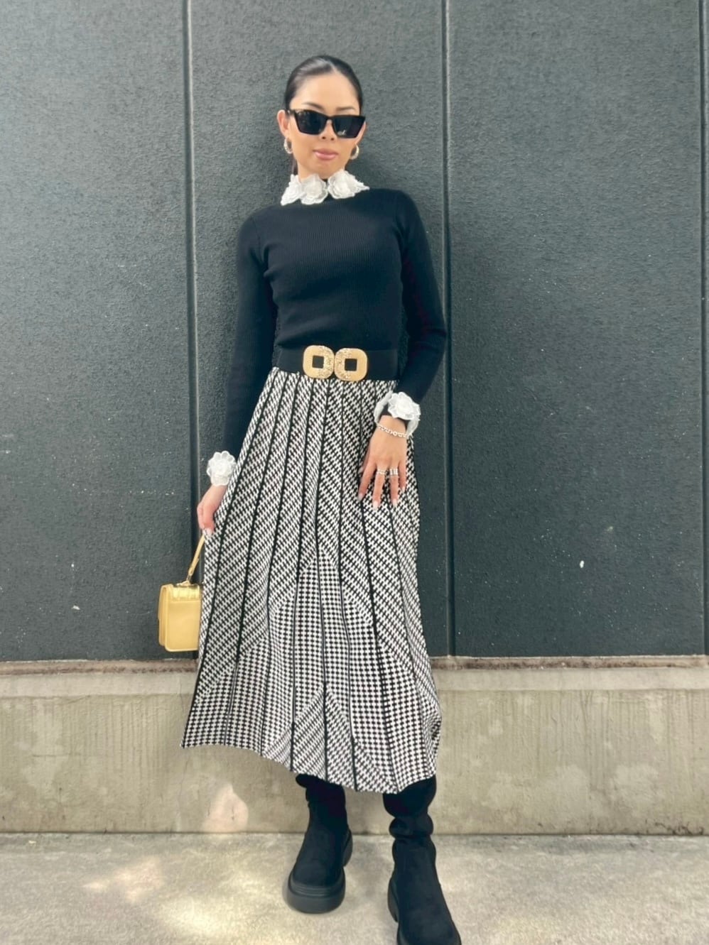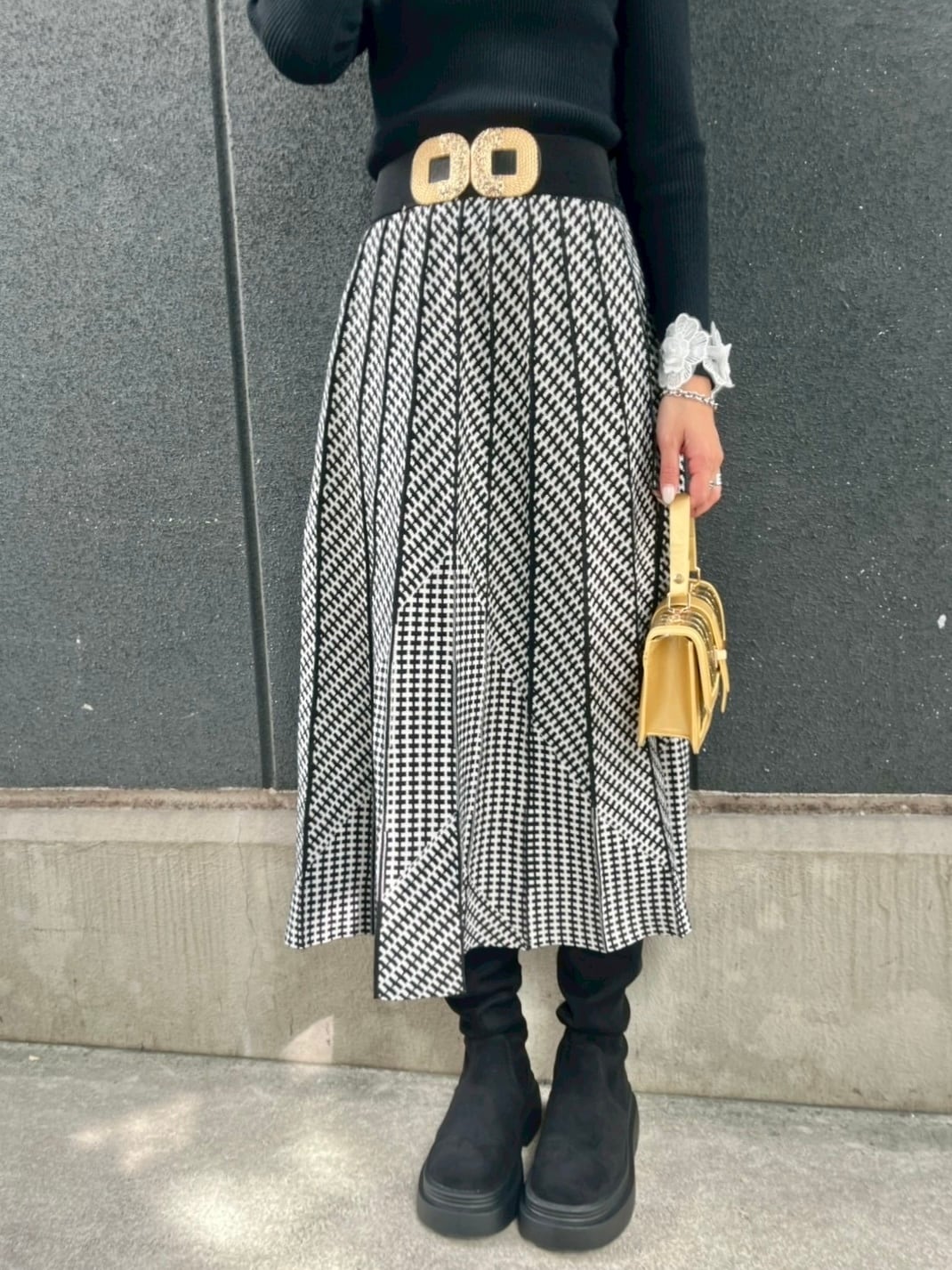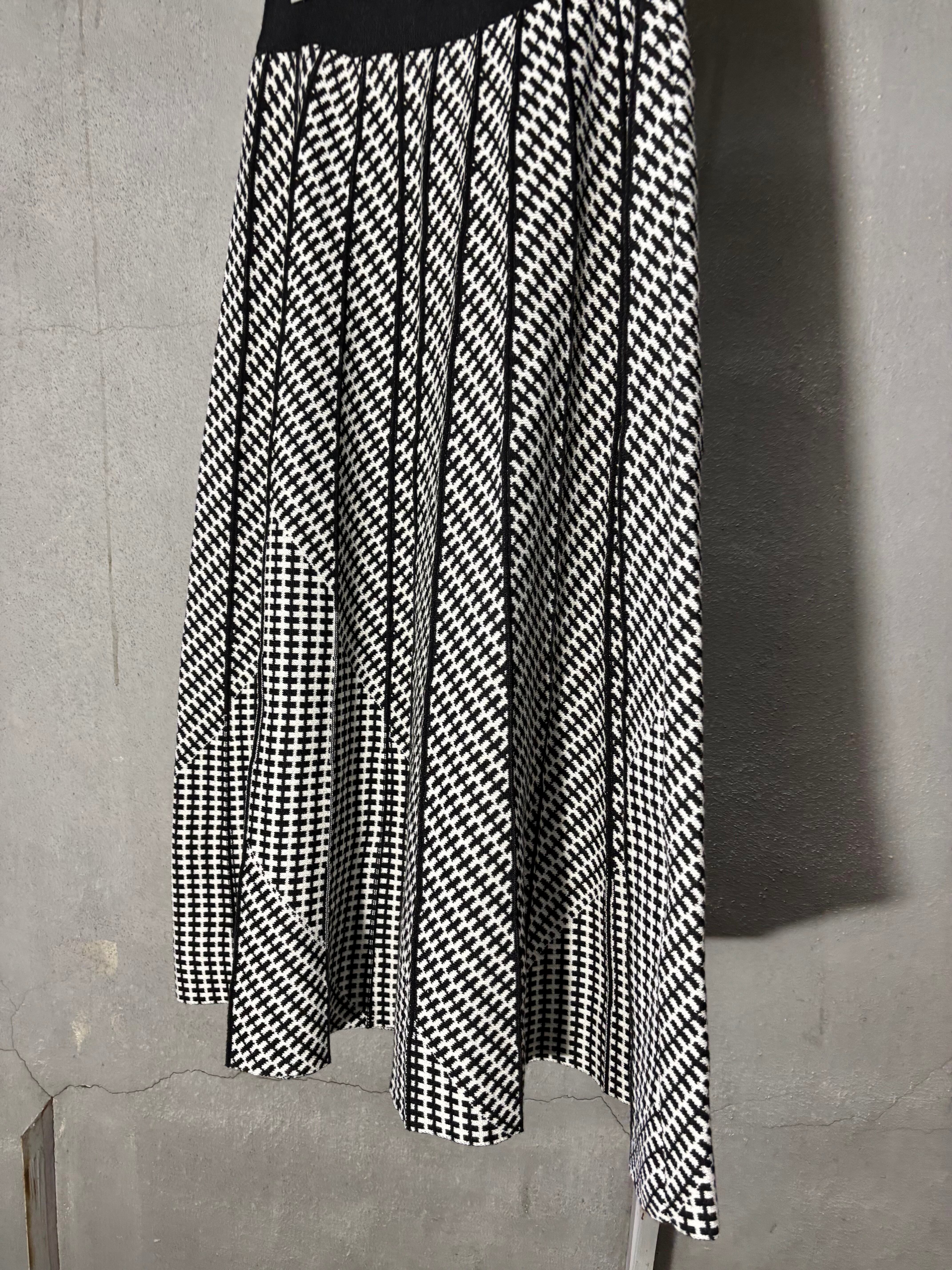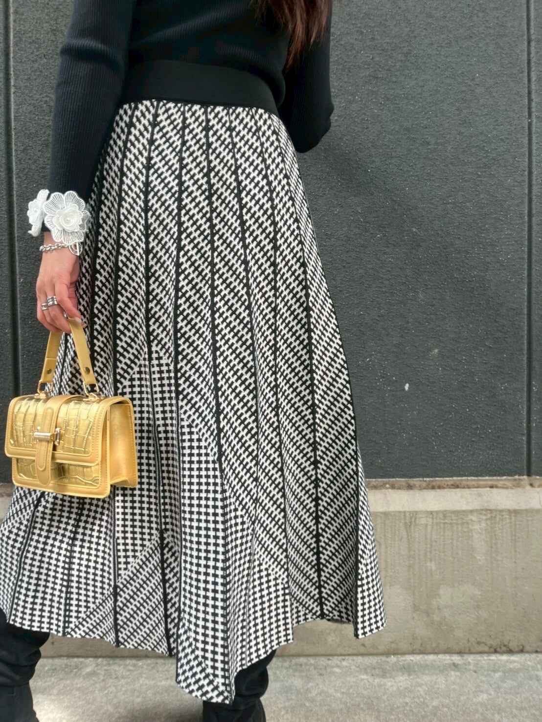 pattern check pleats jacquard knit long skirt スカート ロングスカート ニット ジャガード チェック プリーツ
