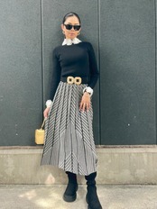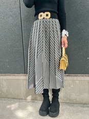 シンプルながらも上品な印象を与える、切替チェック柄のロングスカートが登場しました♡