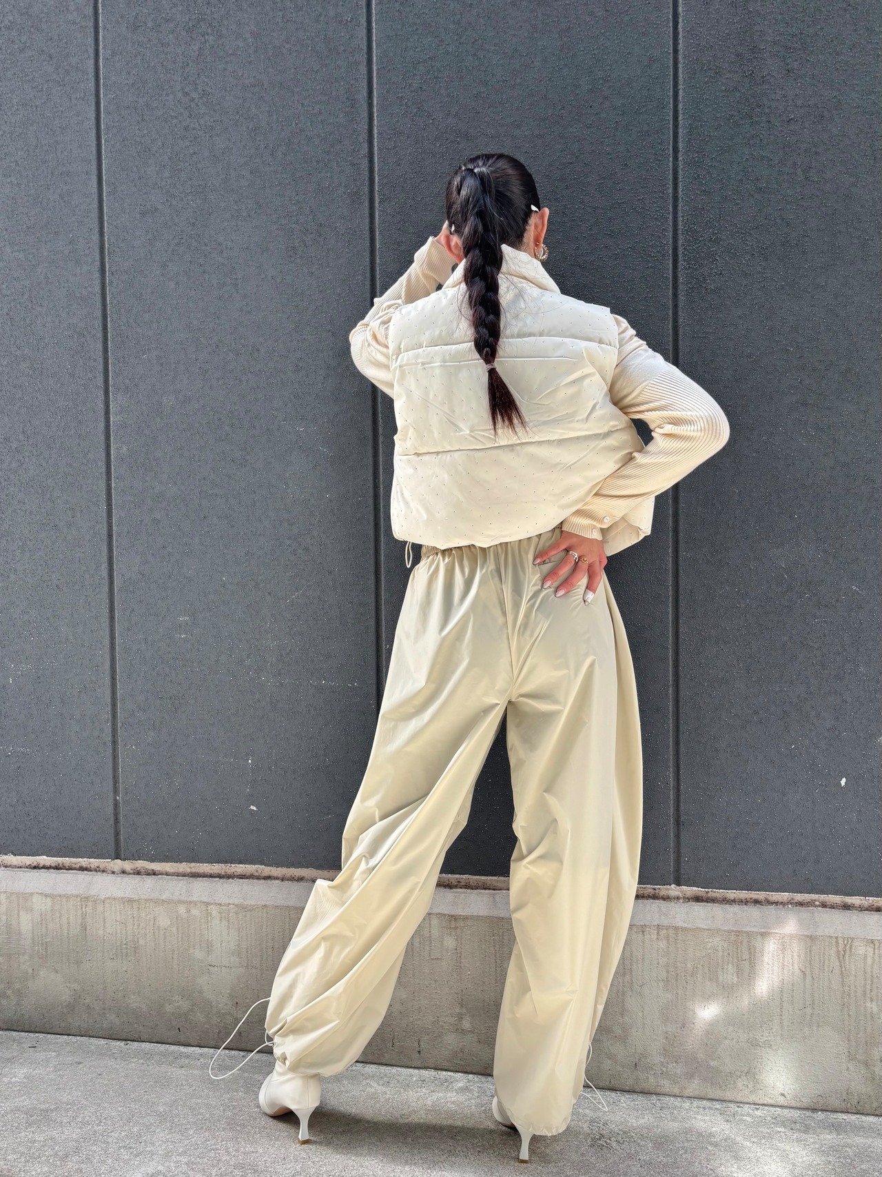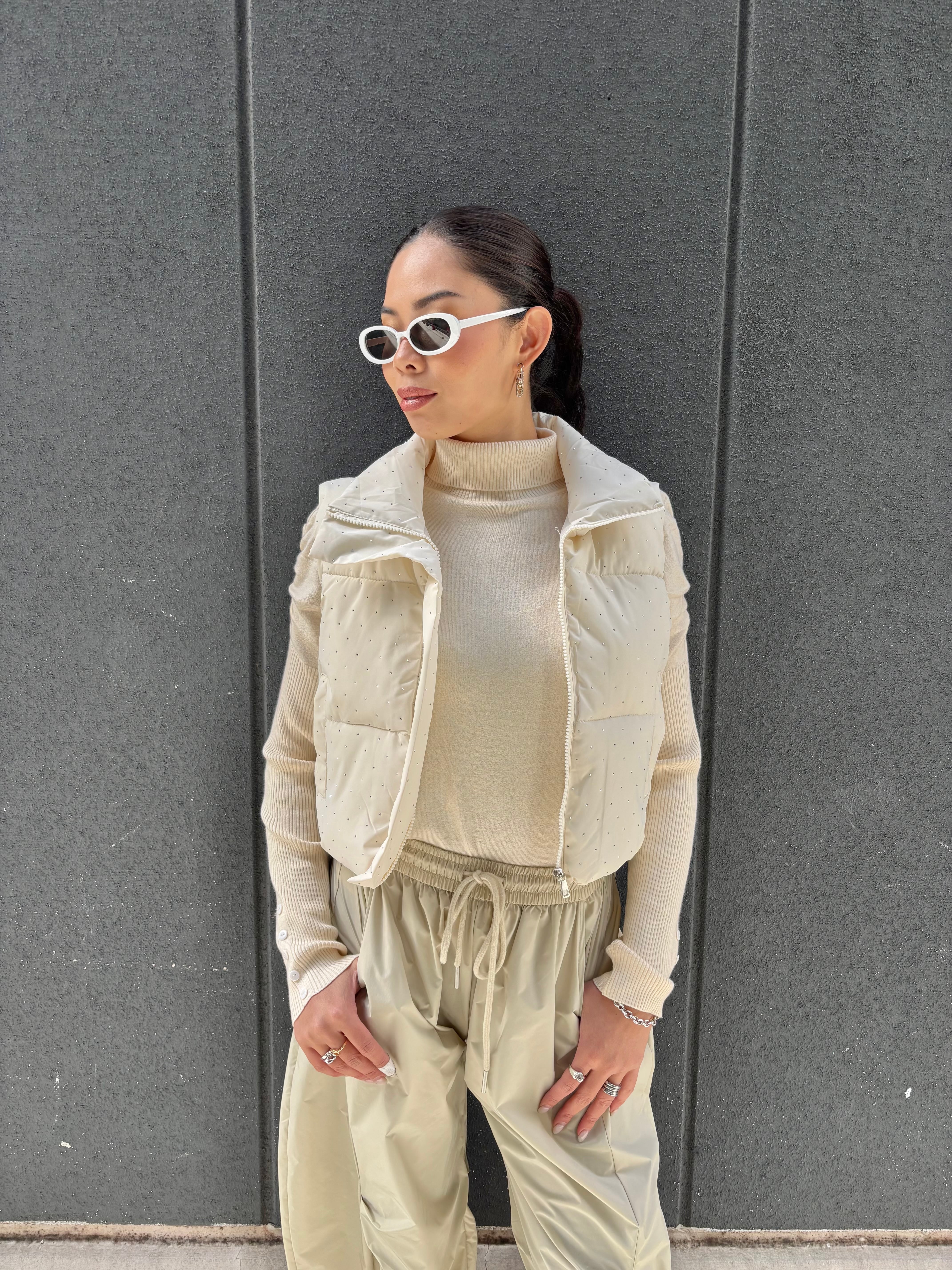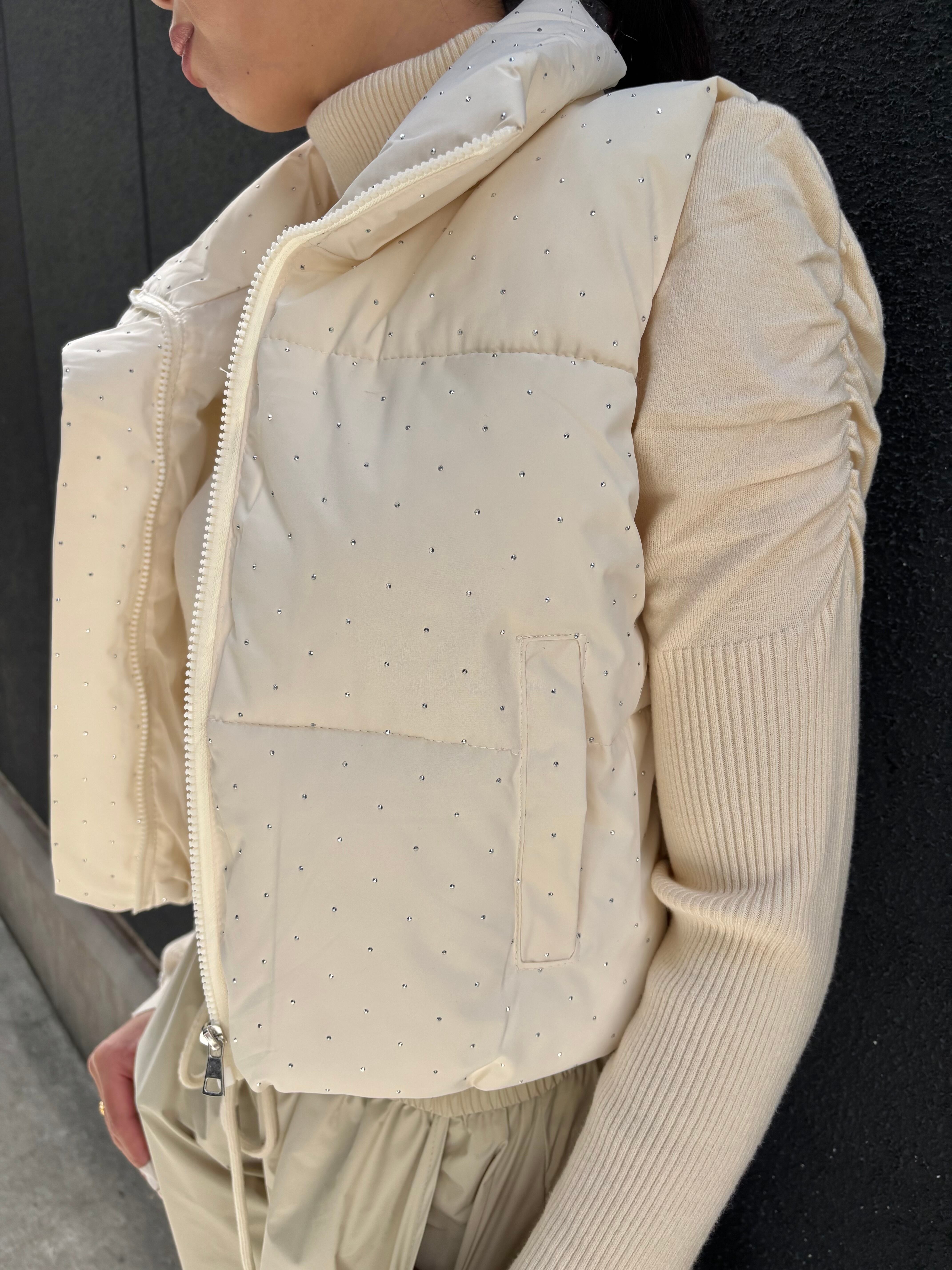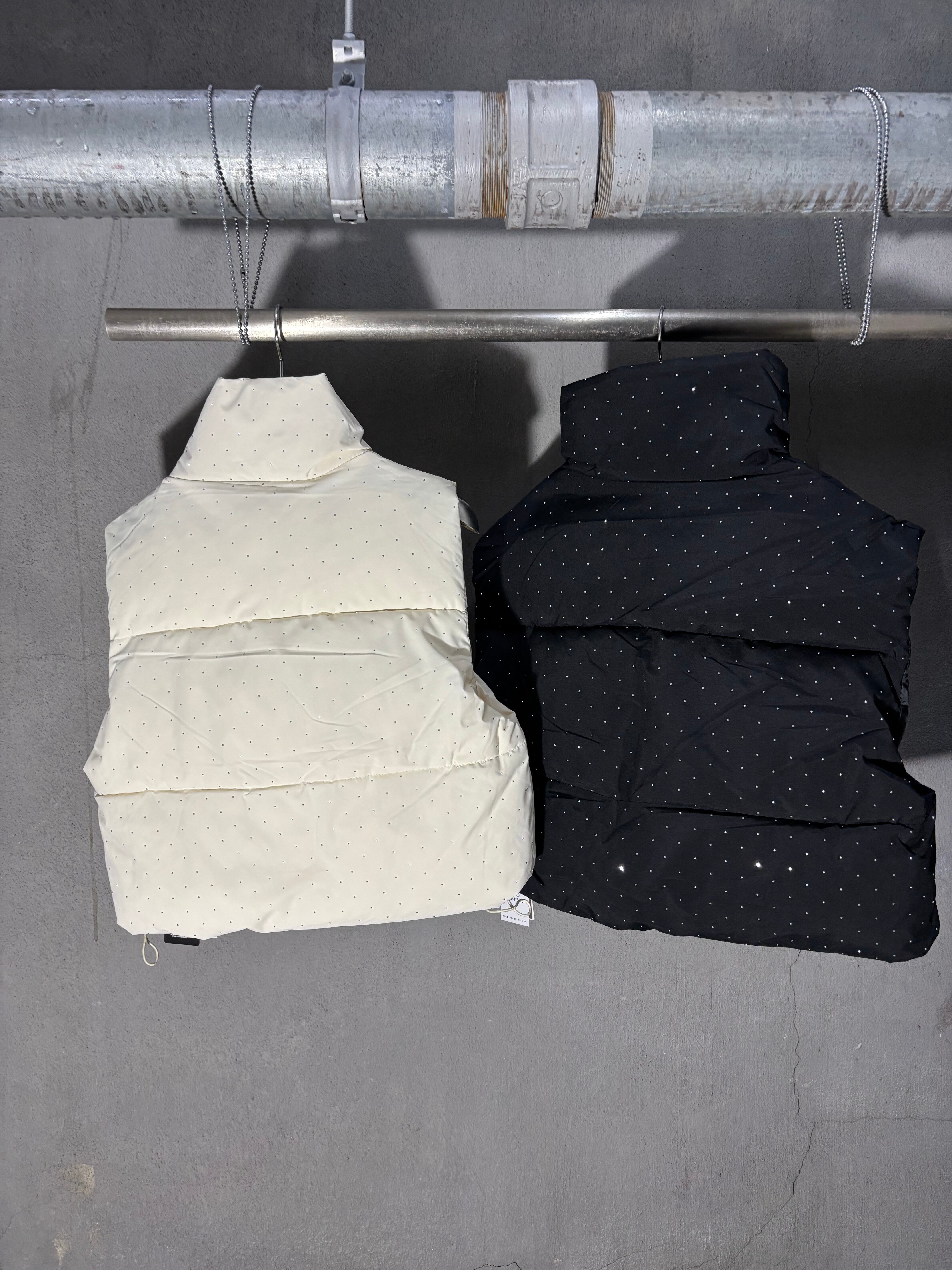 mini stone padded vest ベスト 中綿 シャイニー ハピス キラキラ 重ね着