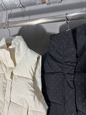 スタンドネックと極小粒のストーンが散りばめられたデザインで、キラキラとした印象を与えます。