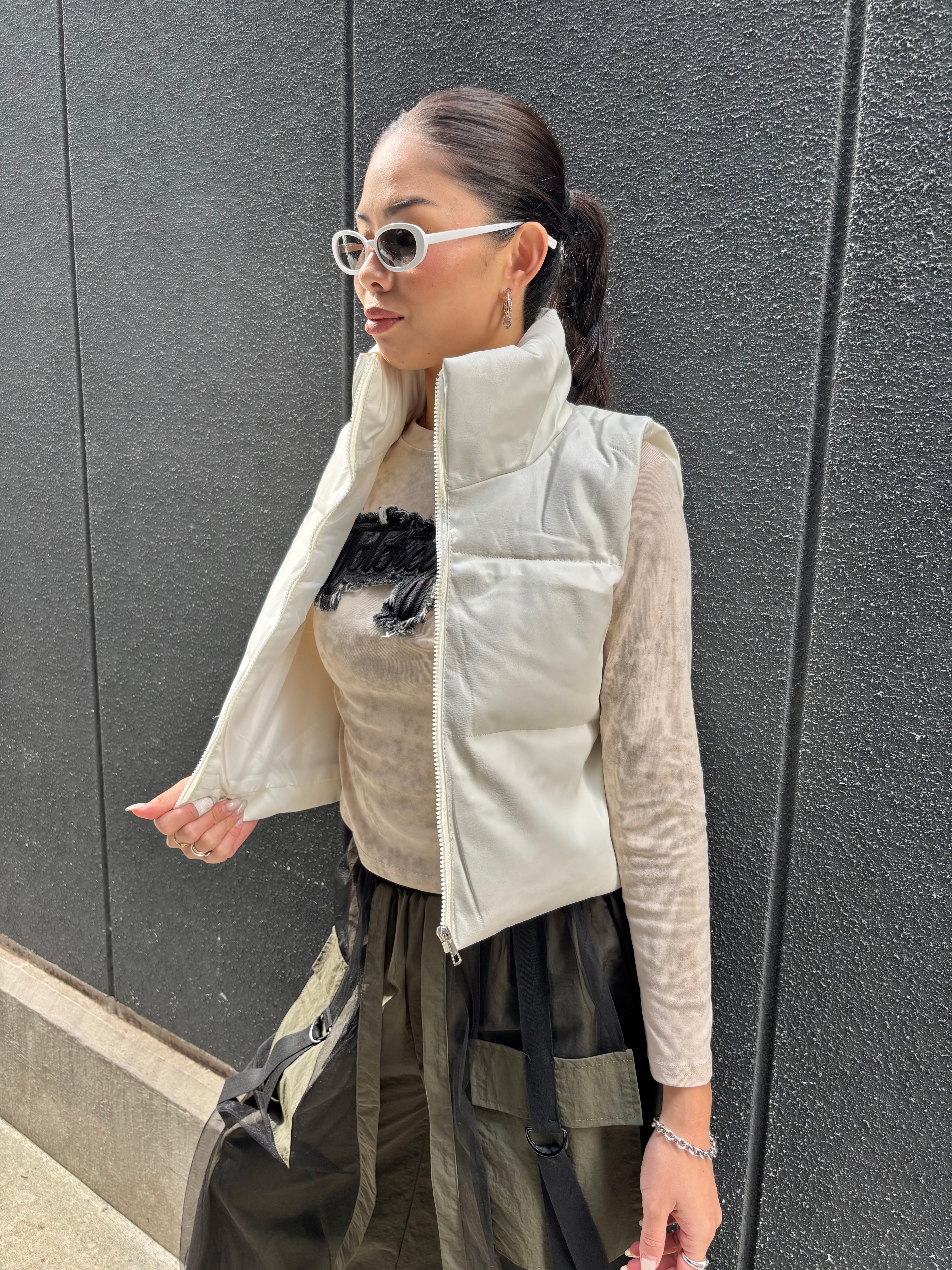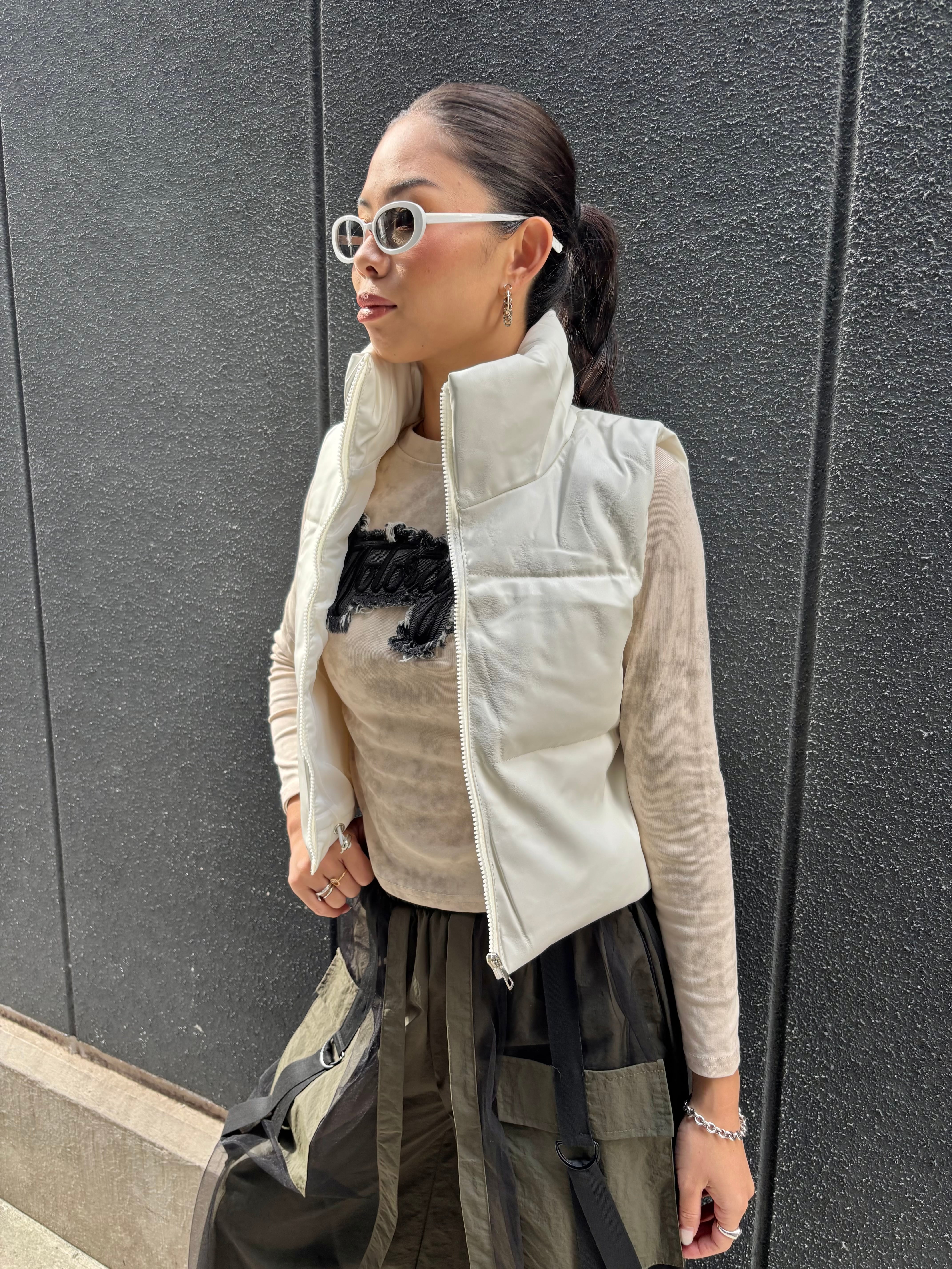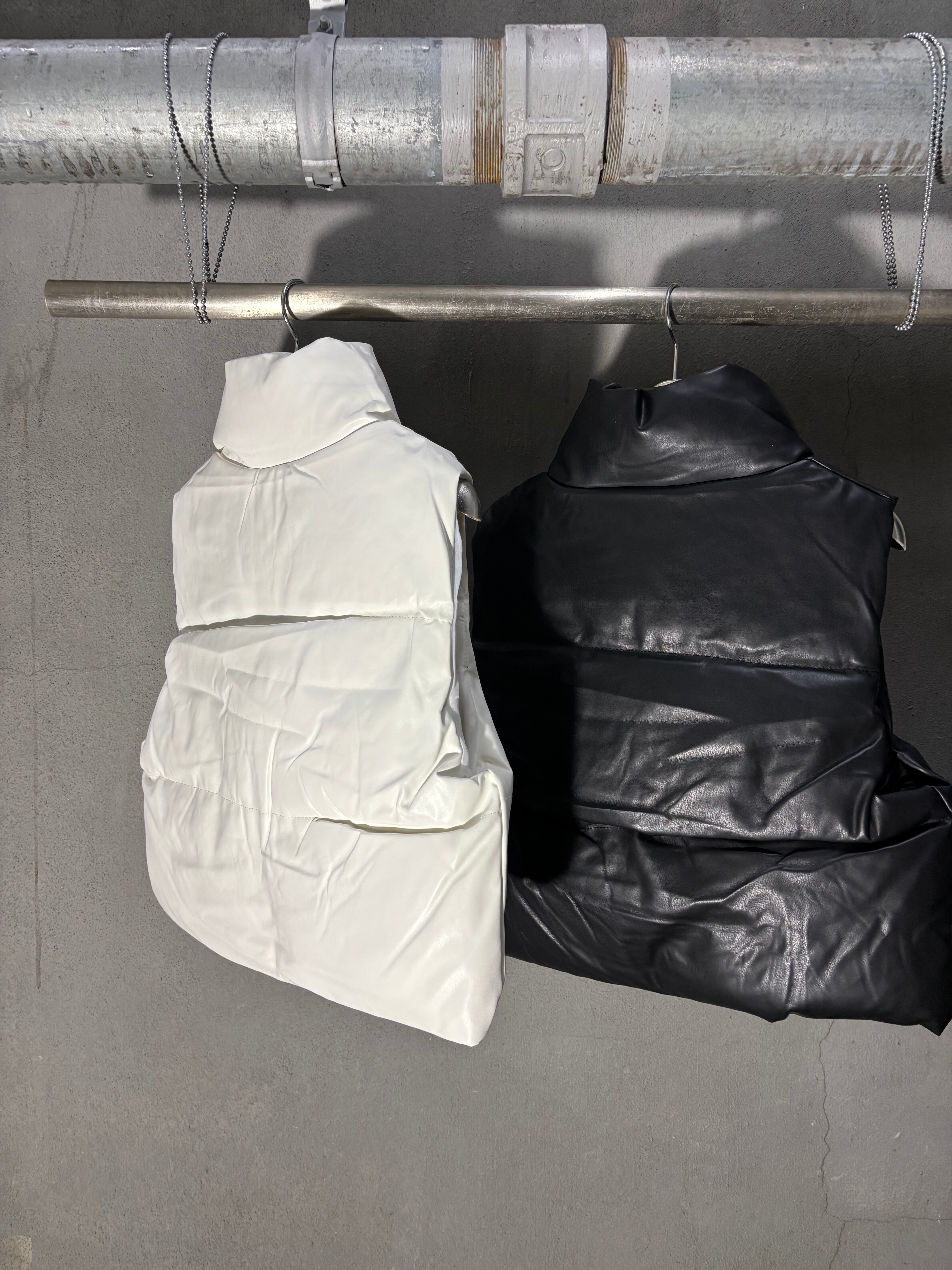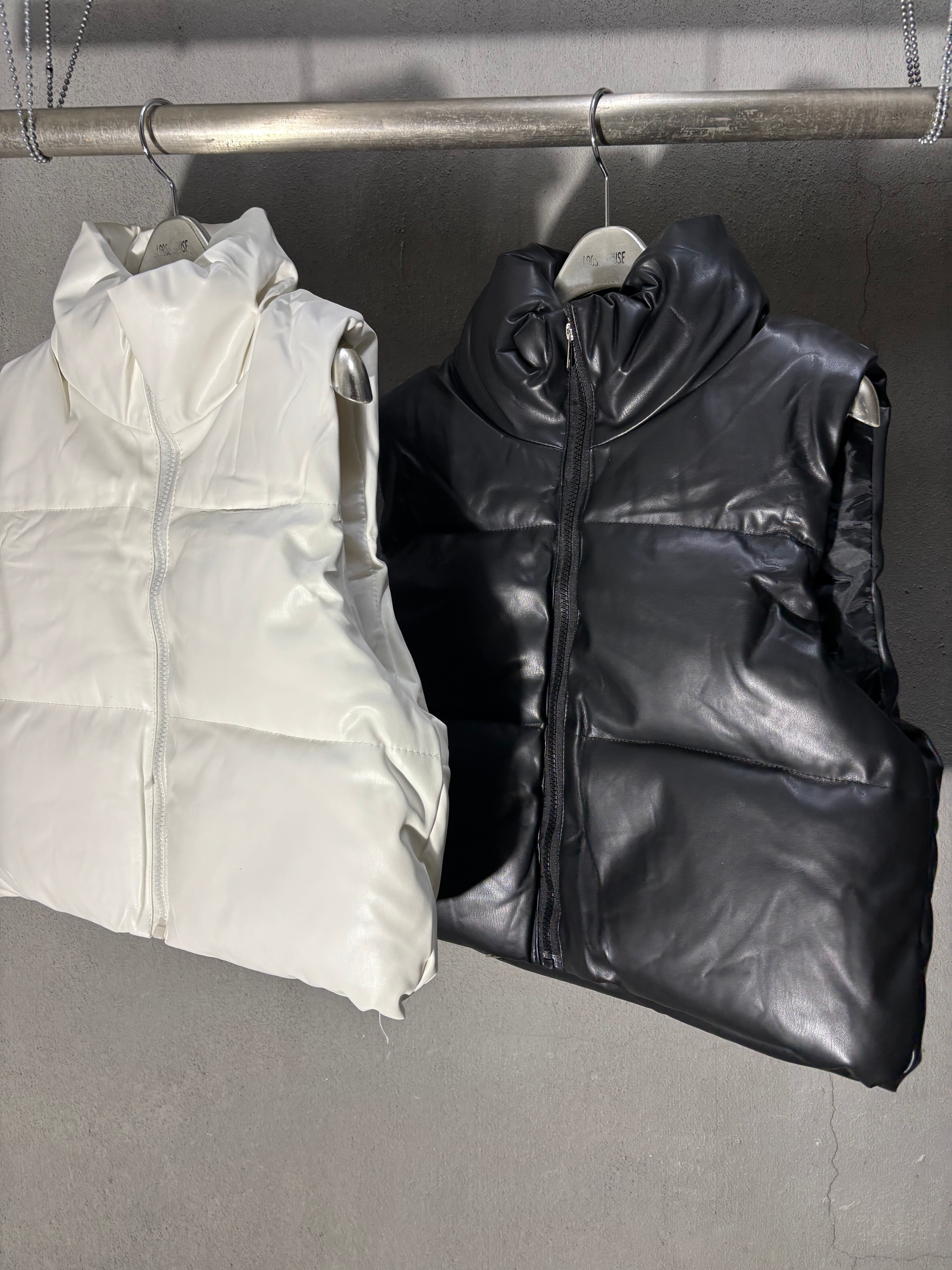 eco leather padded vest ベスト 中綿 エコレザー 合皮 重ね着