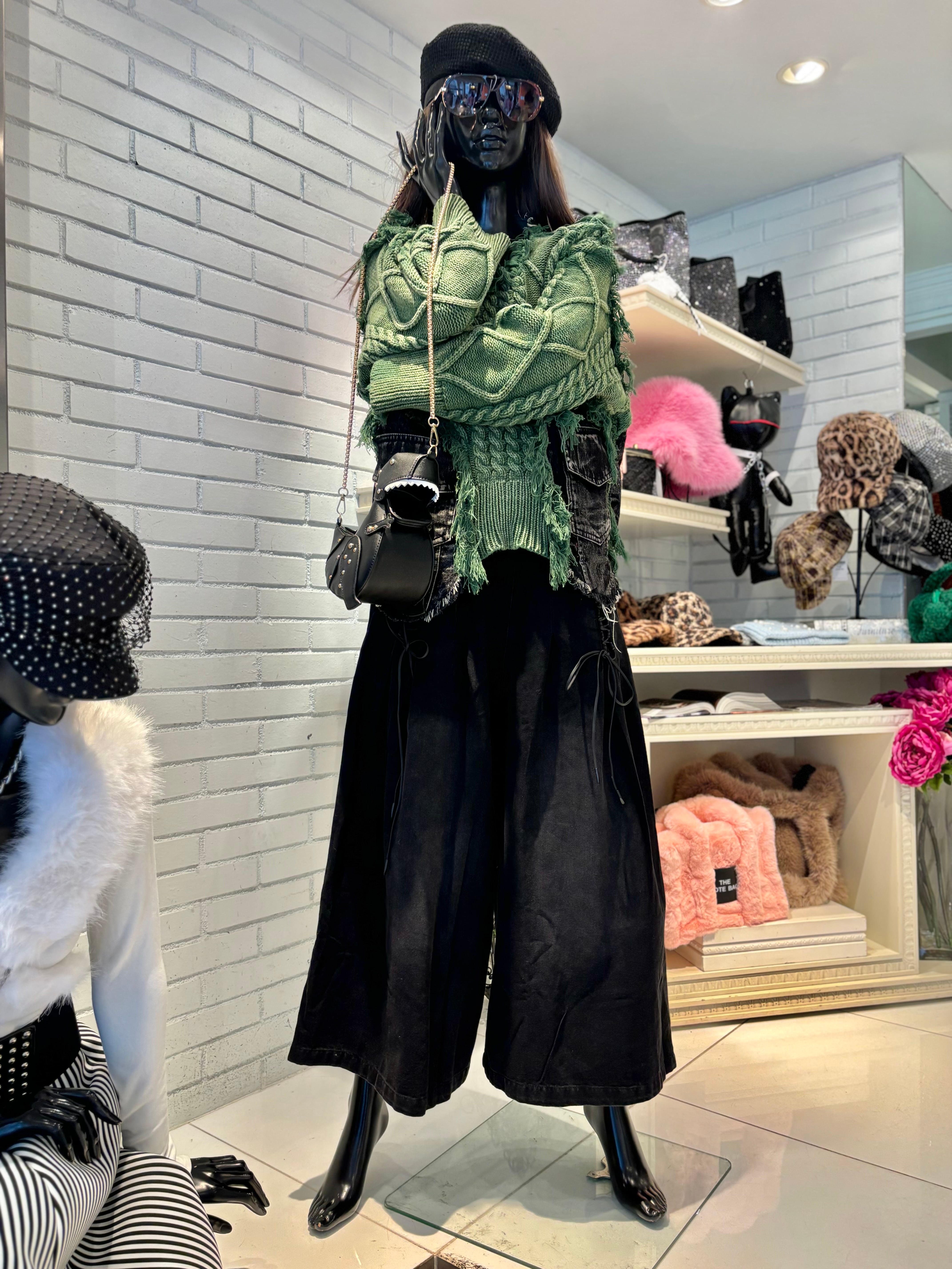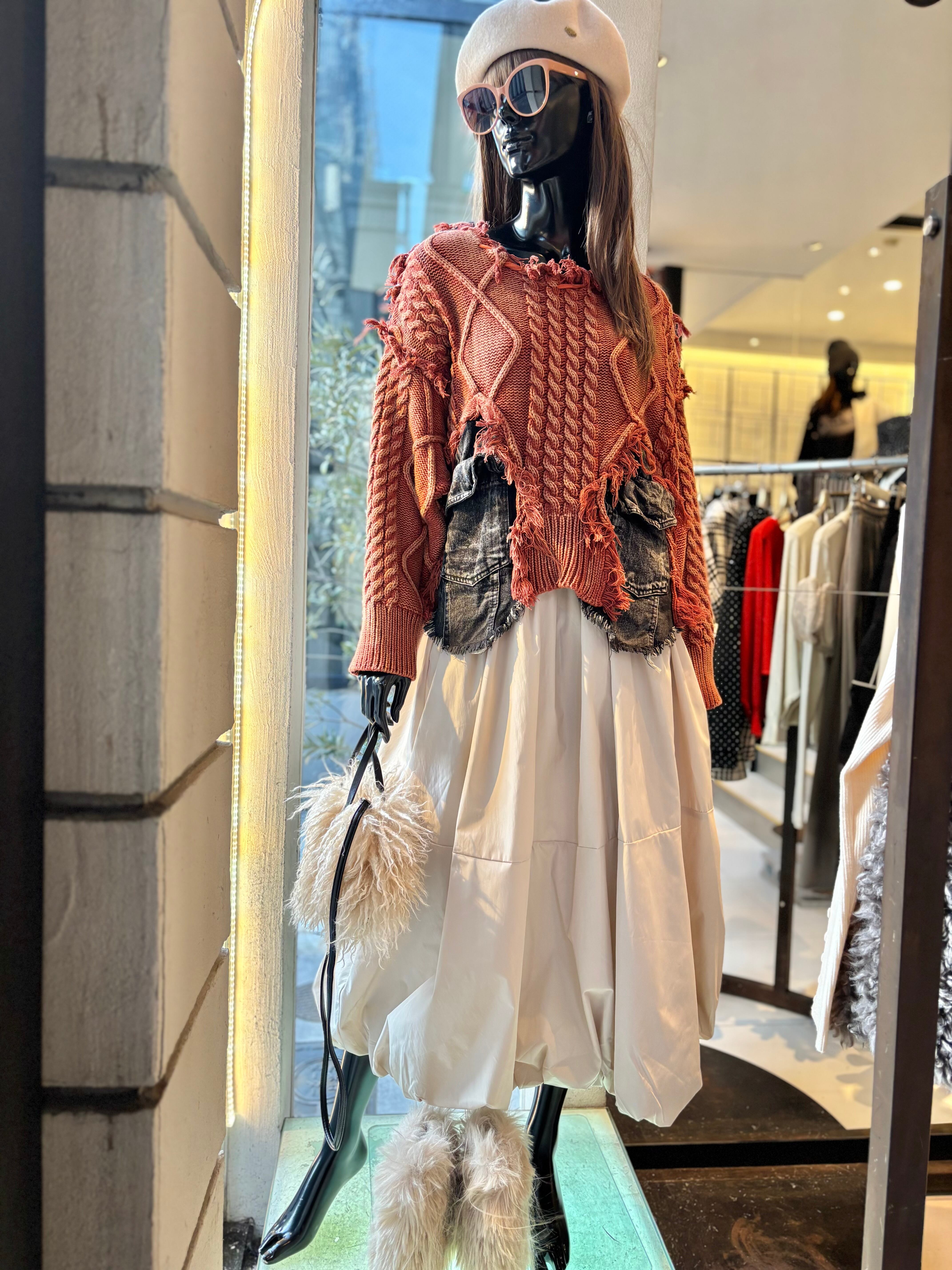 デニムとケーブルニットの絶妙な切替デザインが魅力的なトップスです♡