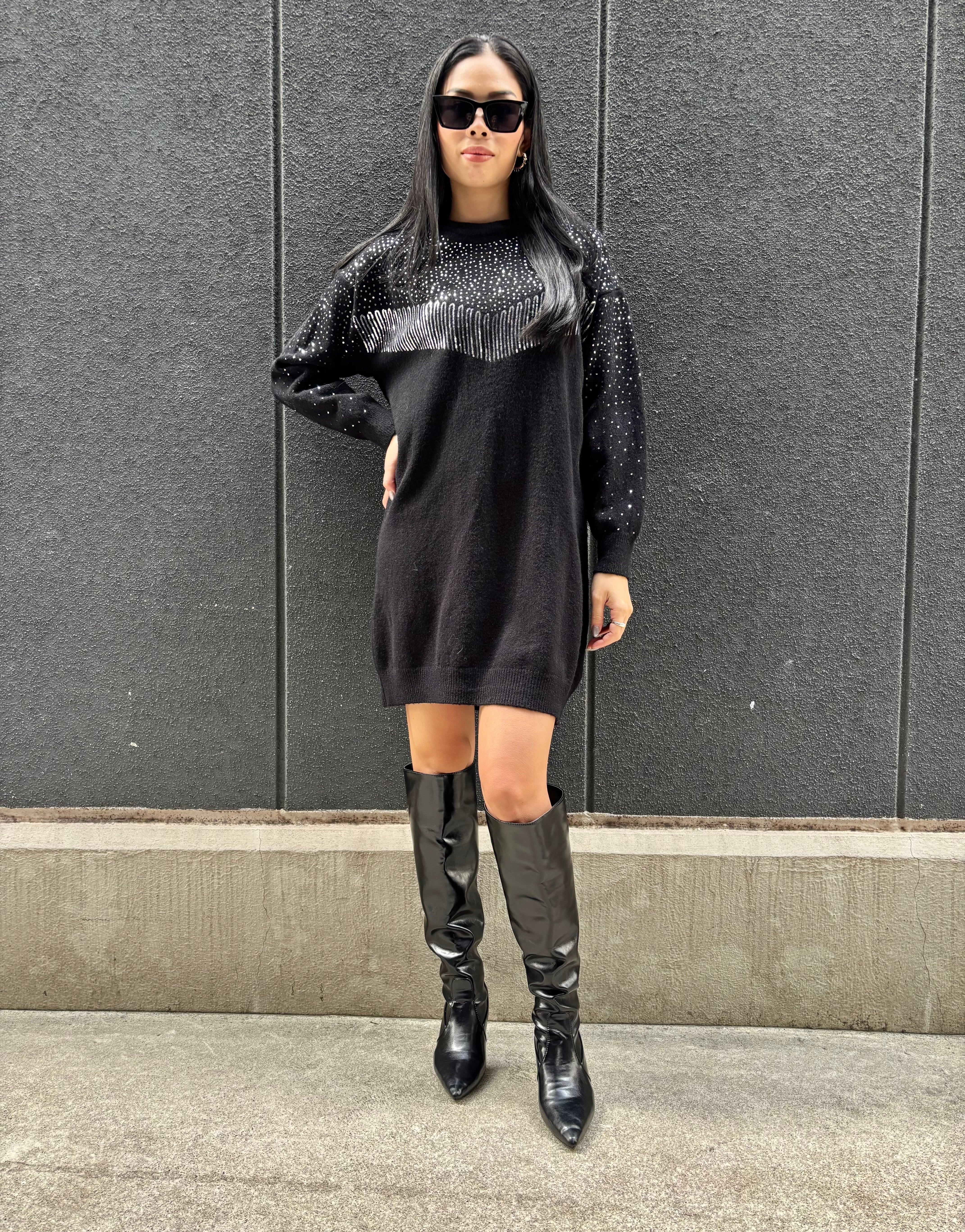 SILVERのスパンコール刺繍がきらめき、魅力的なスタイルを演出するアイテムです!