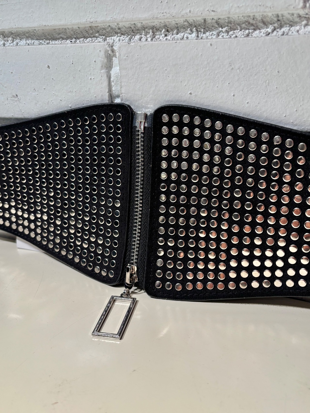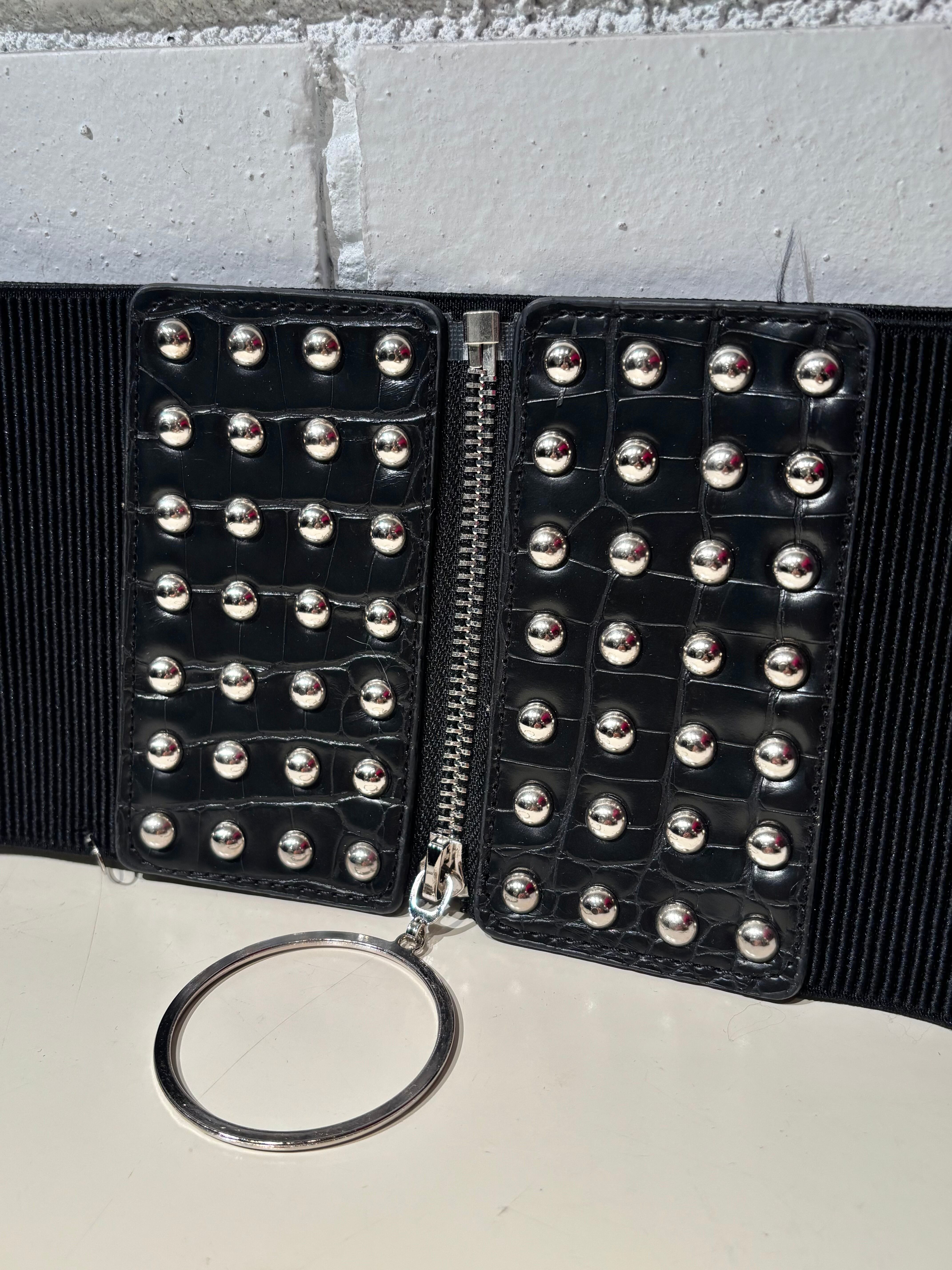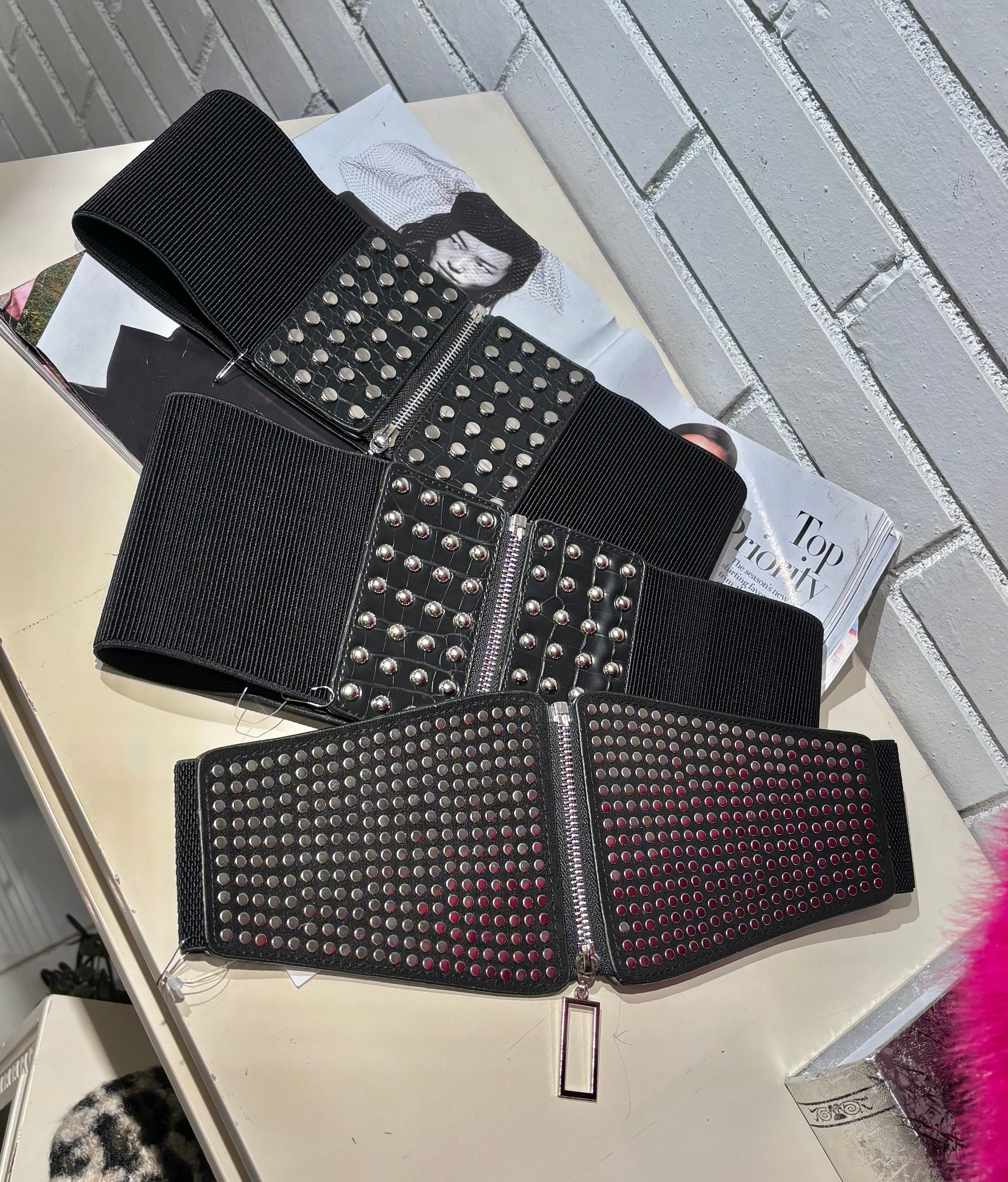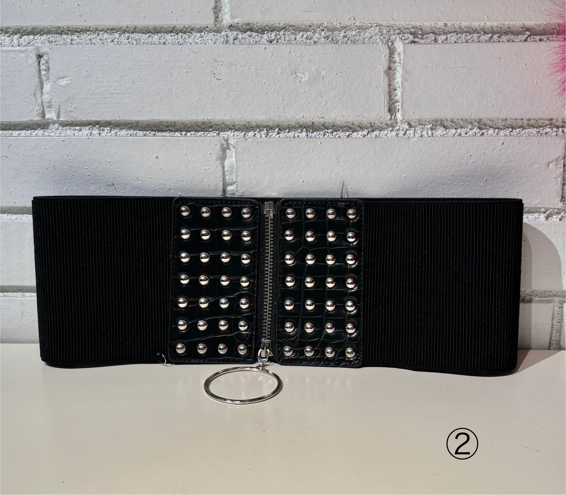 studs design waist belt ベルト ゴムベルト ウエストマーク シルバー スタッズ ジッパー