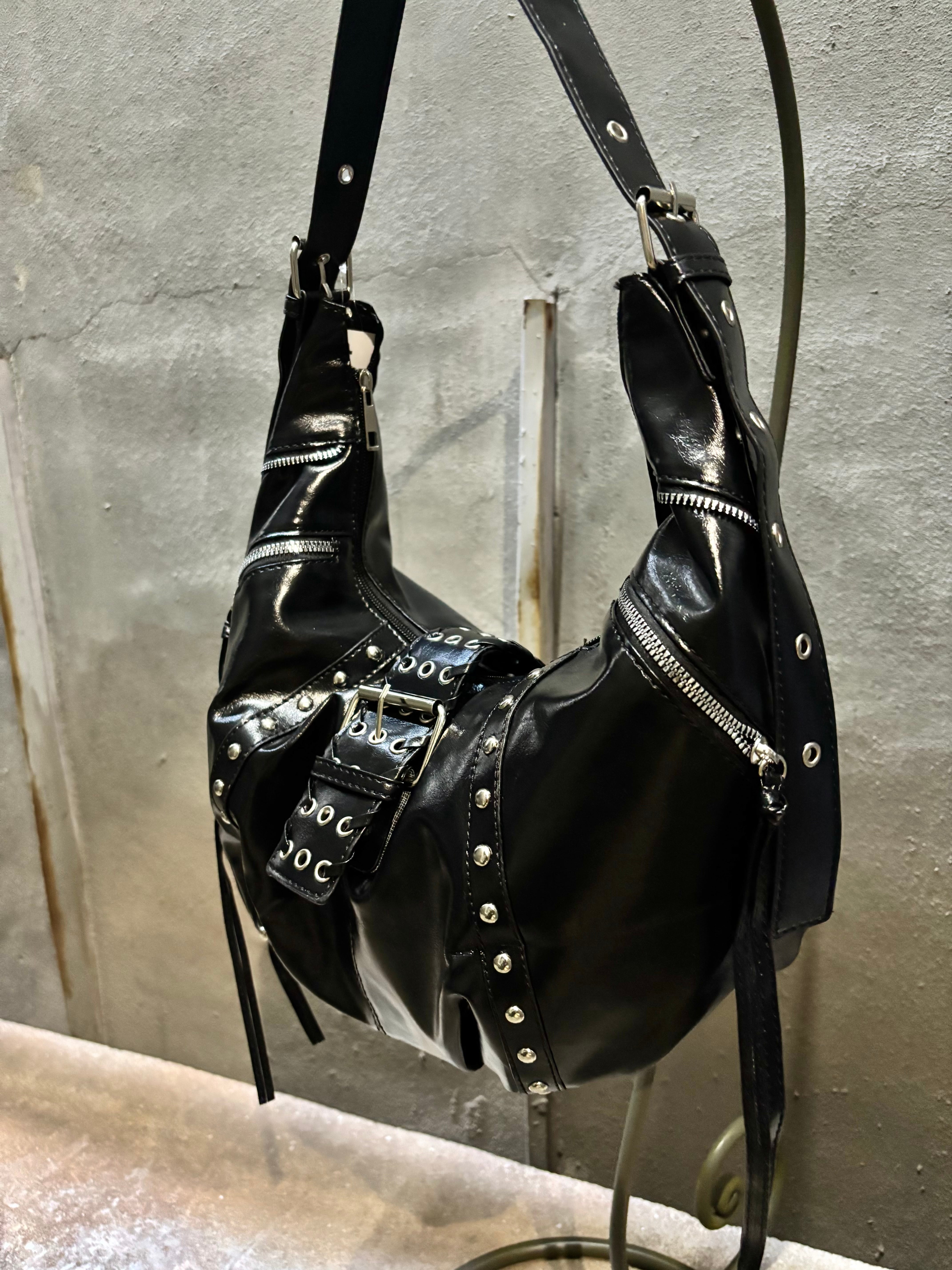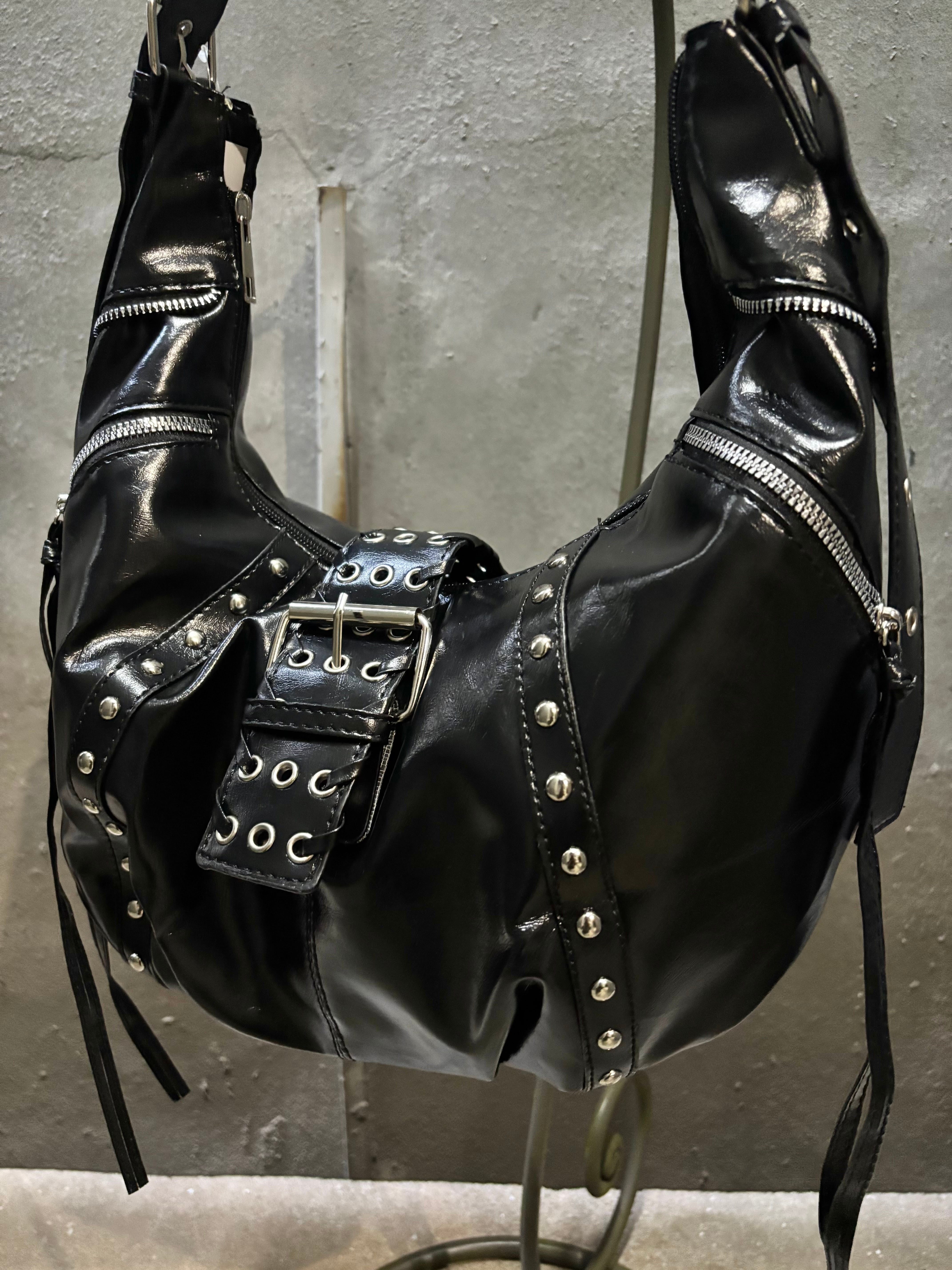 silver studs design bag バッグ シルバー スタッズ フラップバック ハーバーバッグ 三日月型