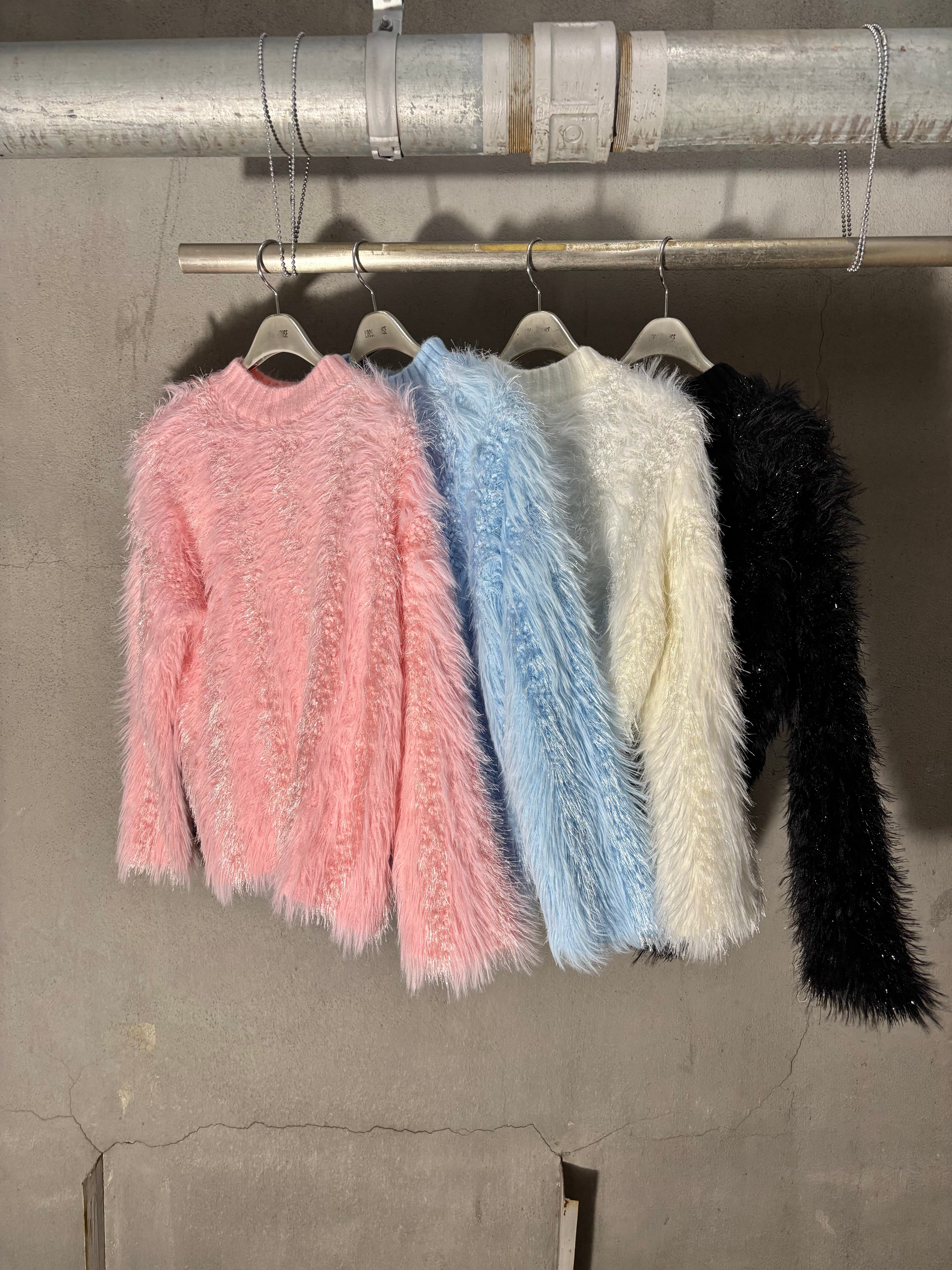 long shaggy × film stripe sweater tops トップス セーター シャギー フィルム ふわふわ