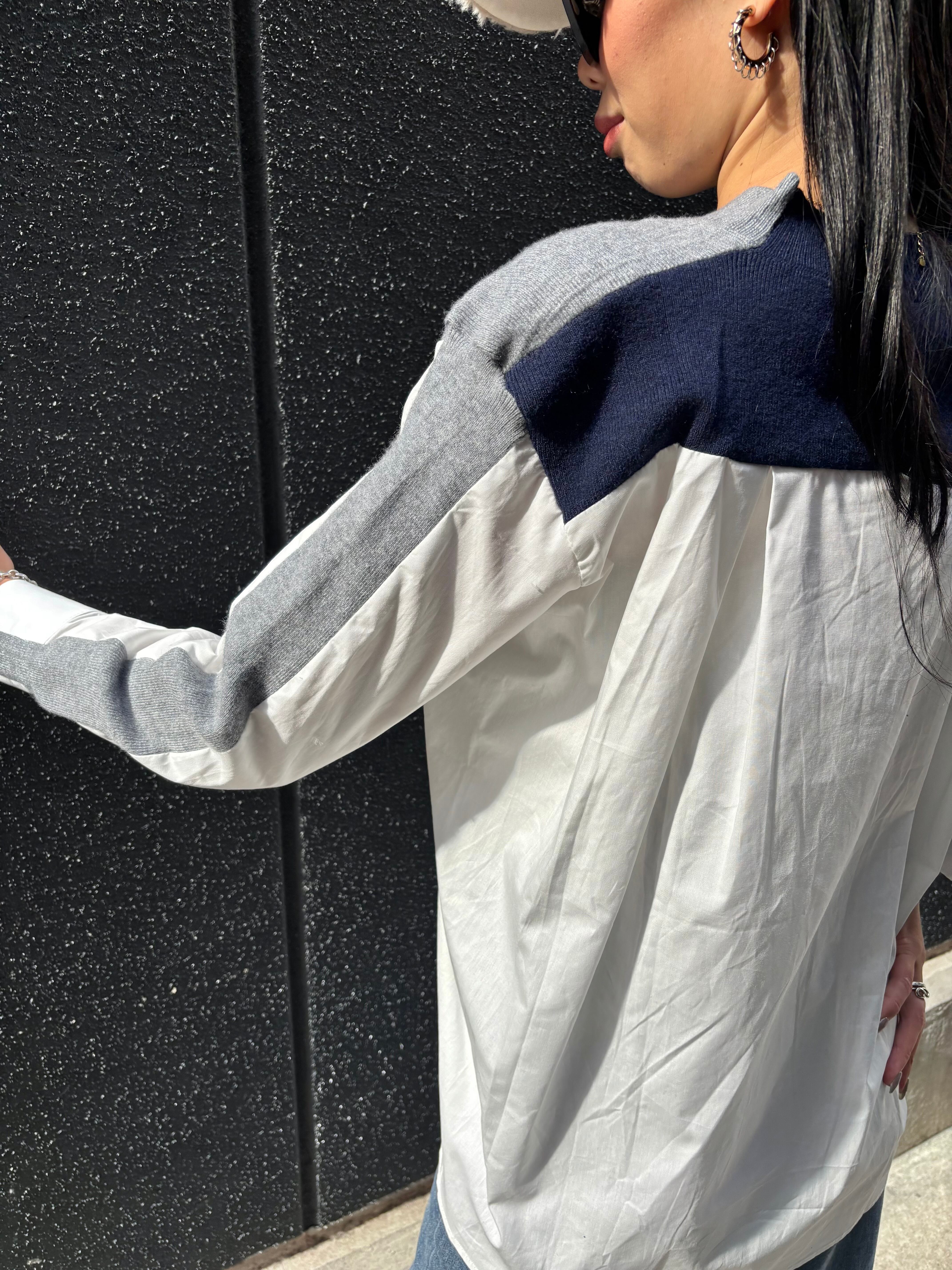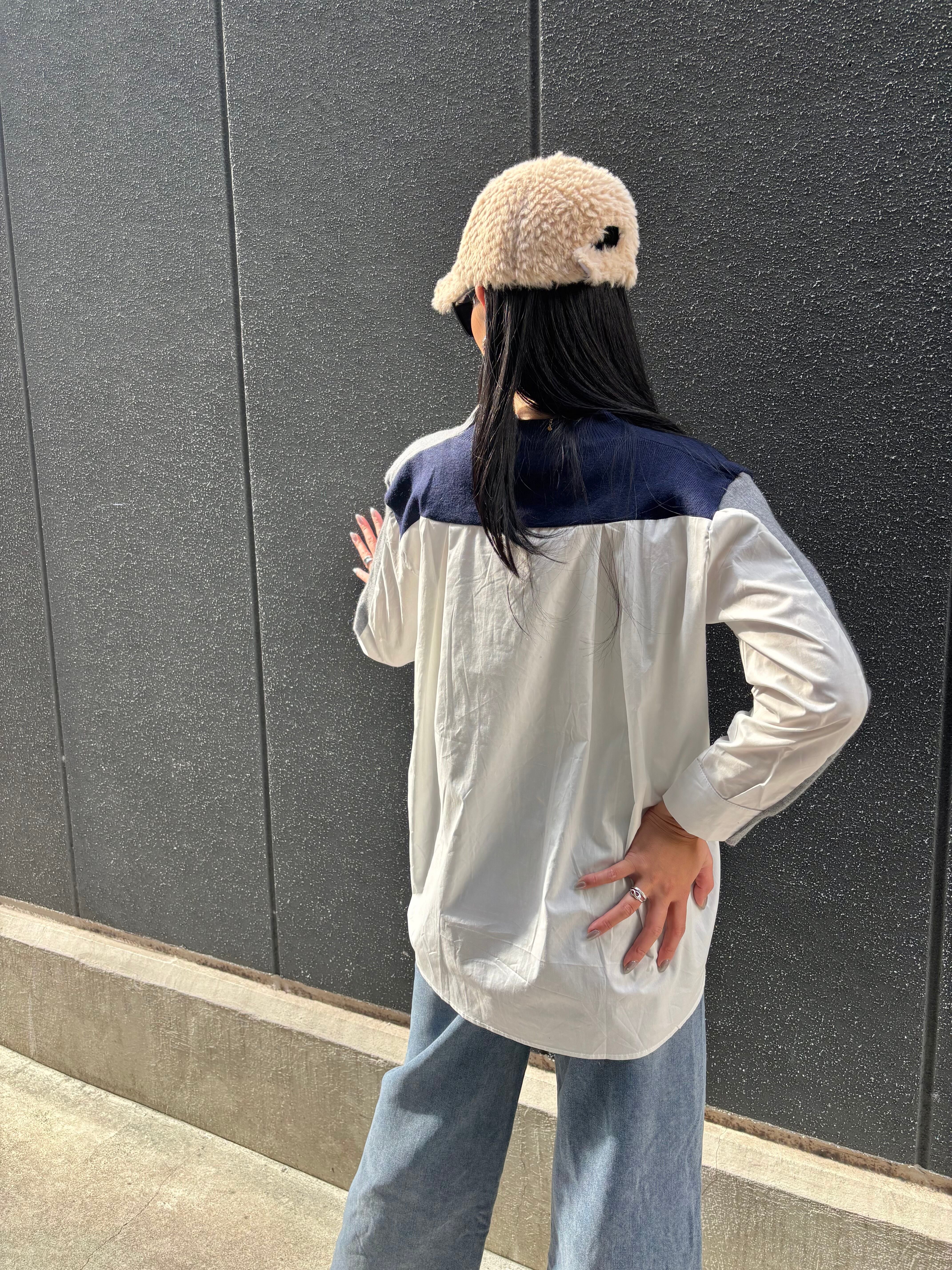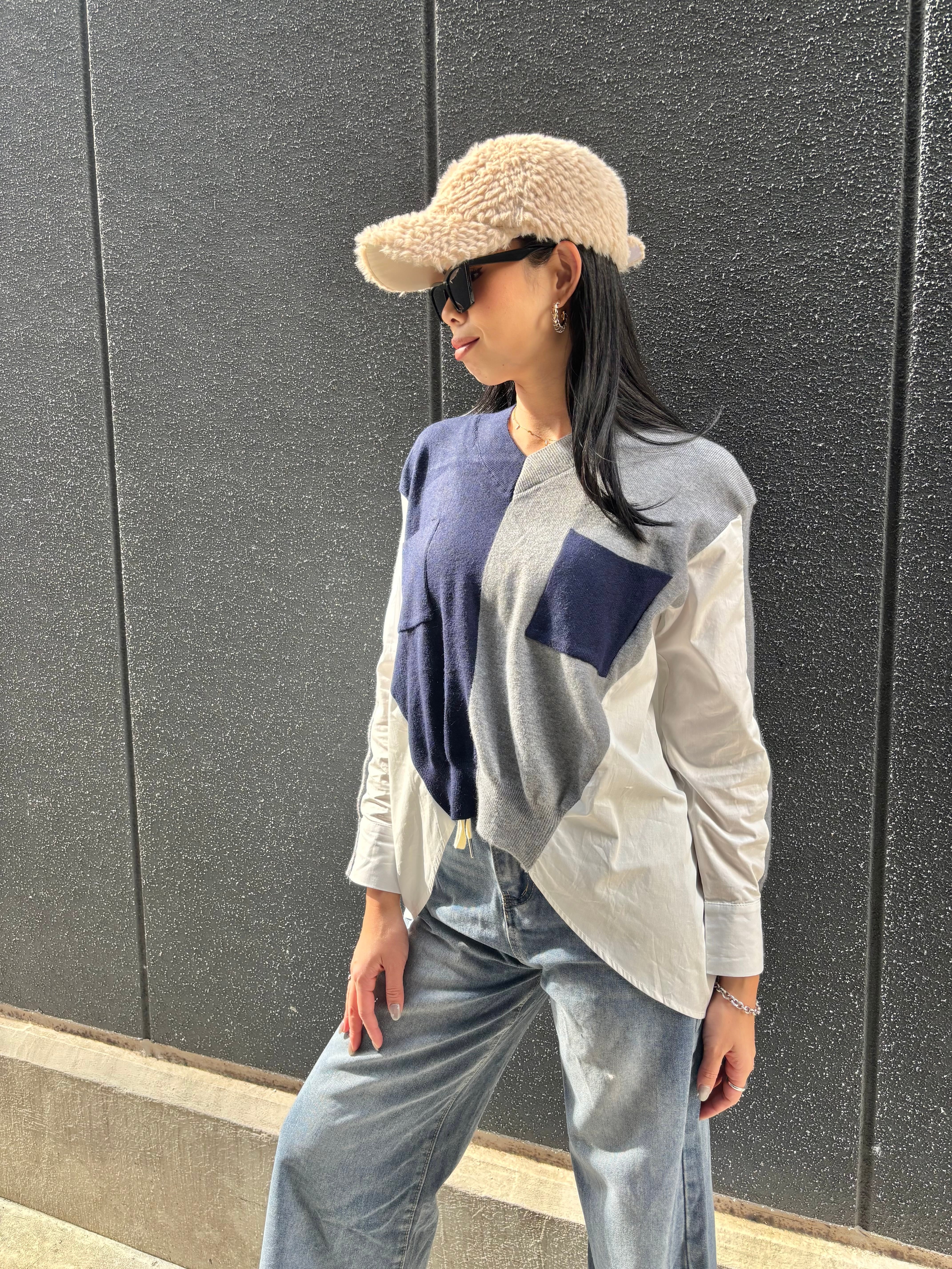 シャツとニットのドッキングデザインがオシャレなコチラ♡