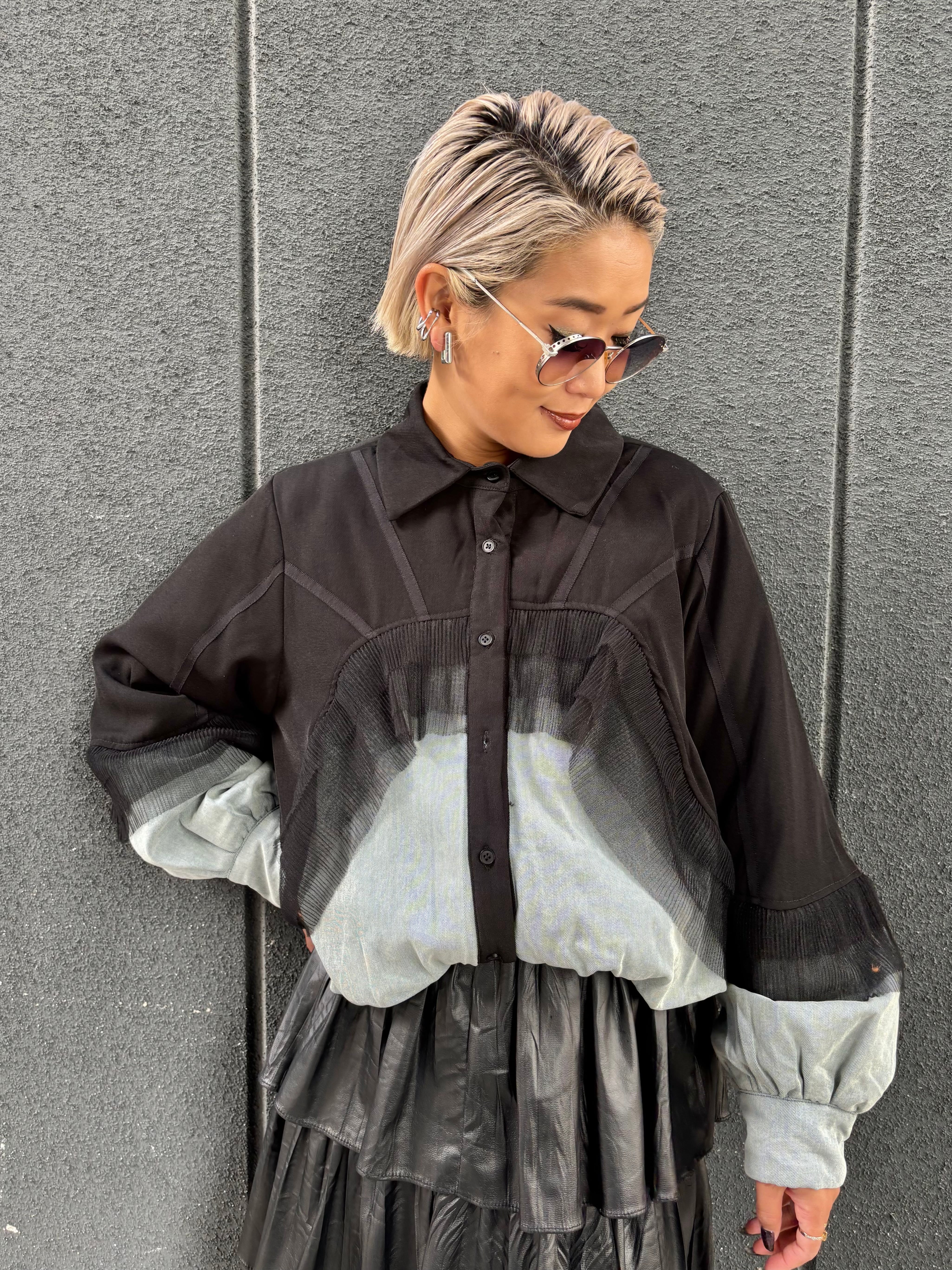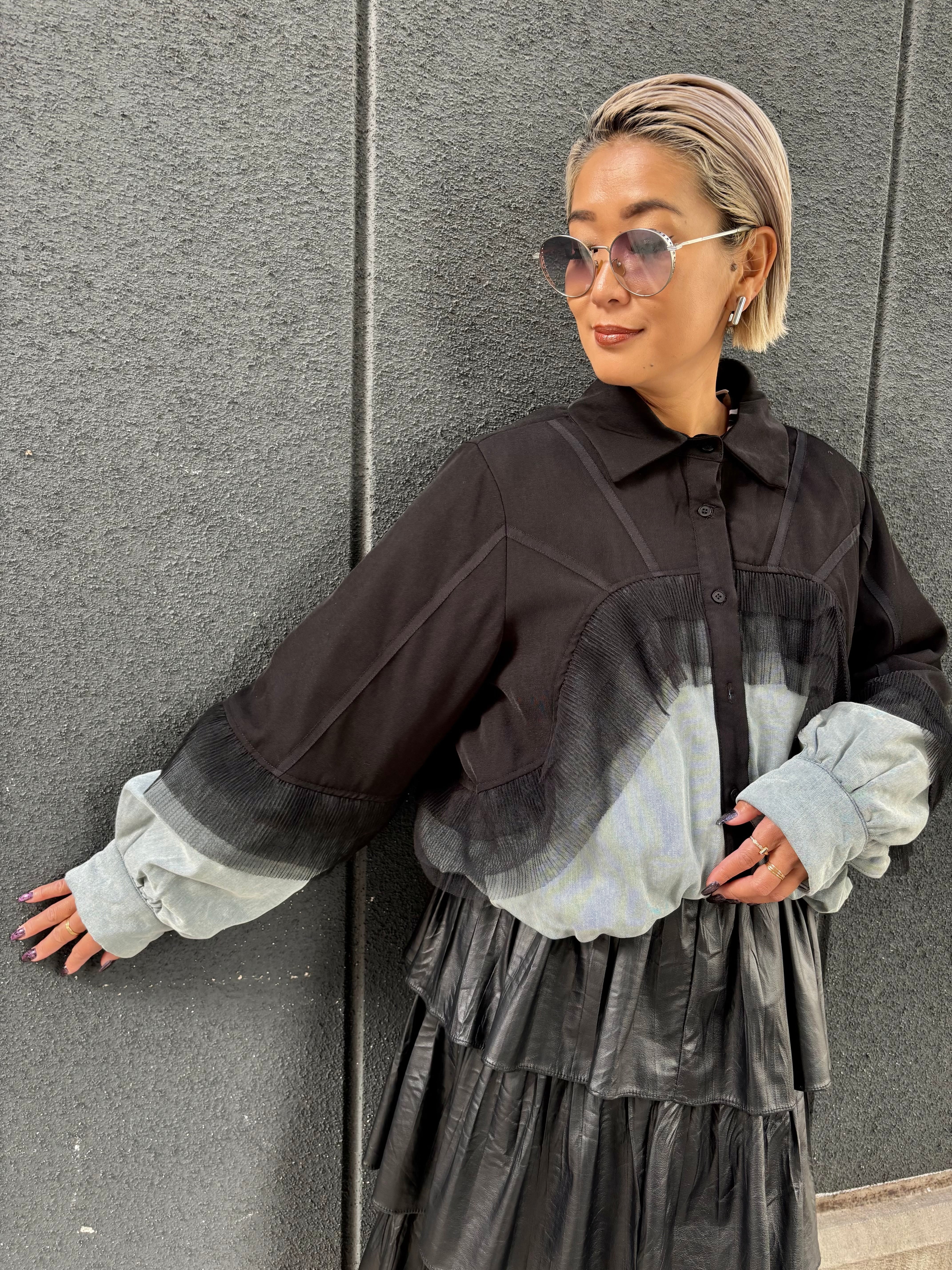 different fabrics mix design jacket ジャケット 異素材切替 デニム チュール 中綿 襟付き アウター