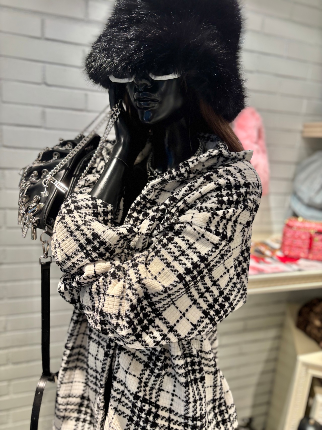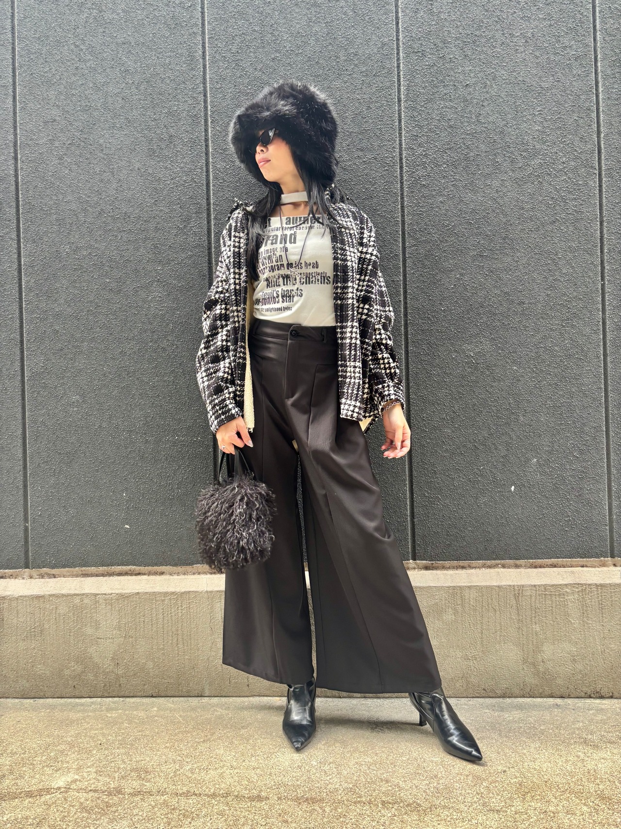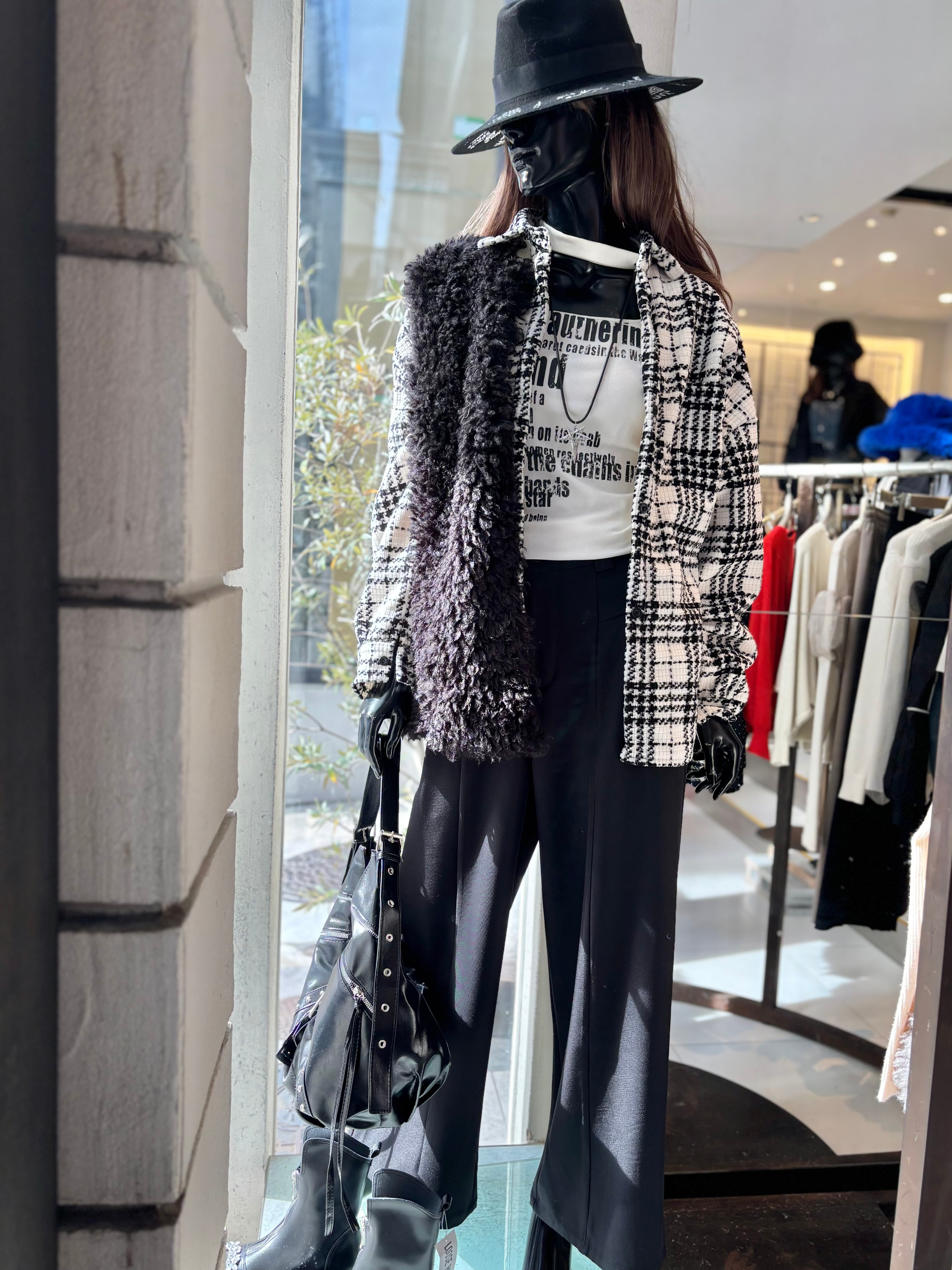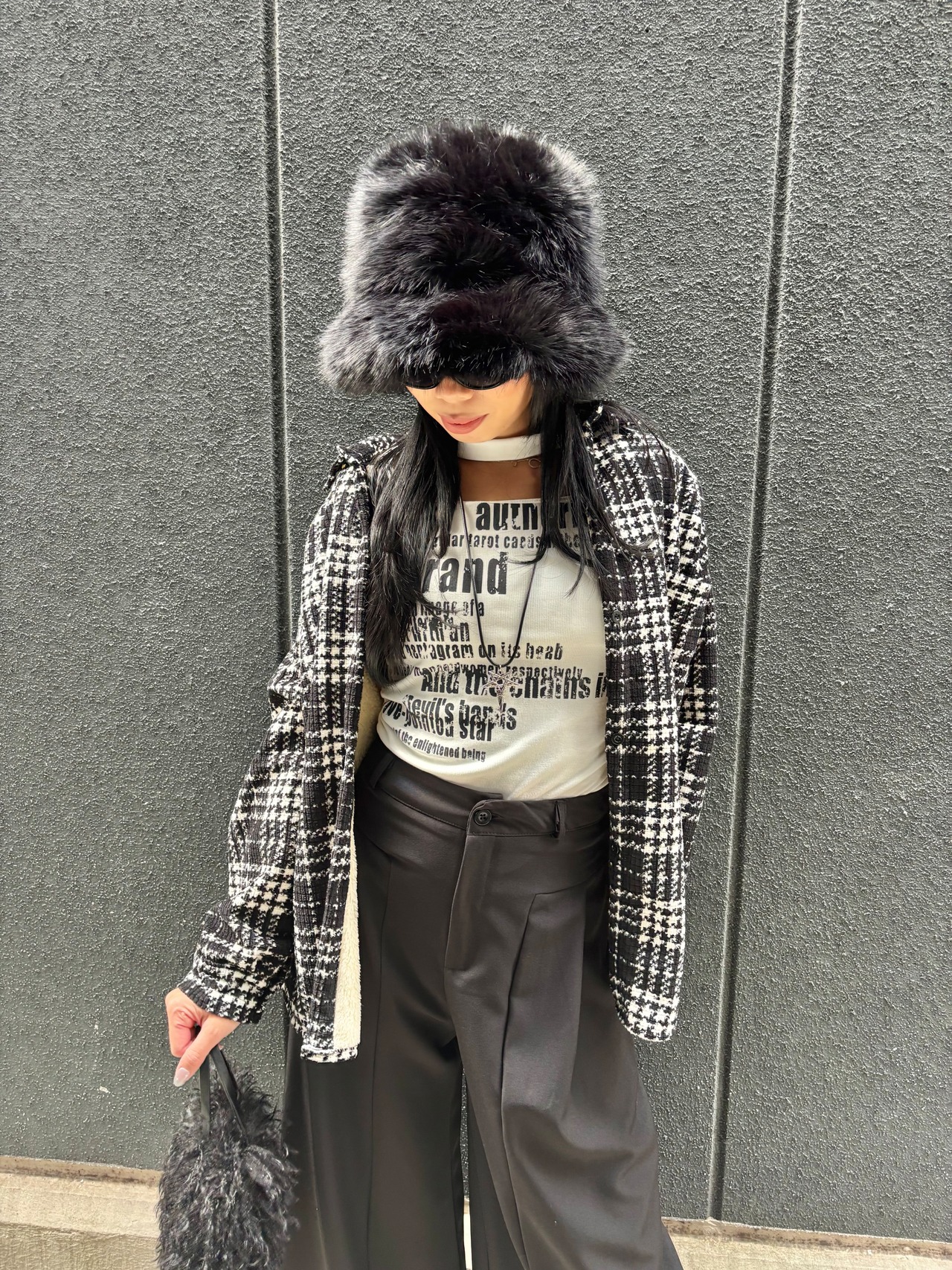 bi-color check corduroy shirt jacket シャツ ジャケット 裏ボア チェック 白黒 バイカラー