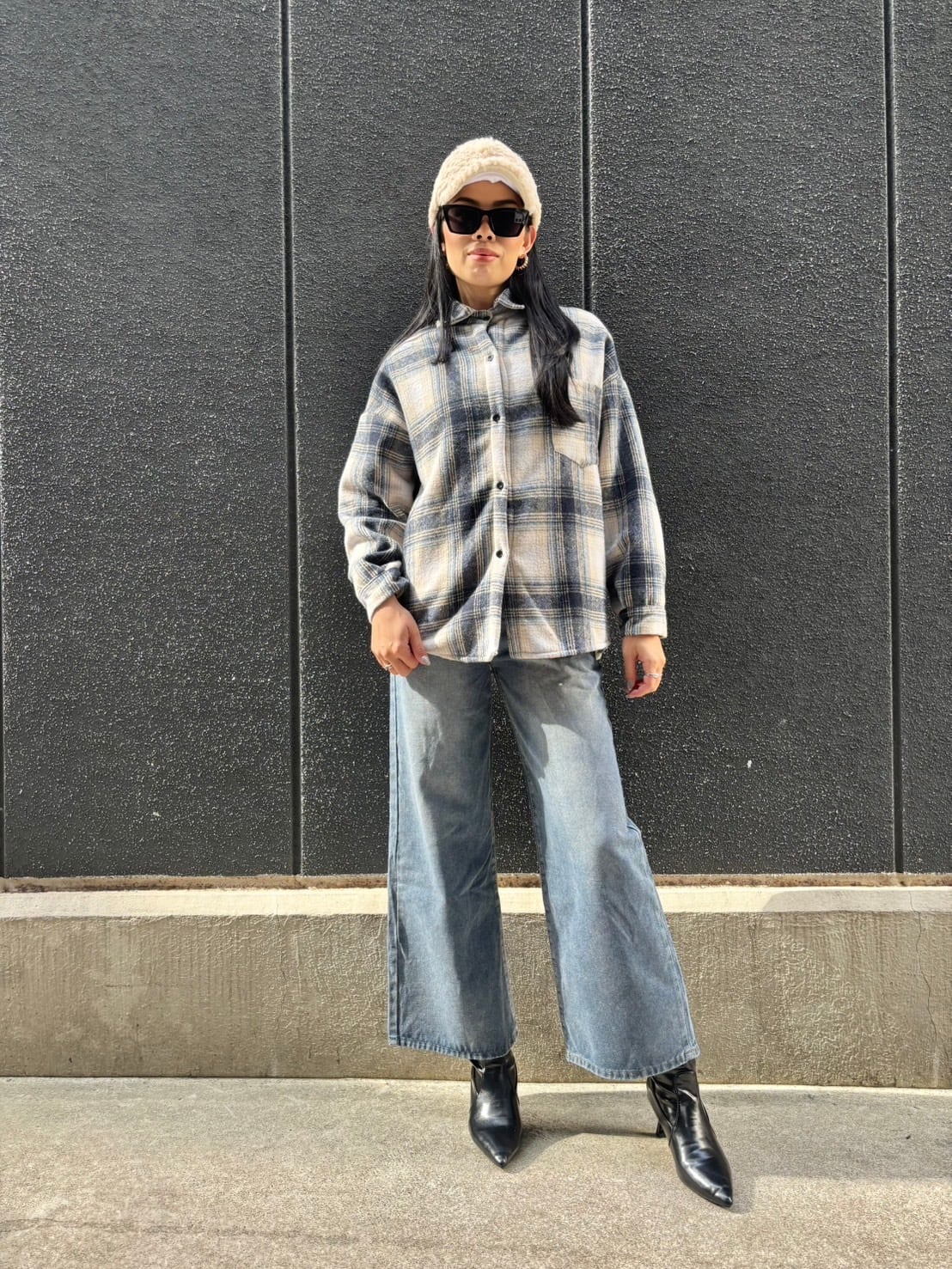 カジュアルなチェック柄のシャツジャケットです♪